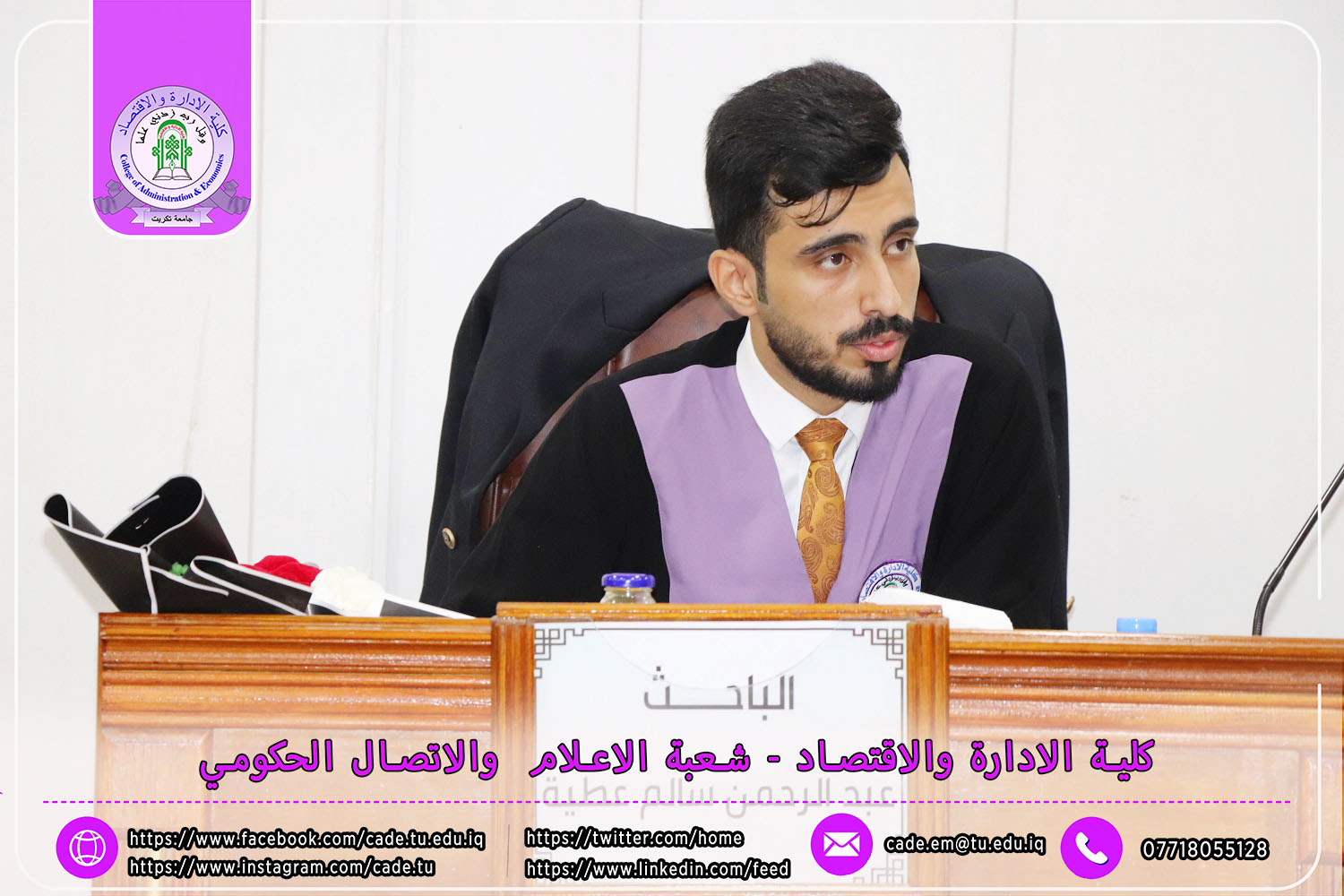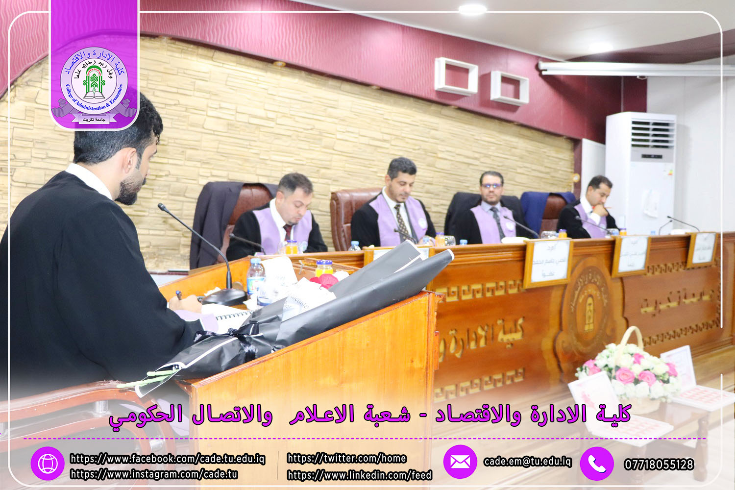 نوقشت في كلية الإدارة والاقتصاد رسالة الماجستير في العلوم المالية والمصرفية للطالــب عبدالرحمن سالم عطية الموسومة ( أثير ادارة المخاطر الائتمانية في تحقيق الاستقرار المالي / دراسة تطبيقية لعدد من المصارف العراقية الخاصة التجارية\ ) بأشراف ا.م.د. إبراهيم علي كردي.