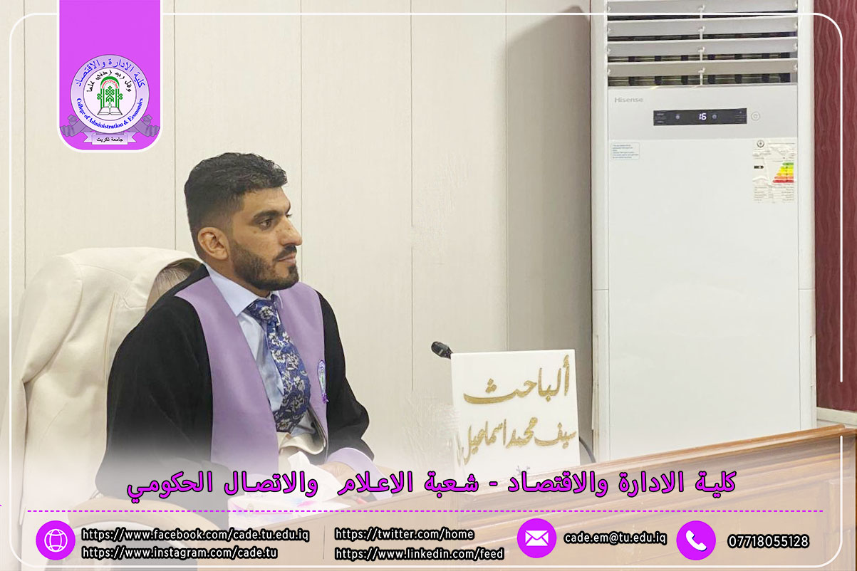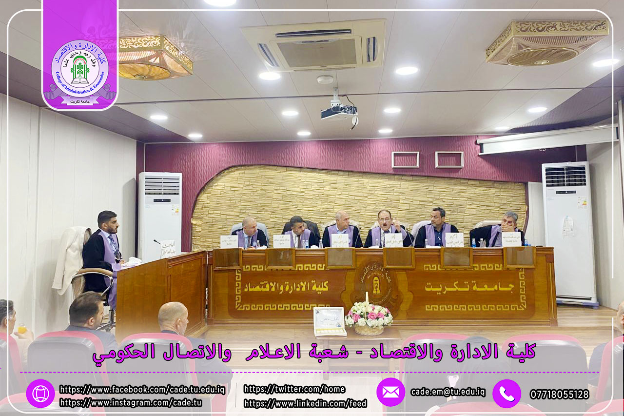 نوقشت في كلية الإدارة والاقتصاد / قسم ادارة الاعمال / أطروحة دكتوراه في العلوم الإدارية للطالــب سيف محمد إسماعيل الموسومة ((دور الســـلوك الاستراتيجي في تعزيز صورة العلامة العاطفية الـــدور الوسيط لتسويق المحتوى / دراسة تحليلية في مجموعة من فنادق الدرجة الاولى العراقية )) بأشراف ا.د. ناجي عبدالستار محمود.