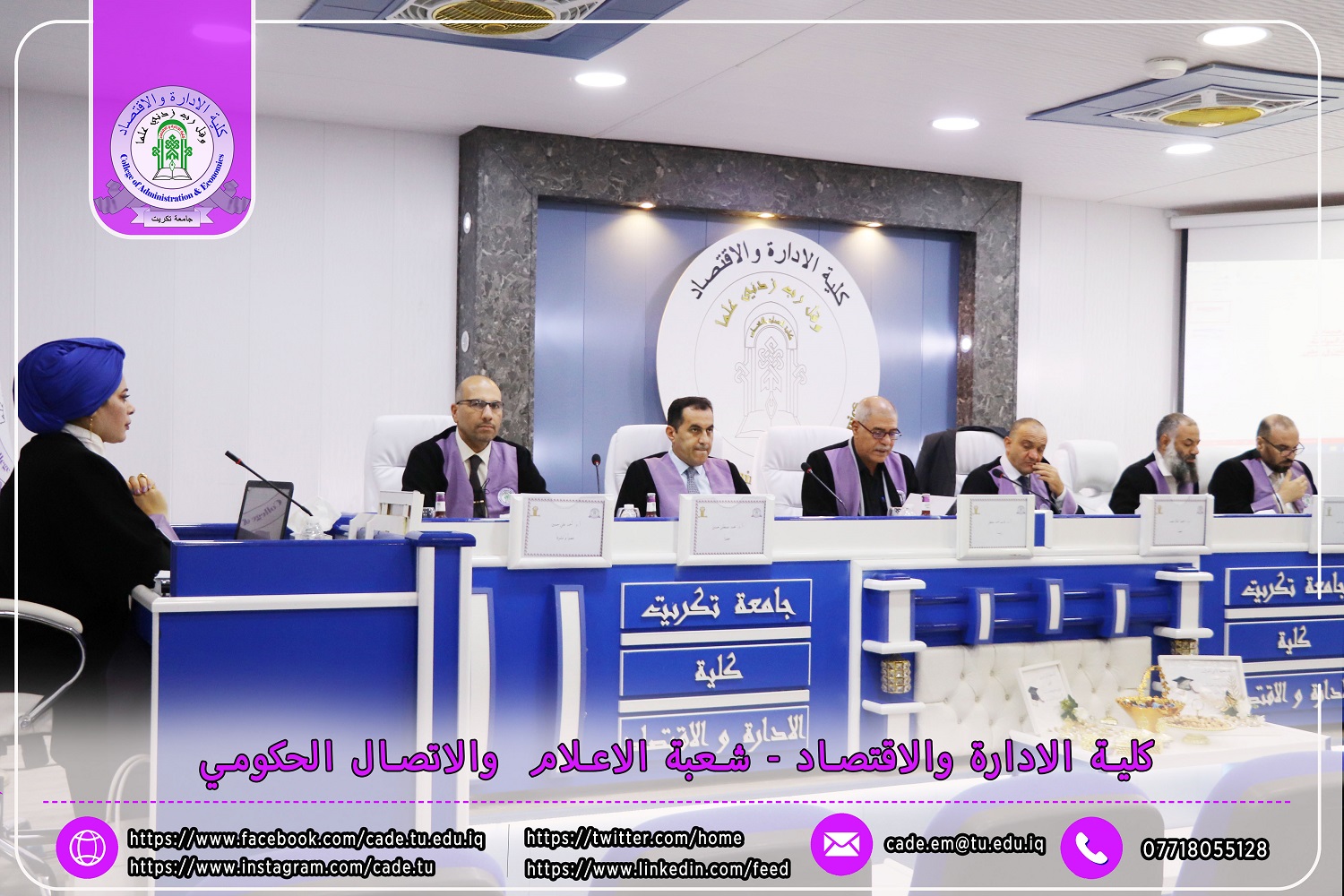 نوقشت في كلية الإدارة والاقتصاد / قسم ادارة الاعمال / أطروحة دكتوراه في العلوم الإدارية للطالــبة شيرين إسماعيل خليل الموسومة ((المهارات الرقمية للقائد الرَقمي وأثرها في تقليص هجمات الهندسة الاجتماعية الرقمية/اختبار الدَور الوَسيط لأبعاد المواطنة الرَقمية- دِراسة تَحليلية لآراء عًينة من الاْفراد العاملين في بعض شركات الاتصالات العراقية)) بأشراف ا.د. احمد علي حسين .
