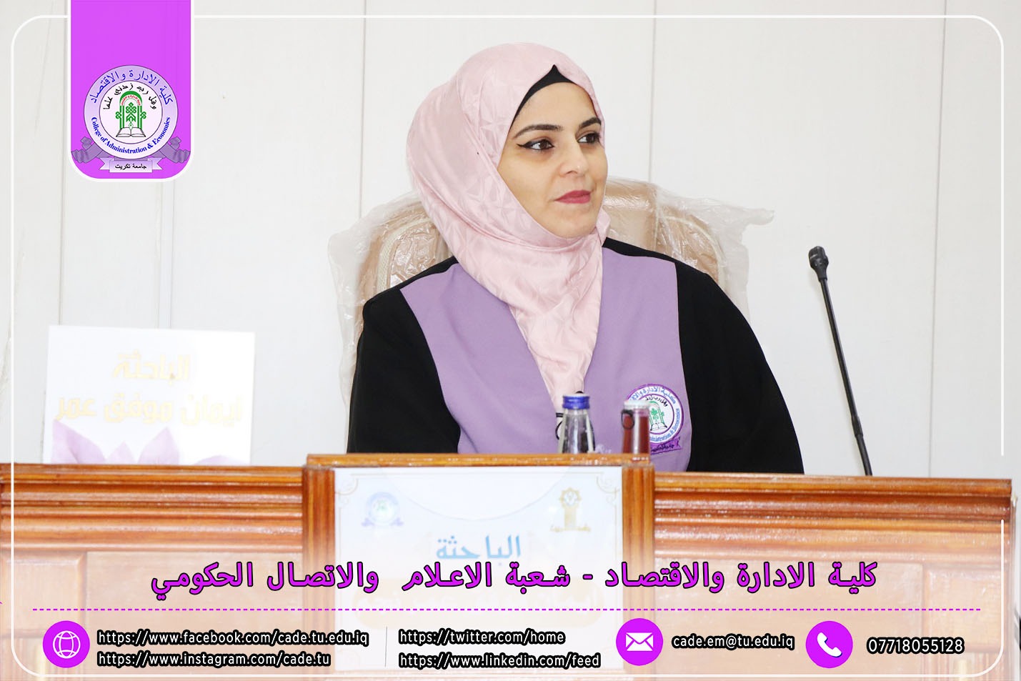 نوقشت في كلية الإدارة والاقتصاد / قسم إدارة الاعمال / أطروحة الدكتوراه فلسفة في العلــوم الادارية للطالــبة ايمان موفق عمر الموسومة (أثر التسويق الخفي في تعزيز العوامل النفسية المؤثرة في السلوك الشرائي للمستهلك: الدور المعدل لليقظة التسويقية/ دراسة تحليلية لآراء عينة من العاملين وزبائن المتاجر الكبرى في مدينة بغداد) بأشراف ا.د. ناجي عبدالستار محمود.