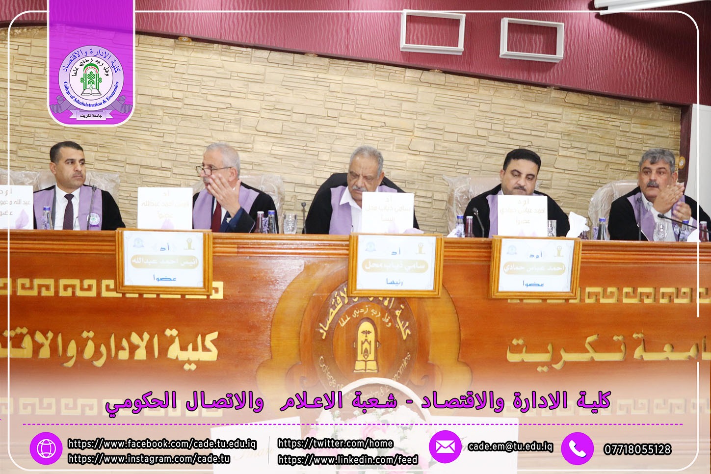 هذا وقد حضر المناقشة الاستاذ المساعد الدكتور اشرف هاشم فارس معاون العميد للشؤون العلمية وعدد من طلبة الدراسات العليا.