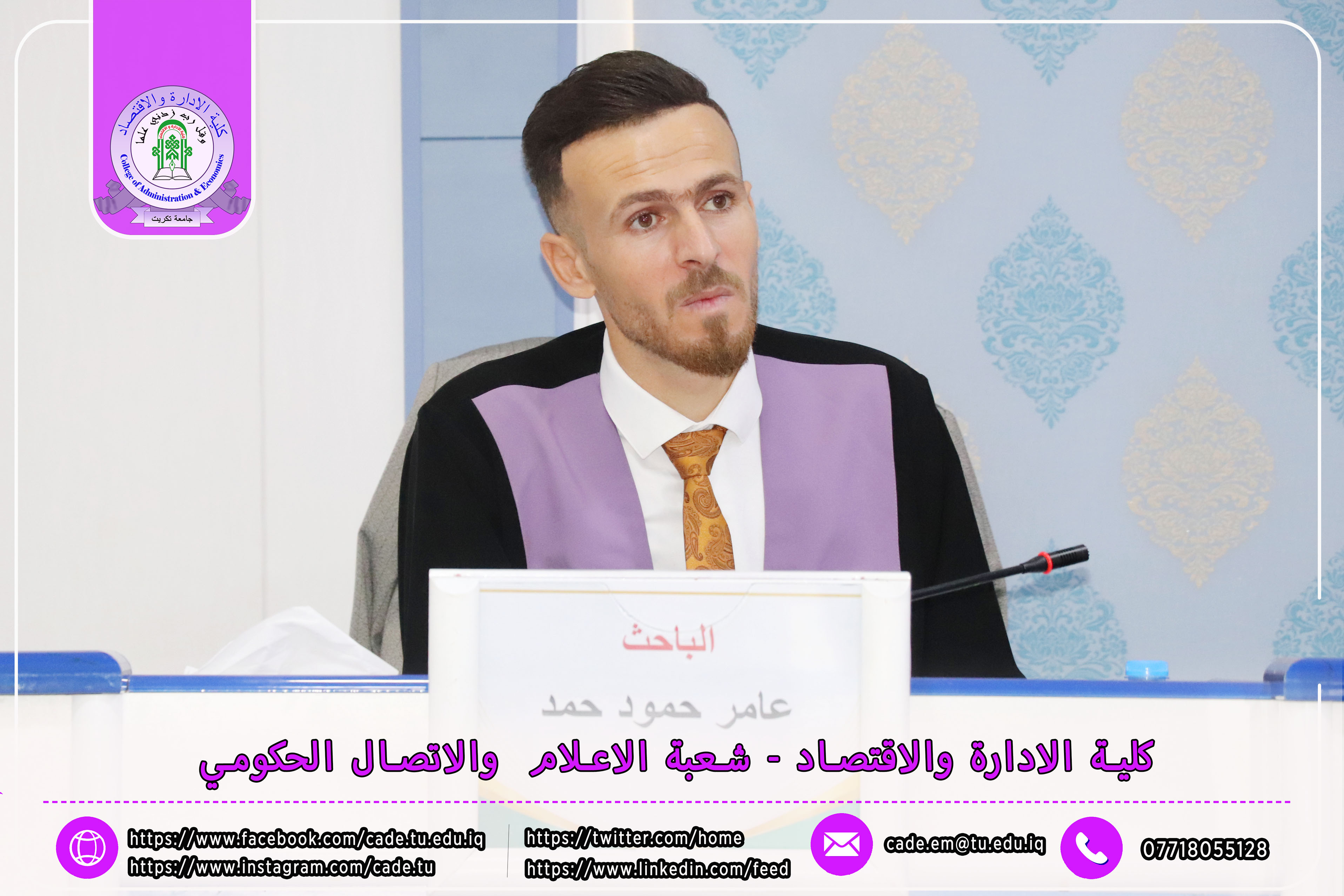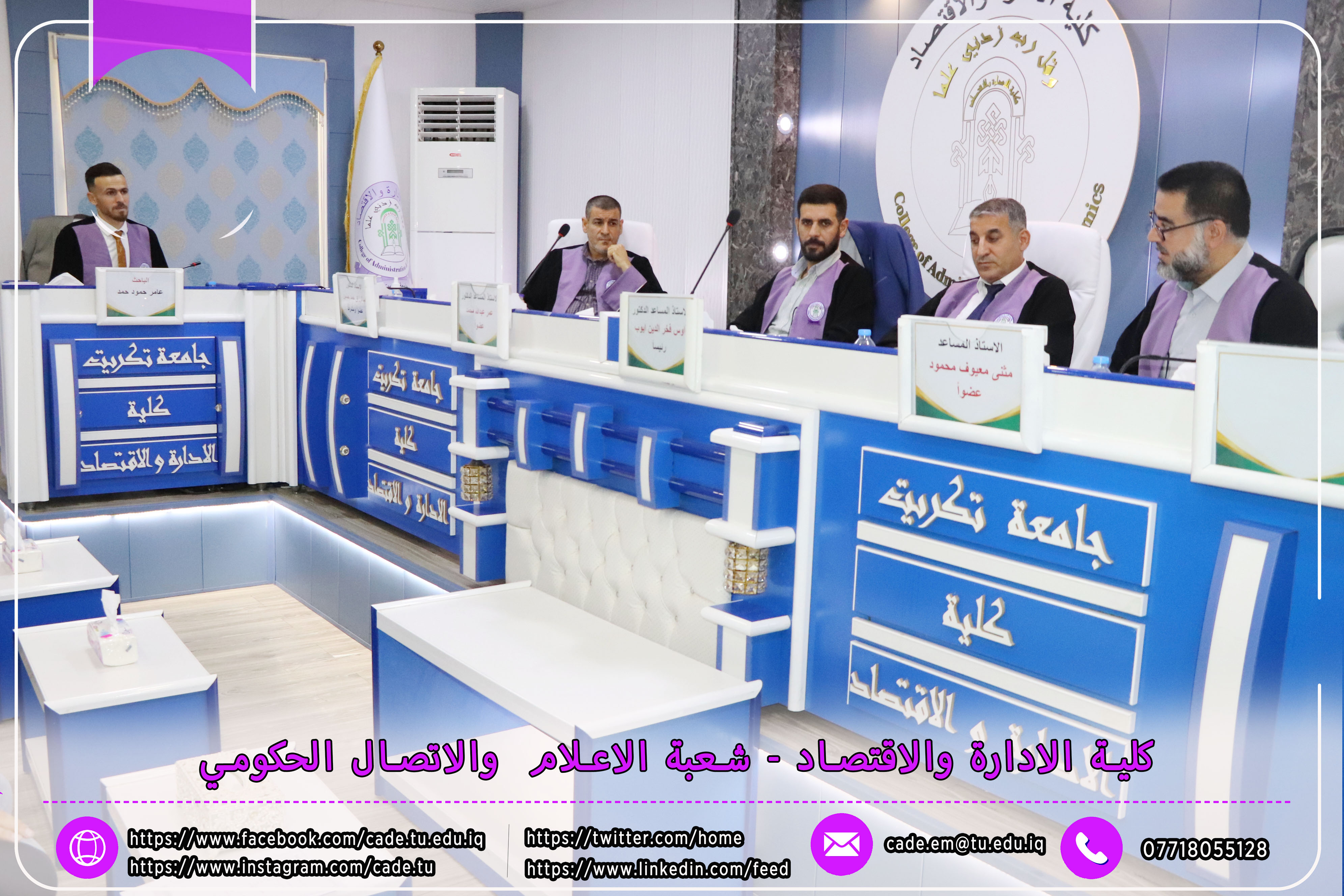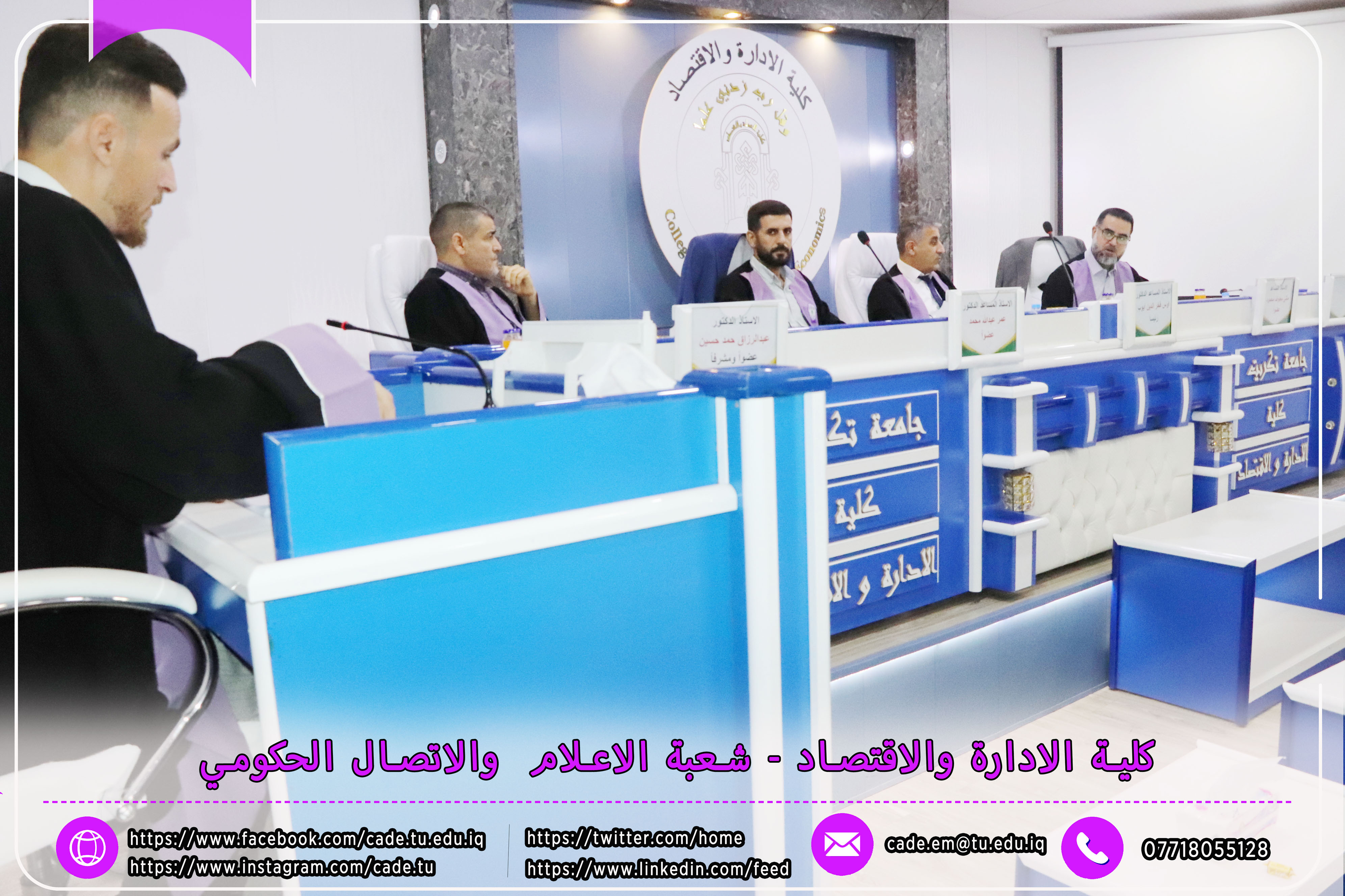 نوقشت في كلية الإدارة والاقتصاد رسالة الماجستير في العلوم المالية والمصرفية للطالــب عامر حمود حمد الموسومة ((تأثير أدوات السياسة المالية في المخاطر المصرفية / دراسة في مصارف عراقية مختارة )) بأشراف ا.د. عبدالرزاق حمد حسين.