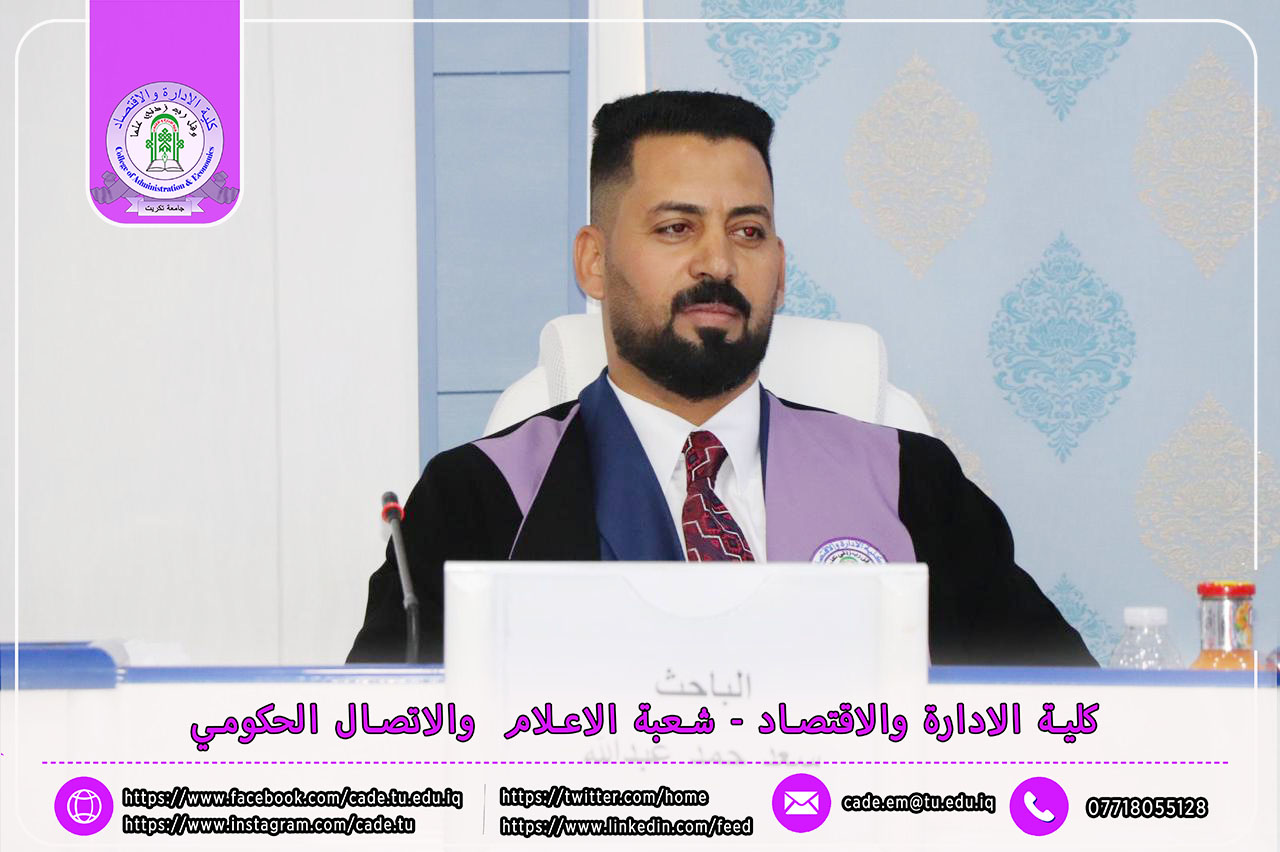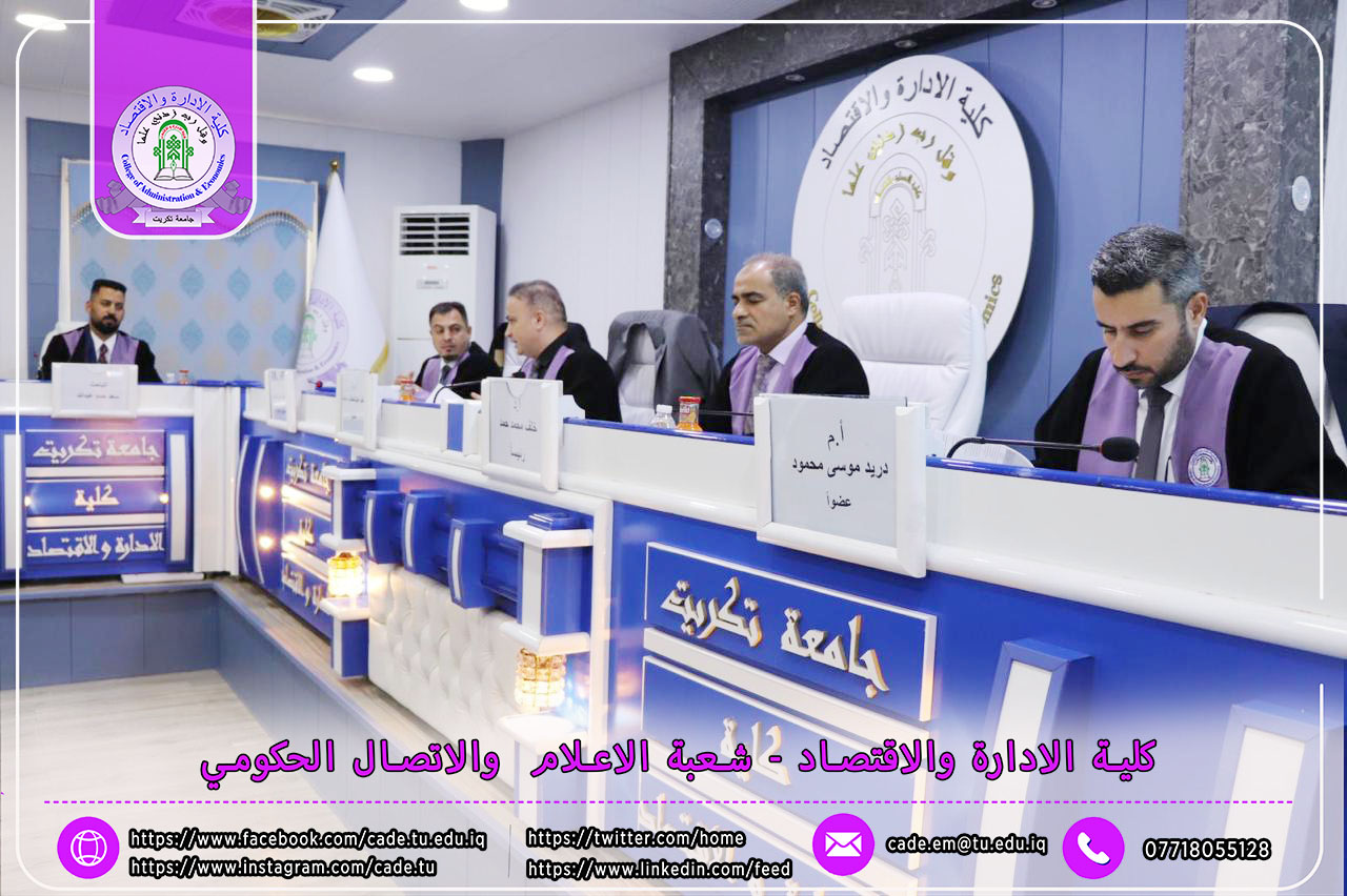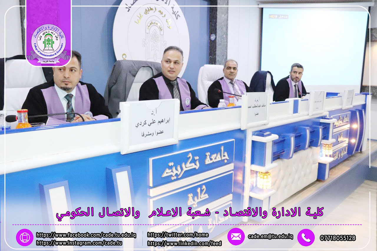 نوقشت في كلية الإدارة والاقتصاد / قسم العلوم المالية والمصرفية / رسالة الماجستير في العلوم المالية والمصرفية للطالــب سعد حمد عبدالله الموسومة (مؤشرات كفاءة الإدارة المصرفية واثرها في تحقيق السلامة المالية: دراسة تطبيقية لعدد من المصارف التجارية الخاصة العراقية) بأشراف ا.م.د. إبراهيم علي كردي.