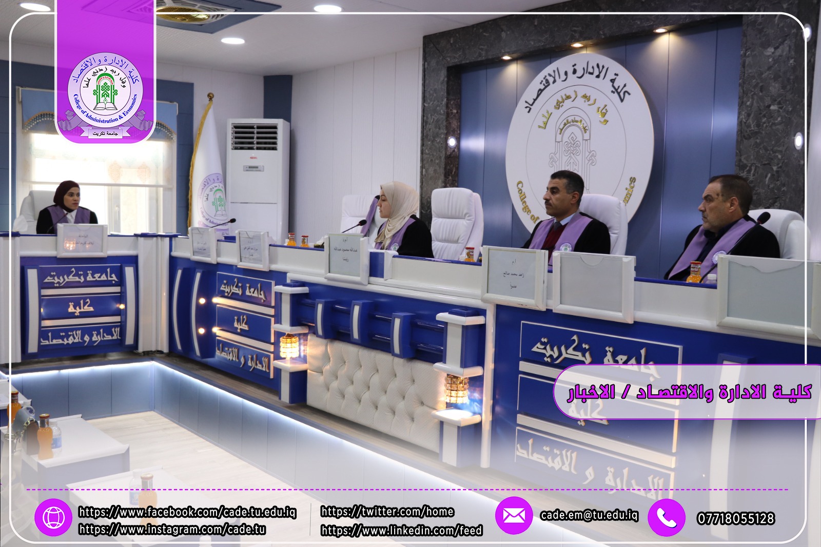 نوقشت في كلية الإدارة والاقتصاد / قسم إدارة الاعمال/ رسالة الماجستير في العلوم الادارية للطالــبة ايلاف كريم لطيف الموسومة (دور متطلبات المستشفيات الخضراء في تنفيذ الإدارة الامنة للنفايات: دراسة حالة في مستشفى تكريت التعليمي) بأشراف ا.د. قاسم احمد حنظل.