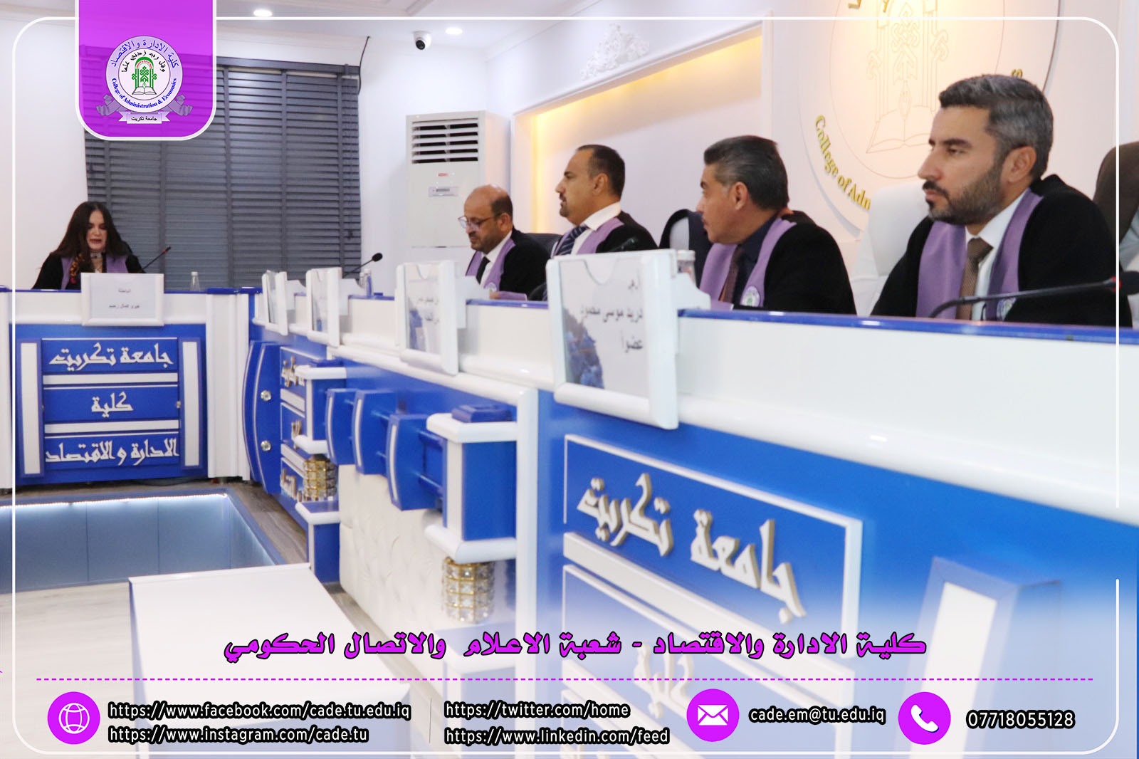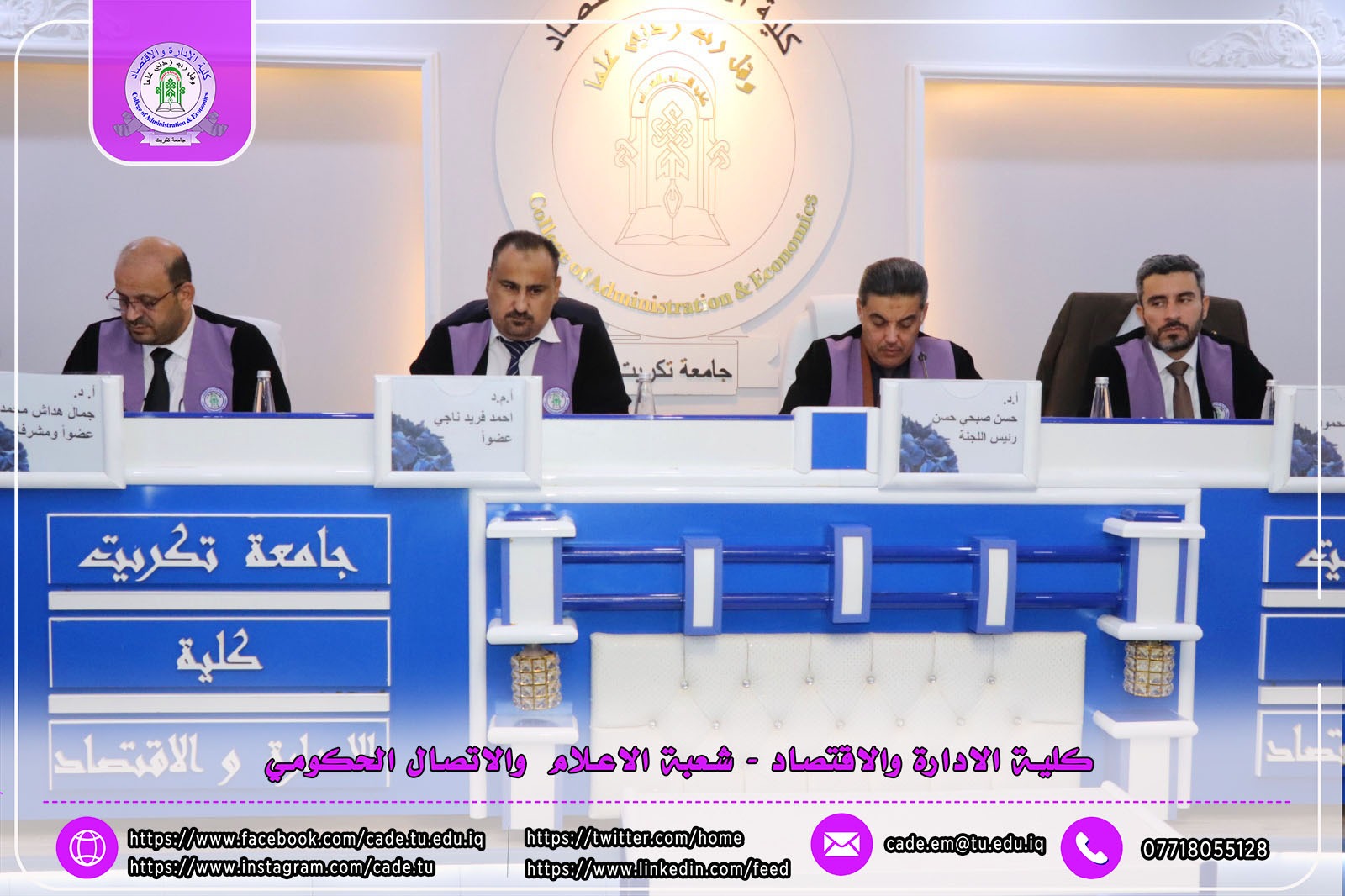 هذا وقد حضر المناقشة ا.م.د. فؤاد فرحان حسين عميد كلية الإدارة والاقتصاد و ا.م.د. خطاب عمران صالح معاون العميد للشؤون العلمية وم.د. احمد عايد مخلف معاون العميد للشؤون الإدارية وعدد من طلبة الدراسات العليا .