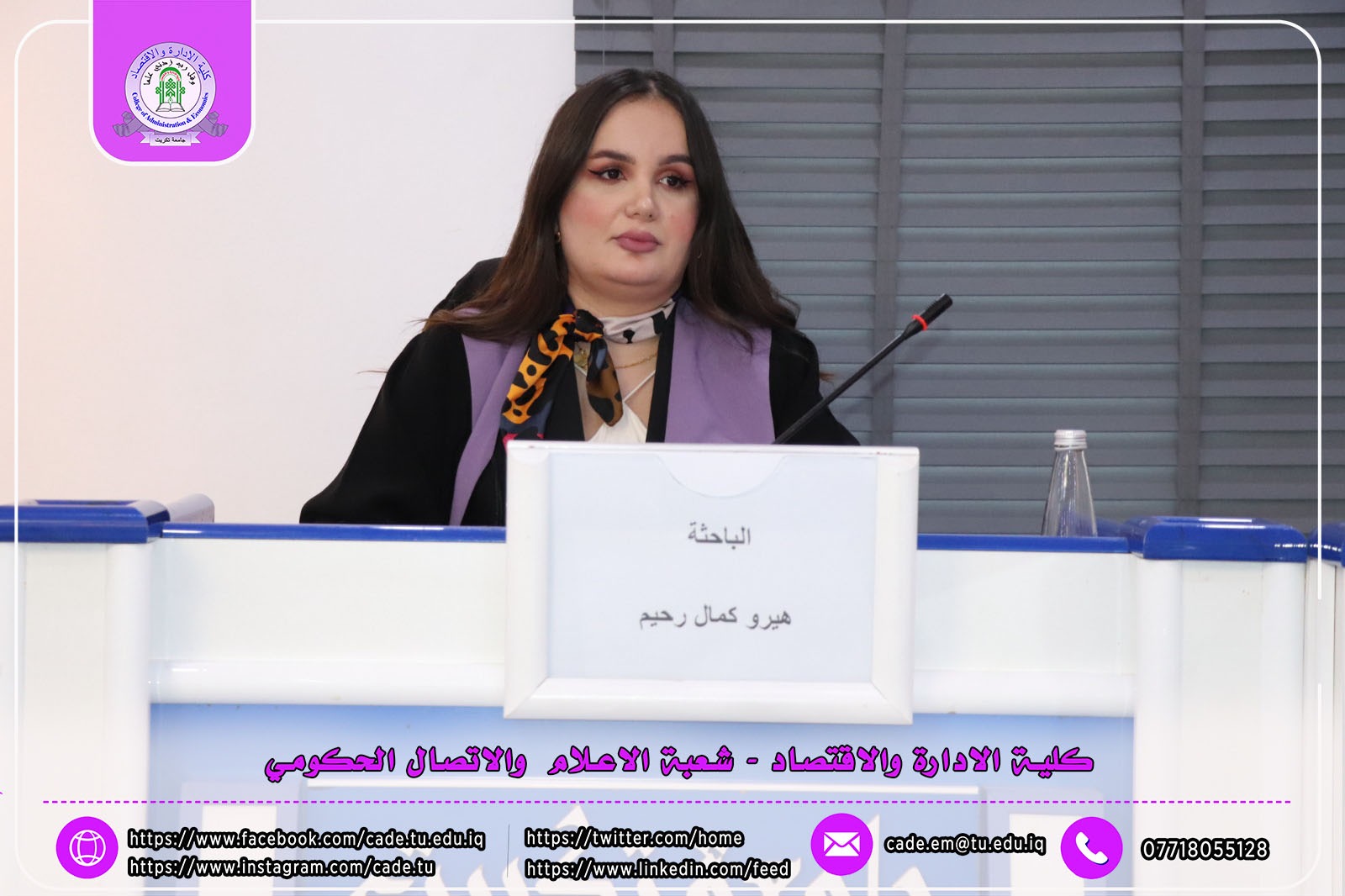 نوقشت في كلية الإدارة والاقتصاد / قسم العلوم المالية والمصرفية / رسالة الماجستير في العلوم المالية والمصرفية للطالبة هيرو كمال رحيم الموسومة (تأثير التمويل المستدام في تحقيق الاستمرارية المالية: دراسة تطبيقية في عينة من المصارف التجارية العراقية الخاصة) بأشراف ا.د. جمال هداش محمد.