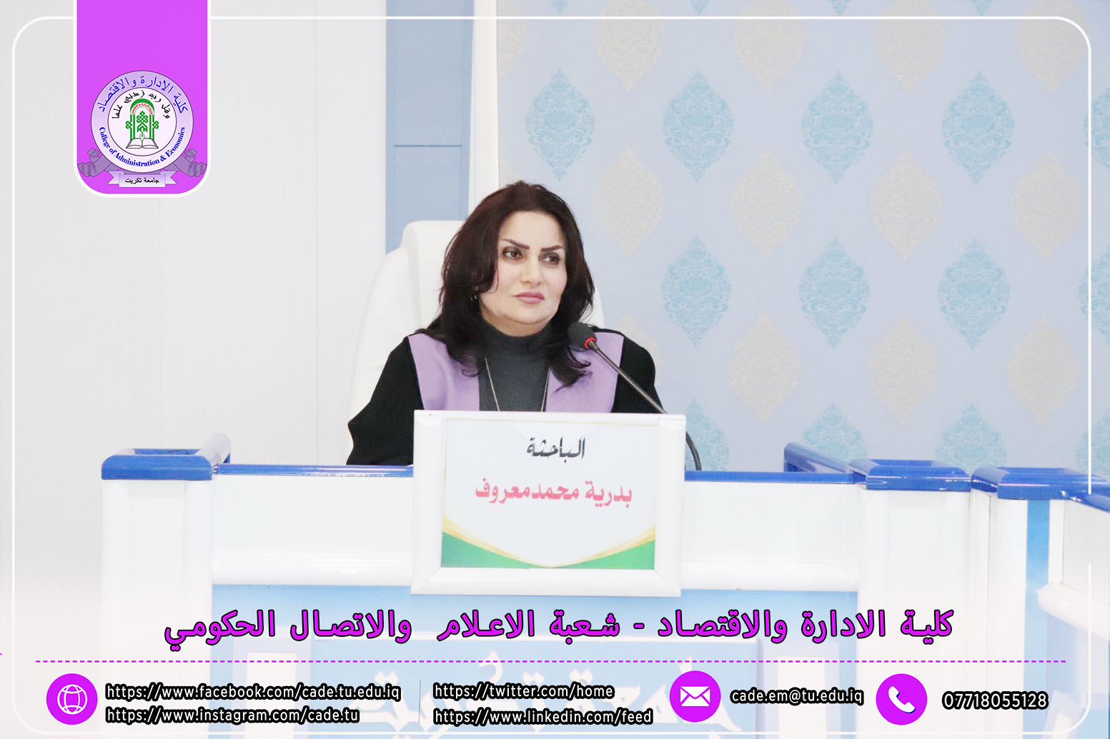 نوقشت في كلية الإدارة والاقتصاد / قسم ادارة الاعمال / رسالة الماجستير في العلوم الإدارية للطالــب بدرية محمد معروف الموسومة ((دور البنية التحتية لإدارة المعرفة على استدامة الموارد البشرية دراسة تحليلية لآراء عينة من العاملين في شركة اسياسيل للاتصالات )) بأشراف ا.م.د. فراس حسين علوان.