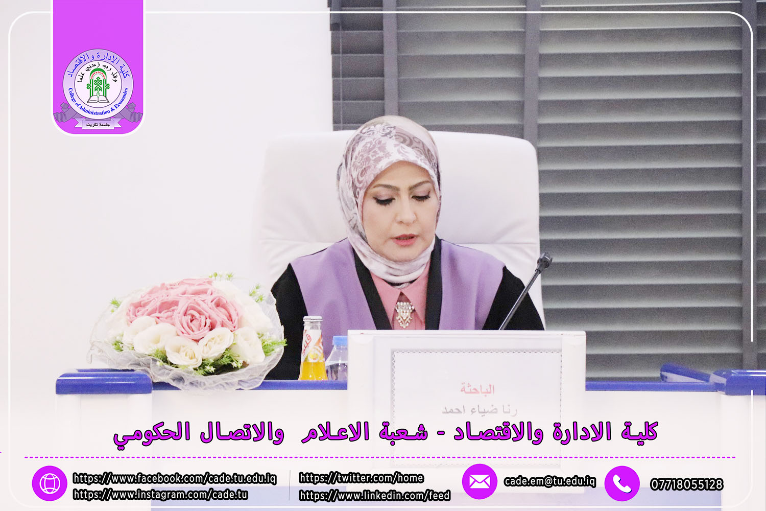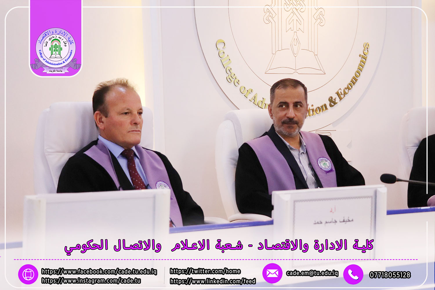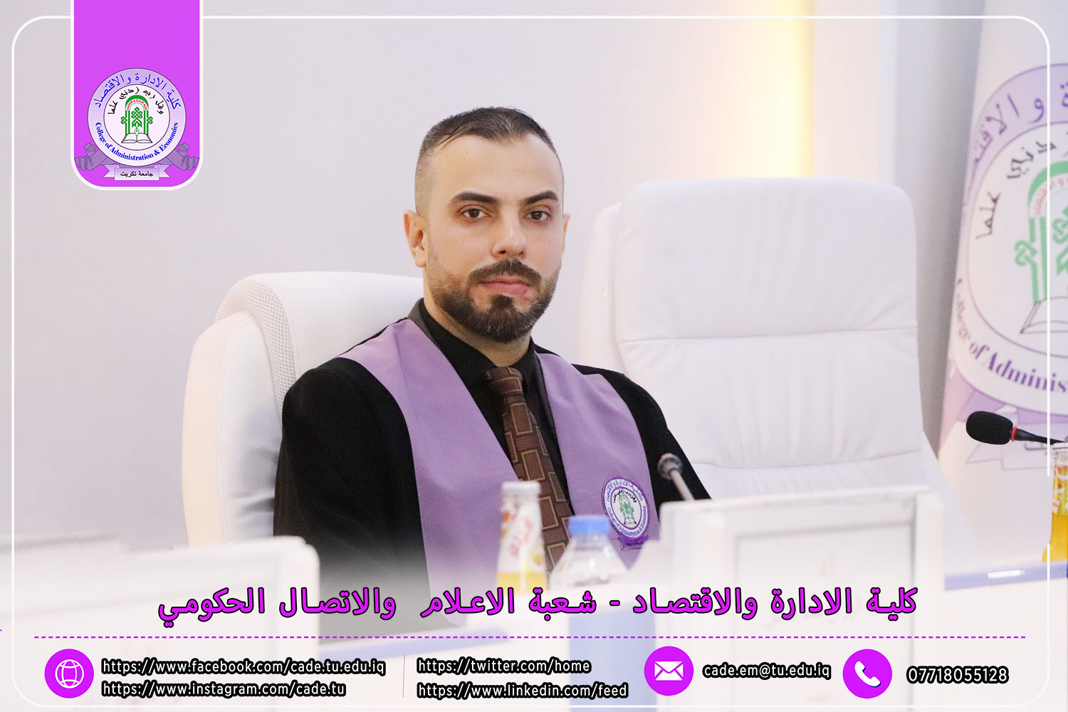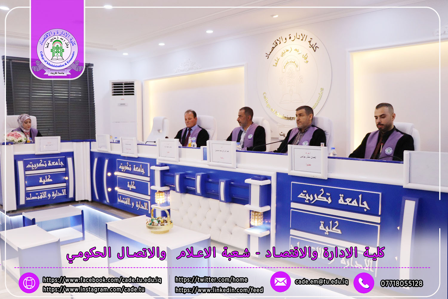 هذا وقد حضر المناقشة ا.م.د. فؤاد فرحان حسين عميد كلية الإدارة والاقتصاد و ا.م.د. فكري احمد لهمود الى جانب عدد من طلبة الدراسات العليا .