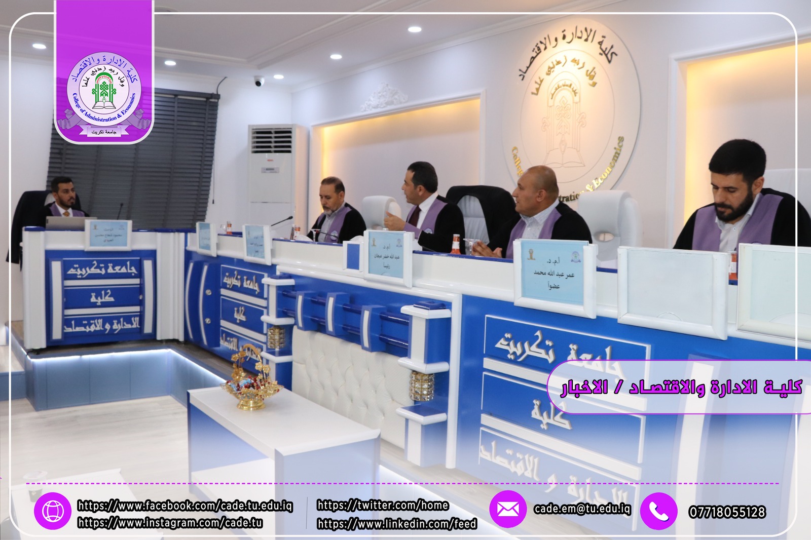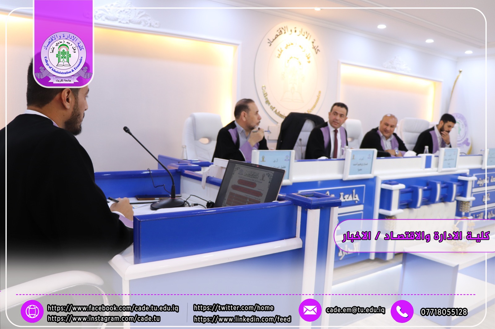 شهدت جلسة المناقشة حضور أ.م.د. فؤاد فرحان حسين، عميد كلية الإدارة والاقتصاد، وأ.م.د. خطاب عمران صالح معاون العميد للشؤون العلمية، إلى جانب عدد من أساتذة وطلبة الدراسات العليا.
