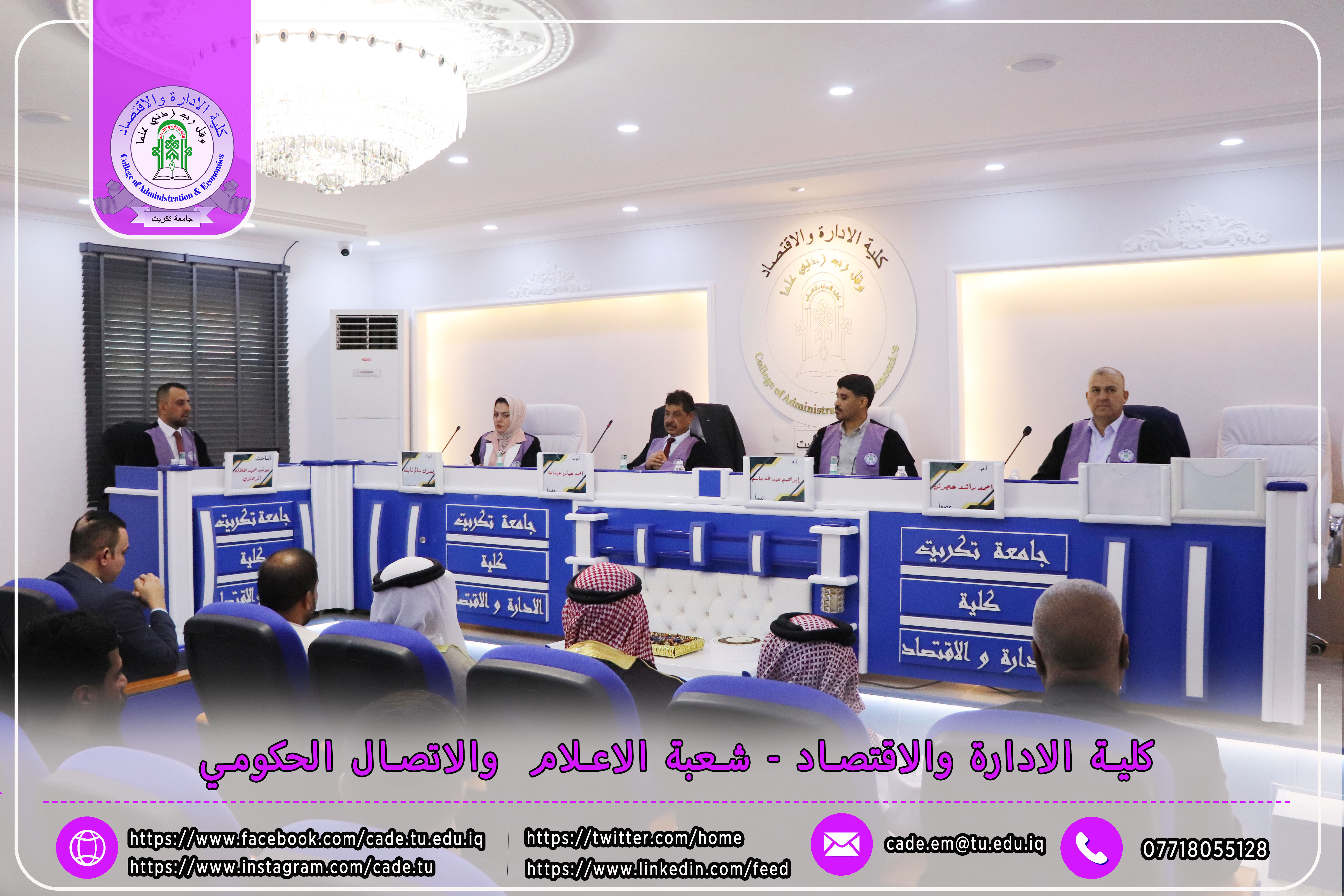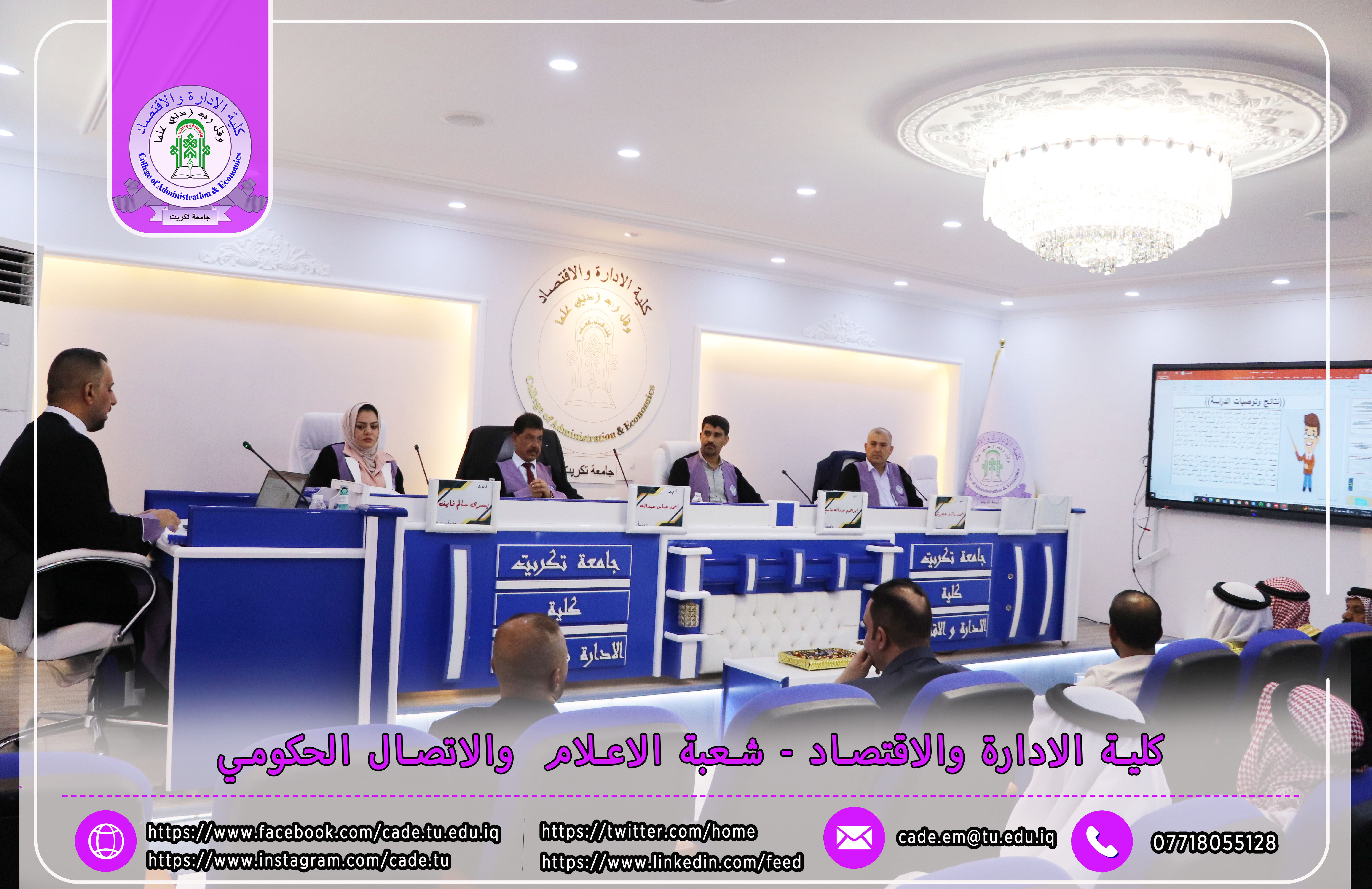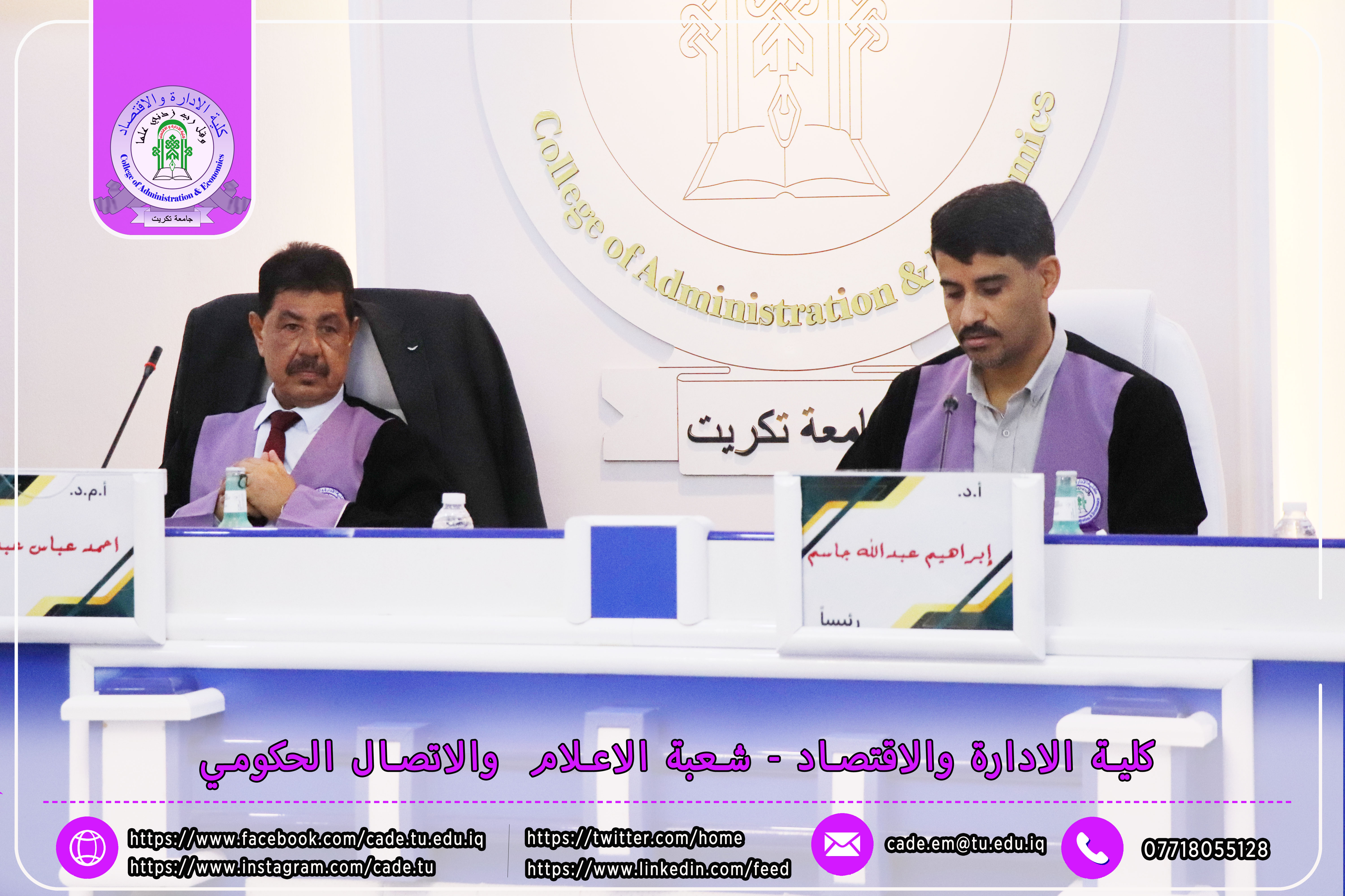 وقد شهدت المناقشة حضور الأستاذ المساعد الدكتور خطاب صالح عمران، معاون العميد للشؤون العلمية، إلى جانب عدد من طلبة الدراسات العليا.