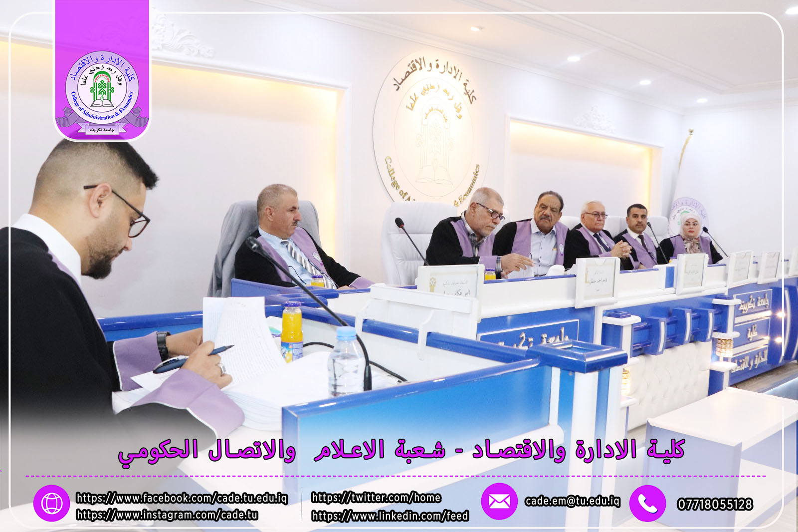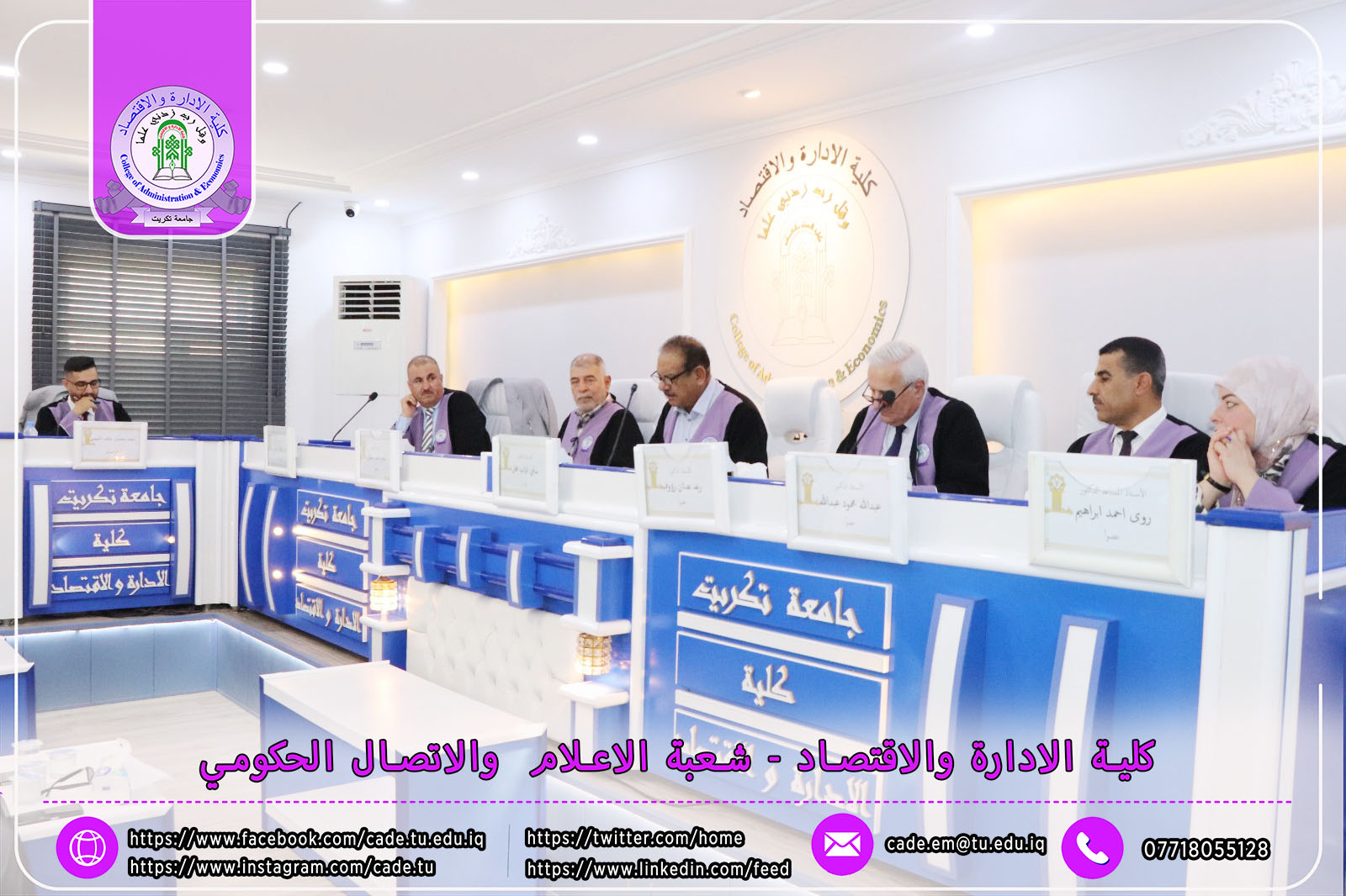 هذا وقد حضر المناقشة ا.م.د. فؤاد فرحان حسين عميد كلية الإدارة والاقتصاد و ا.م.د. خطاب صالح عمران معاون العميد للشؤون العلمية إلى جانب نخبة من السادة التدريسيين وعدد من طلبة الدراسات العليا.