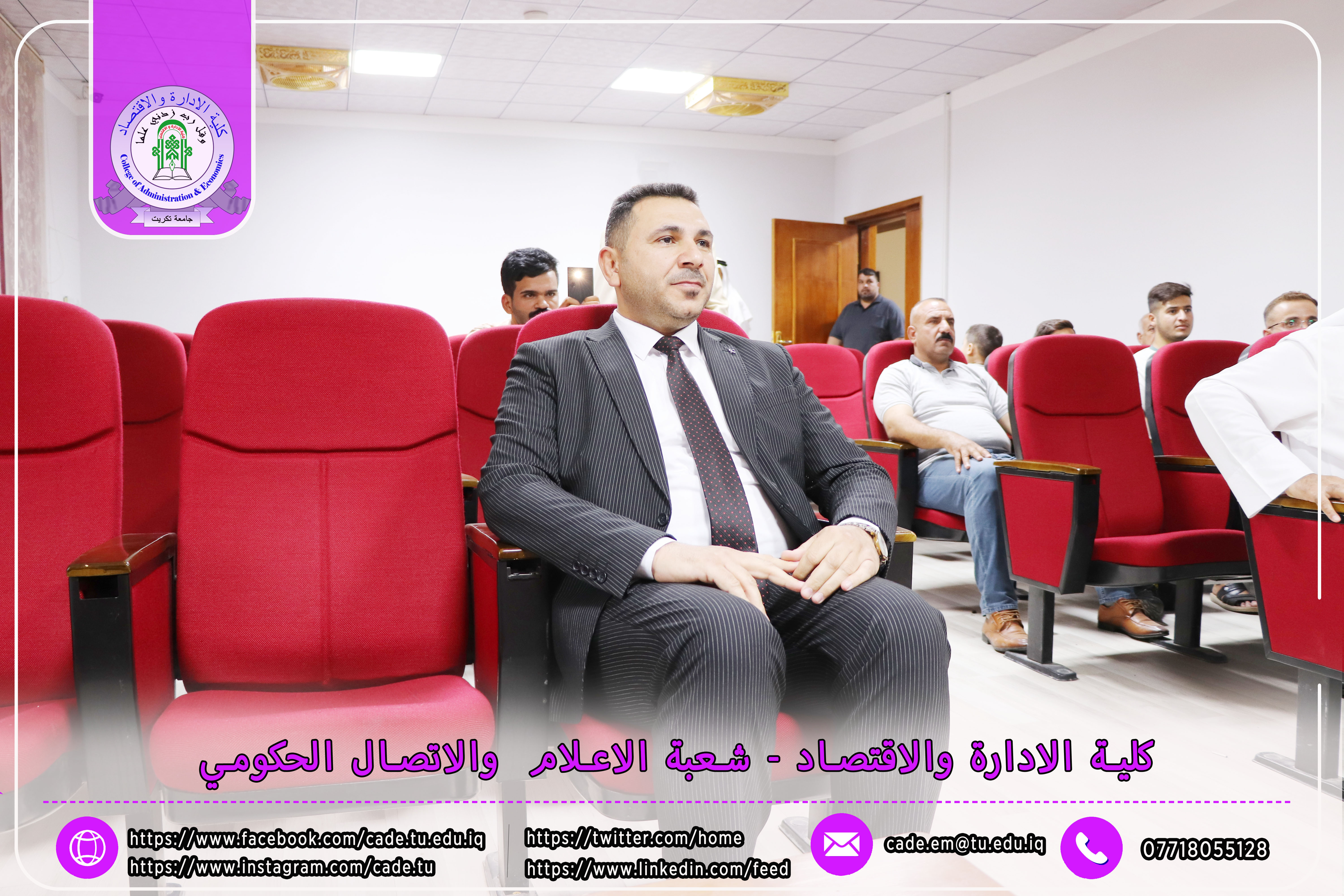 هذا وقد حضر المناقشة ا.م.د. فؤاد فرحان حسين عميد كلية الإدارة والاقتصاد إلى جانب عدد من السادة التدريسيين وطلبة الدراسات العليا.