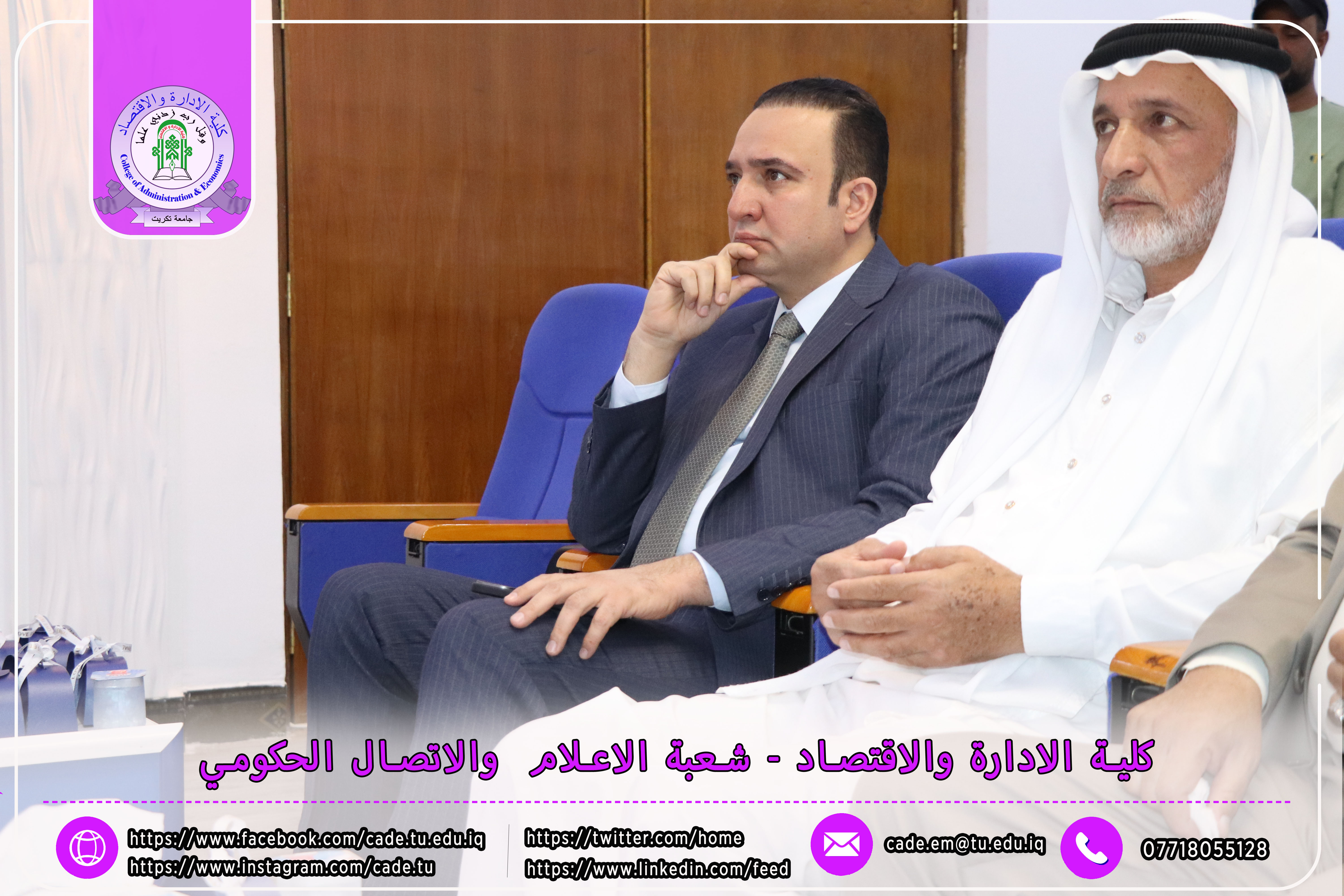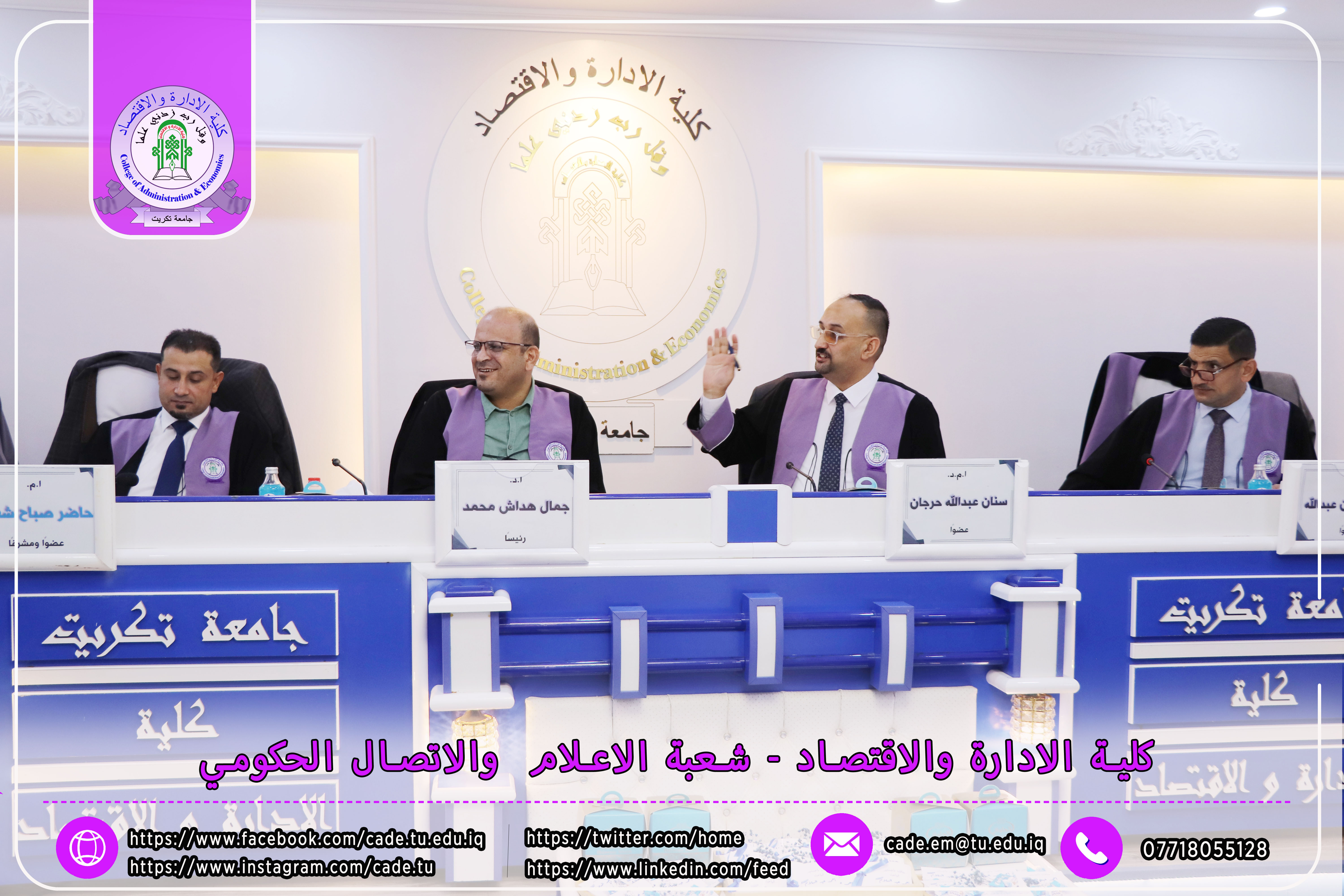نوقشت في كلية الإدارة والاقتصاد رسالة في العلوم المالية والمصرفية للطالب احمد عبد السلام عمر الموسومة ( تأثير الذكاء المالي في تحقيق الاستقرار المصرفي_ دراسة في عينة من المصارف العراقية) بأشراف ا.م. حاضر صباح شعير.