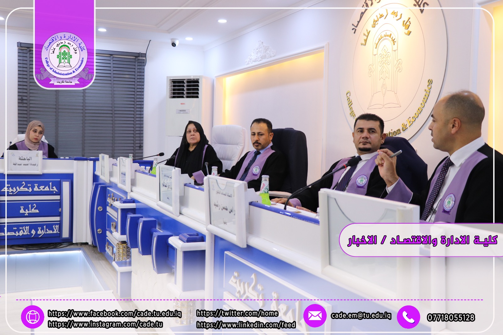وتألفت لجنة المناقشة من ا.م.د. محمد علي عبدالله رئيساً وعضوية كل من ا.م.د. فراس حسن رشيد، ا.م.د. ياسر لطيف خلف، إلى جانب المشرف على الرسالة.