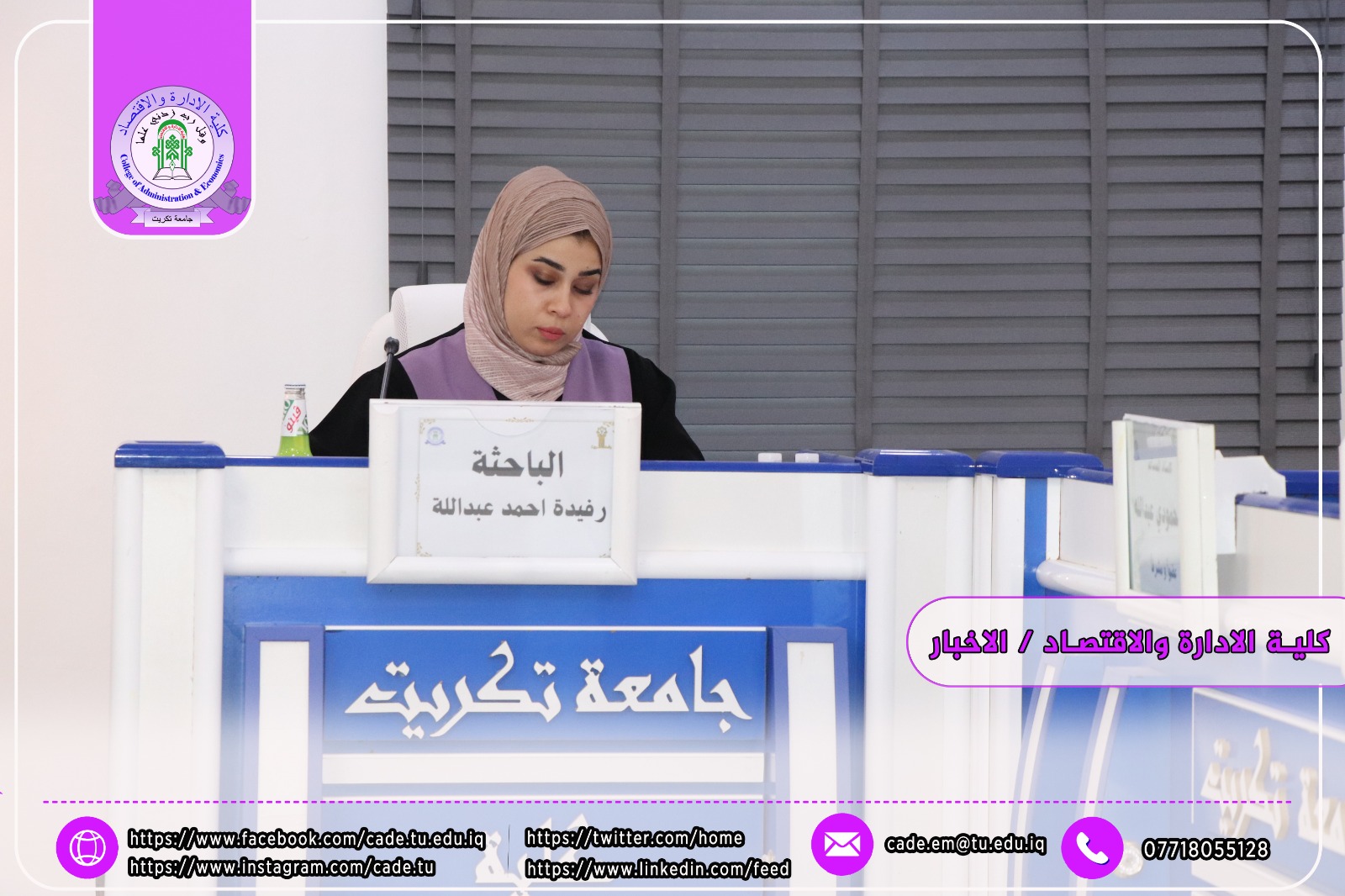 نوقشت في كلية الإدارة والاقتصاد/ قسم ادارة الاعمال / رسالة الدبلوم العالي في التخطيط الاستراتيجي المعادل للماجستير للطالبة رفيدة احمد عبدالله الموسومة (مدى توافر الممارسات الخضراء لإدارة الموارد البشرية دراسة حالة في دائرة صحة صلاح الدين) بأشراف ا.م. مي حمودي عبدالله.