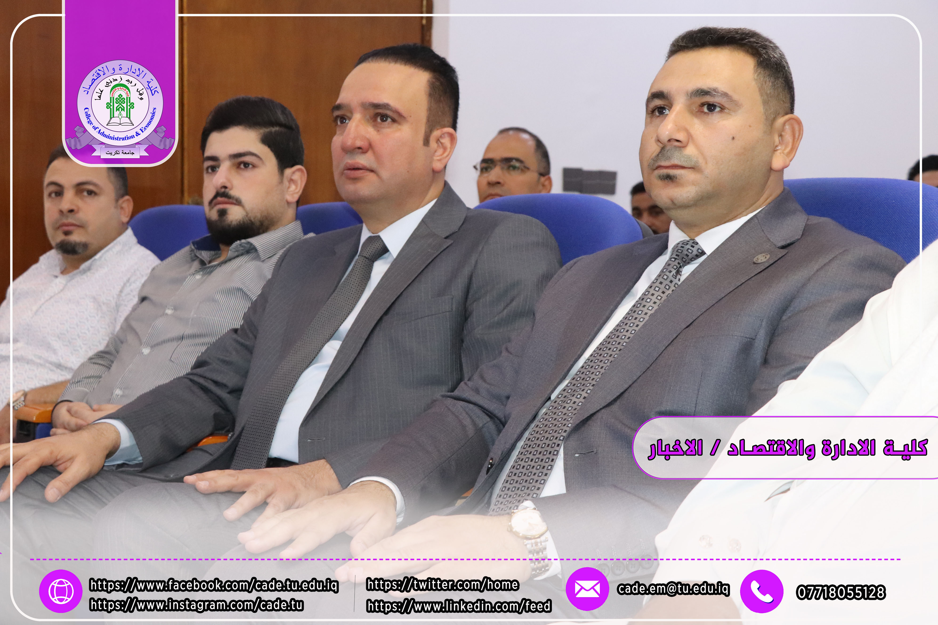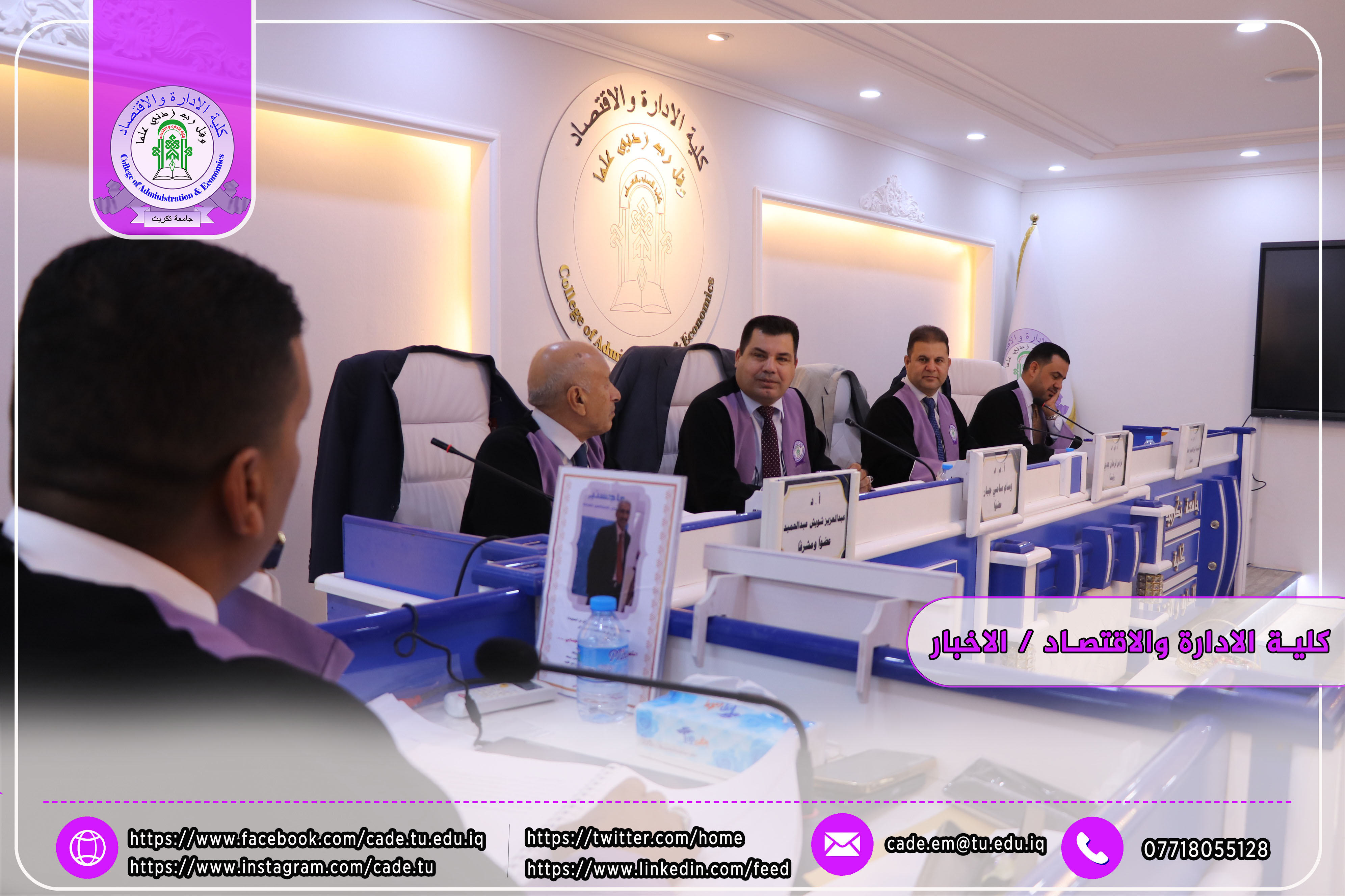 وحضر المناقشة كلٌّ من أ.م.د. فؤاد فرحان حسين عميد كلية الإدارة والاقتصاد، وأ.م.د. خطاب عمران صالح معاون العميد للشؤون العلمية، إضافةً إلى عدد من السادة التدريسيين وطلبة الدراسات العليا.