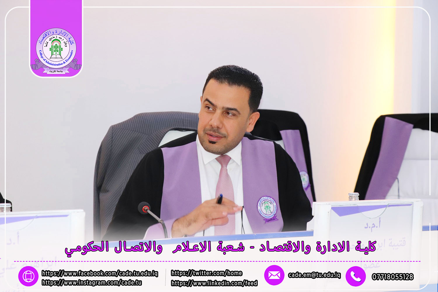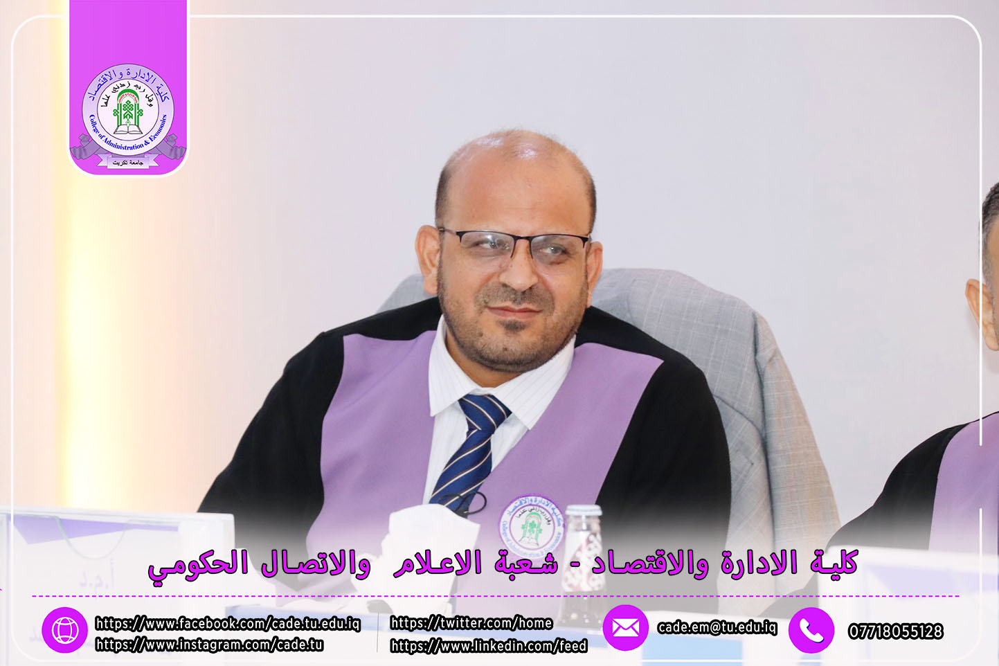 وقد حضر المناقشة حضور الأستاذ المساعد الدكتور فؤاد فرحان حسين عميد كلية الإدارة والاقتصاد، والأستاذ المساعد الدكتور خطاب عمران صالح معاون العميد للشؤون العلمية، إلى جانب عدد من طلبة الدراسات العليا.