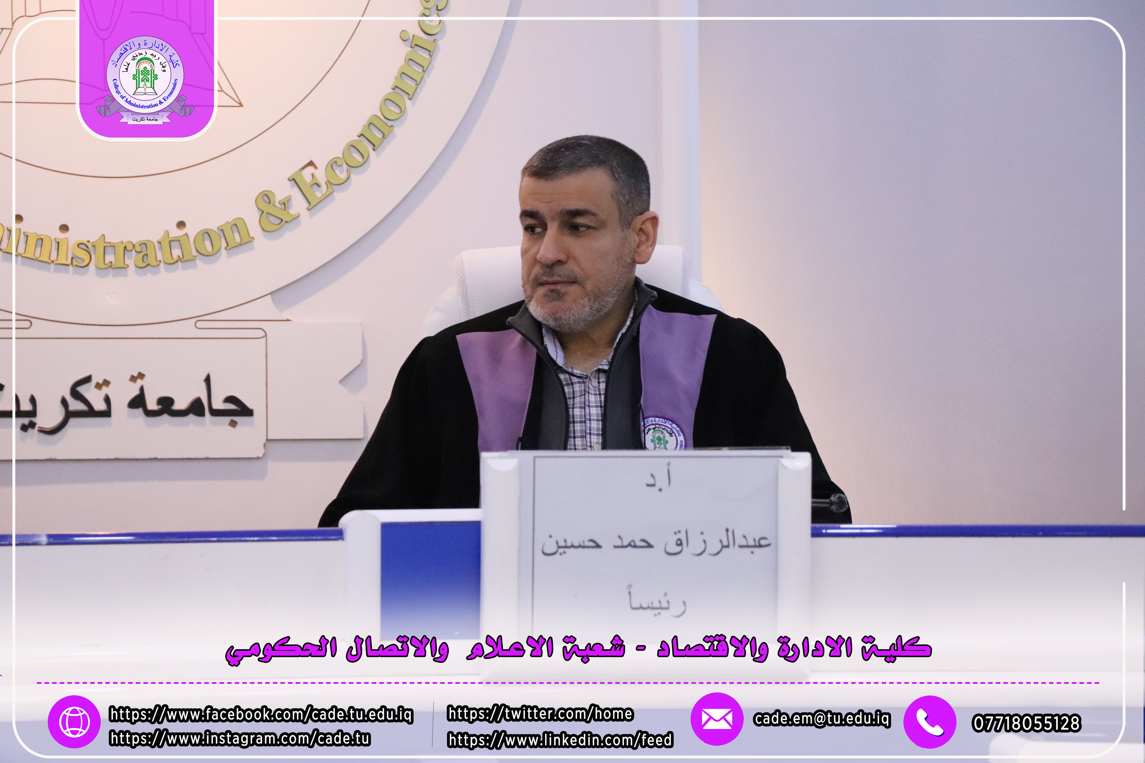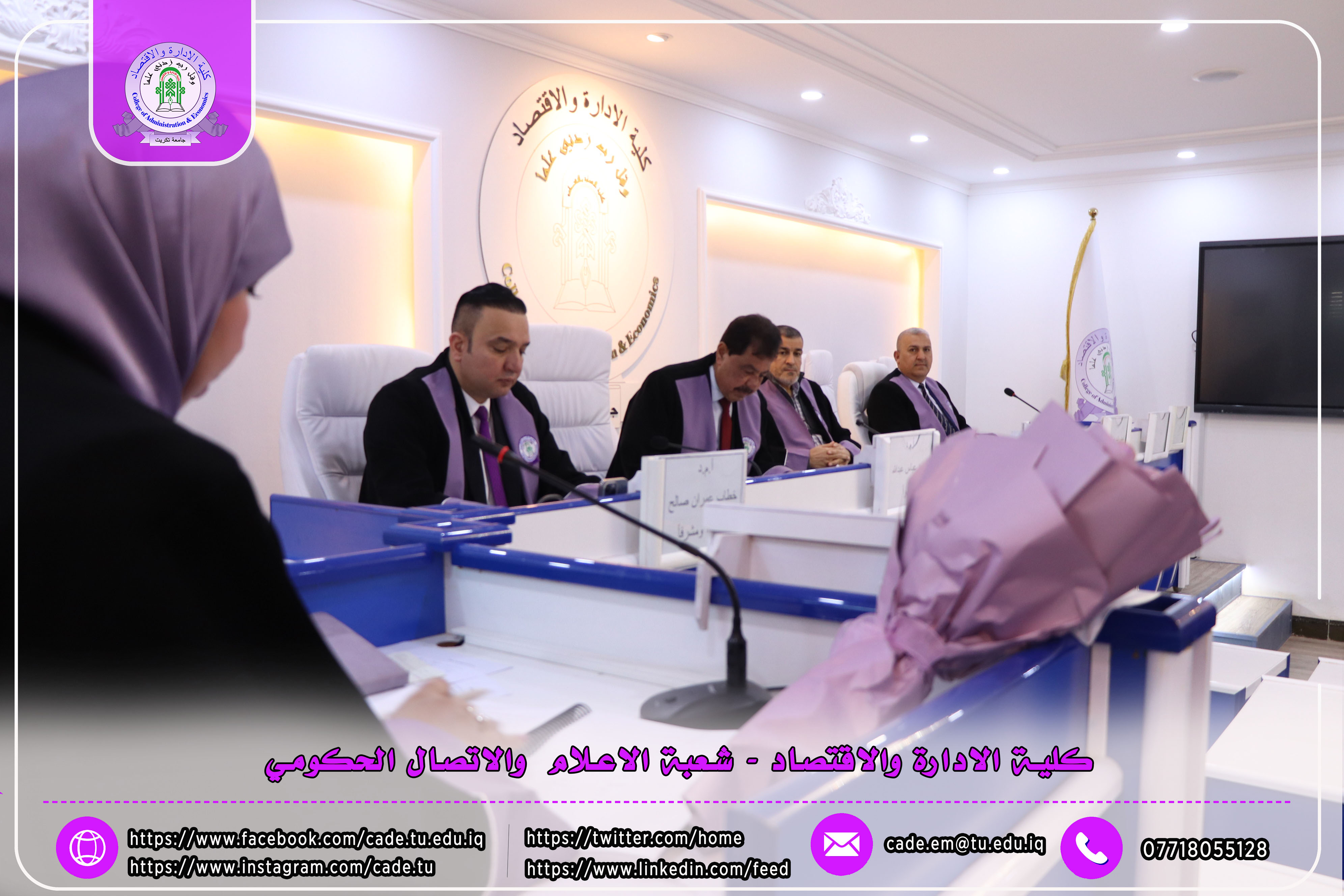 وتألفت لجنة المناقشة من ا.د. عبدالرزاق حمد حسين رئيساً وعضوية كل من ا.م.د. احمد عباس عبدالله، ا.م.د. احمد راشد عجرش، إلى جانب المشرف على الرسالة.