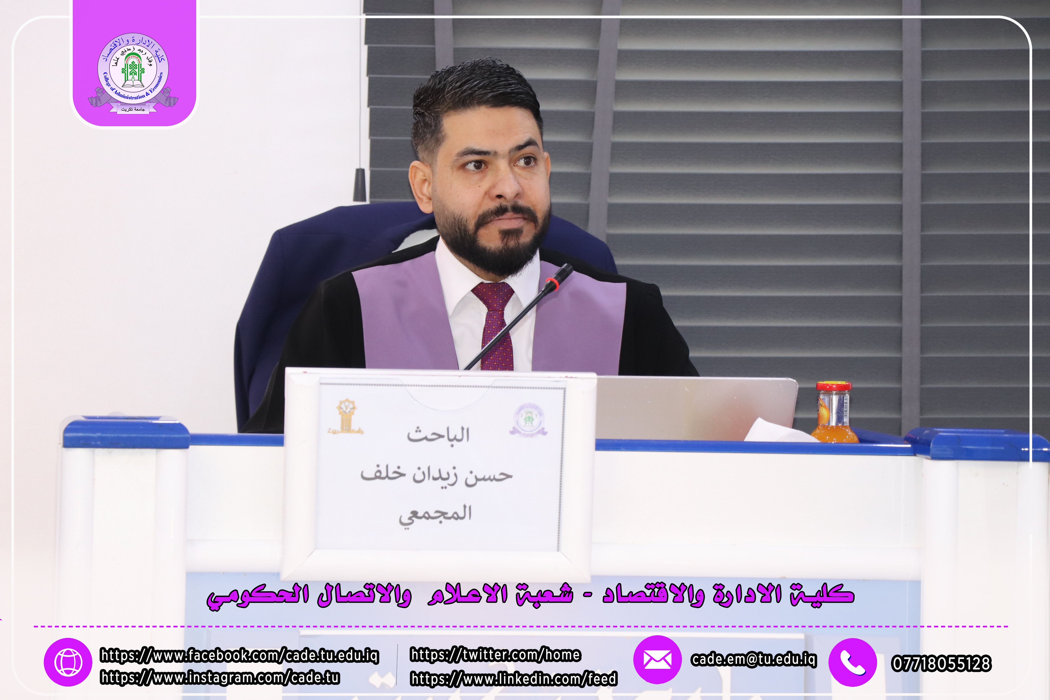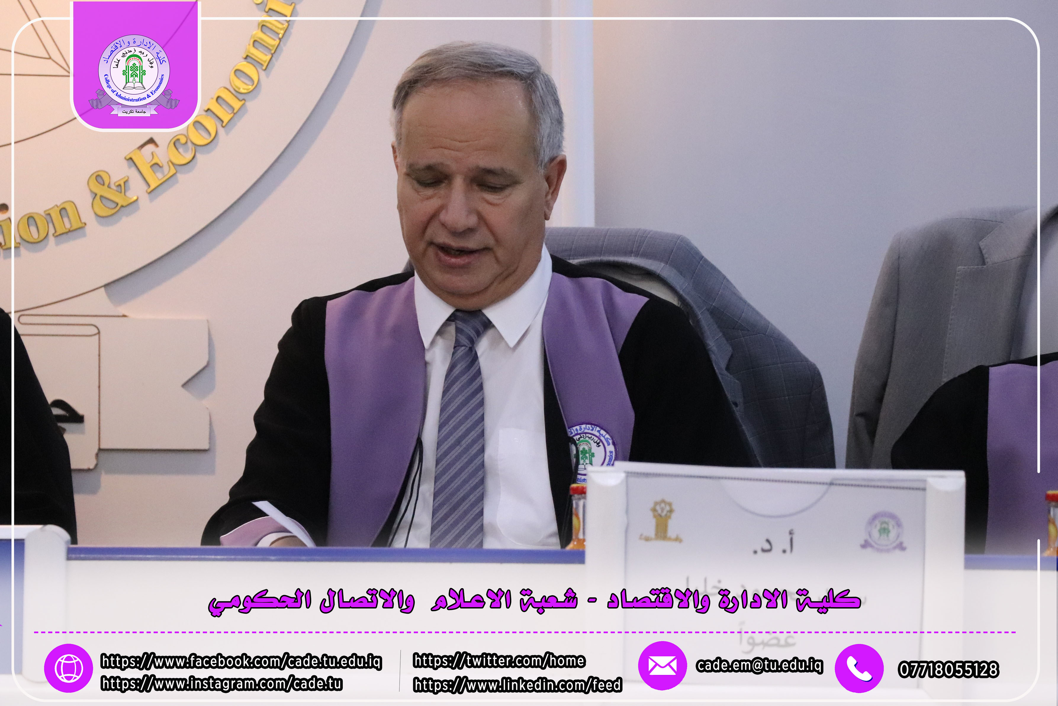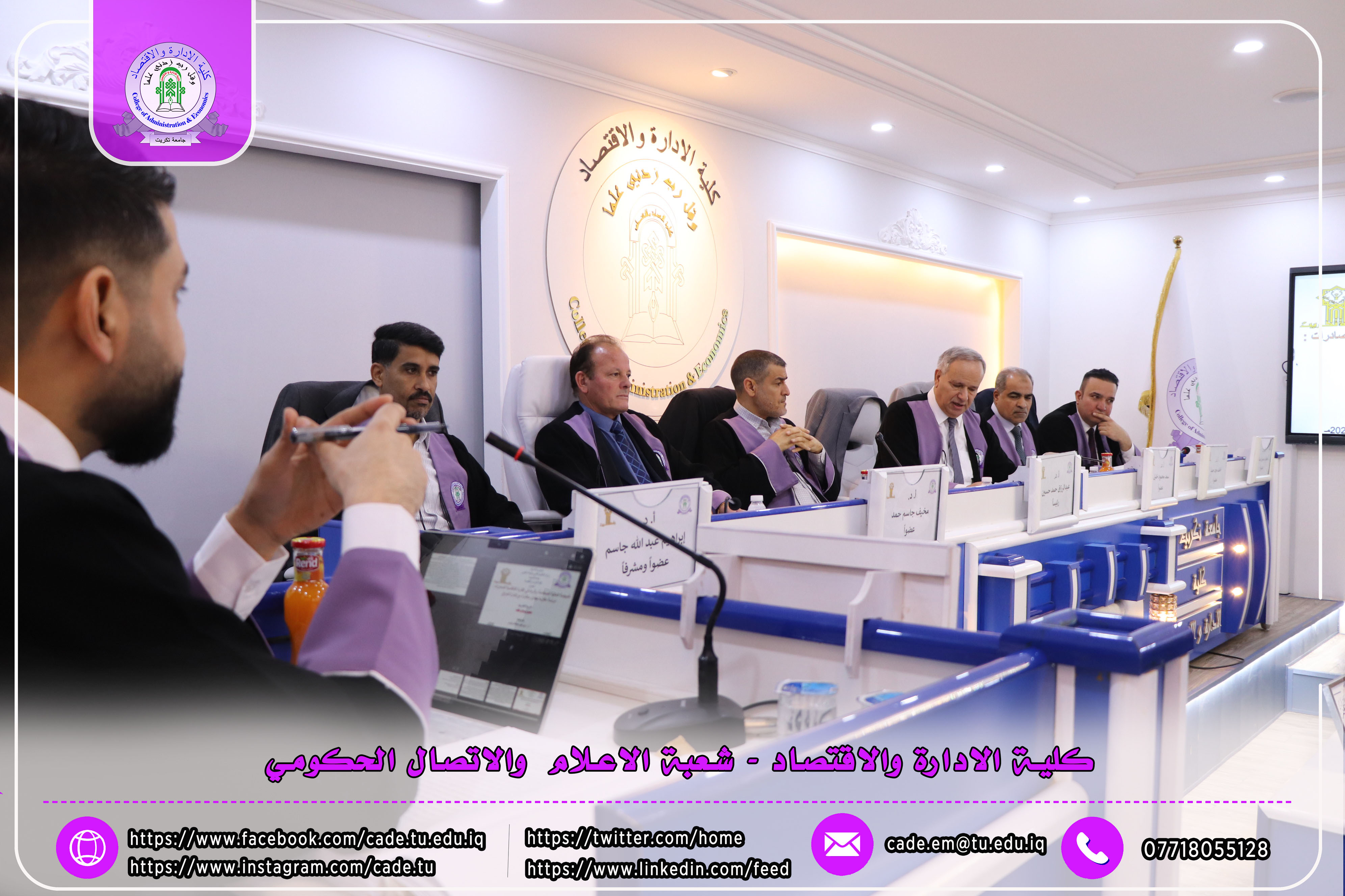 هذا وقد شهدت المناقشة حضور الاستاذ المساعد الدكتور فؤاد فرحان حسين عميد كلية الادارة والاقتصاد وعدد من السادة التدريسيين وطلبة الدراسات العليا.