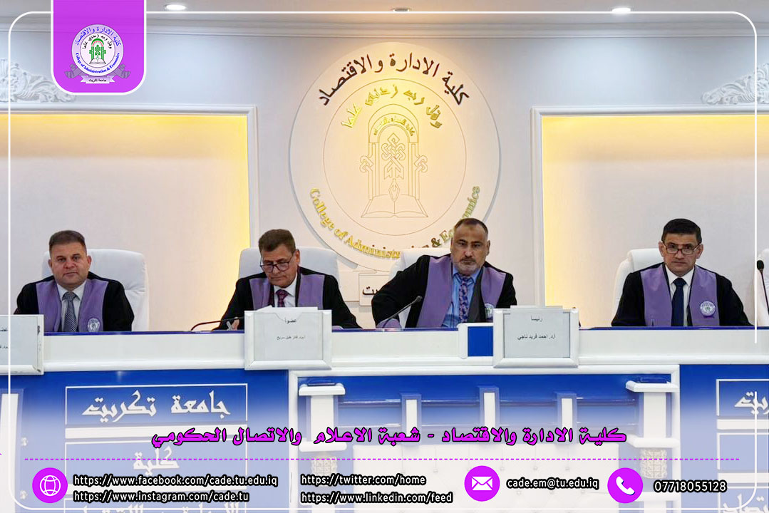 وقد شهدت المناقشة حضور الأستاذ المساعد الدكتور خطاب عمران صالح معاون العميد للشؤون العلمية، والأستاذ المساعد الدكتور احمد معاون العميد للشؤون الادارية إلى جانب عدد من السادة التدريسيين وطلبة الدراسات العليا.