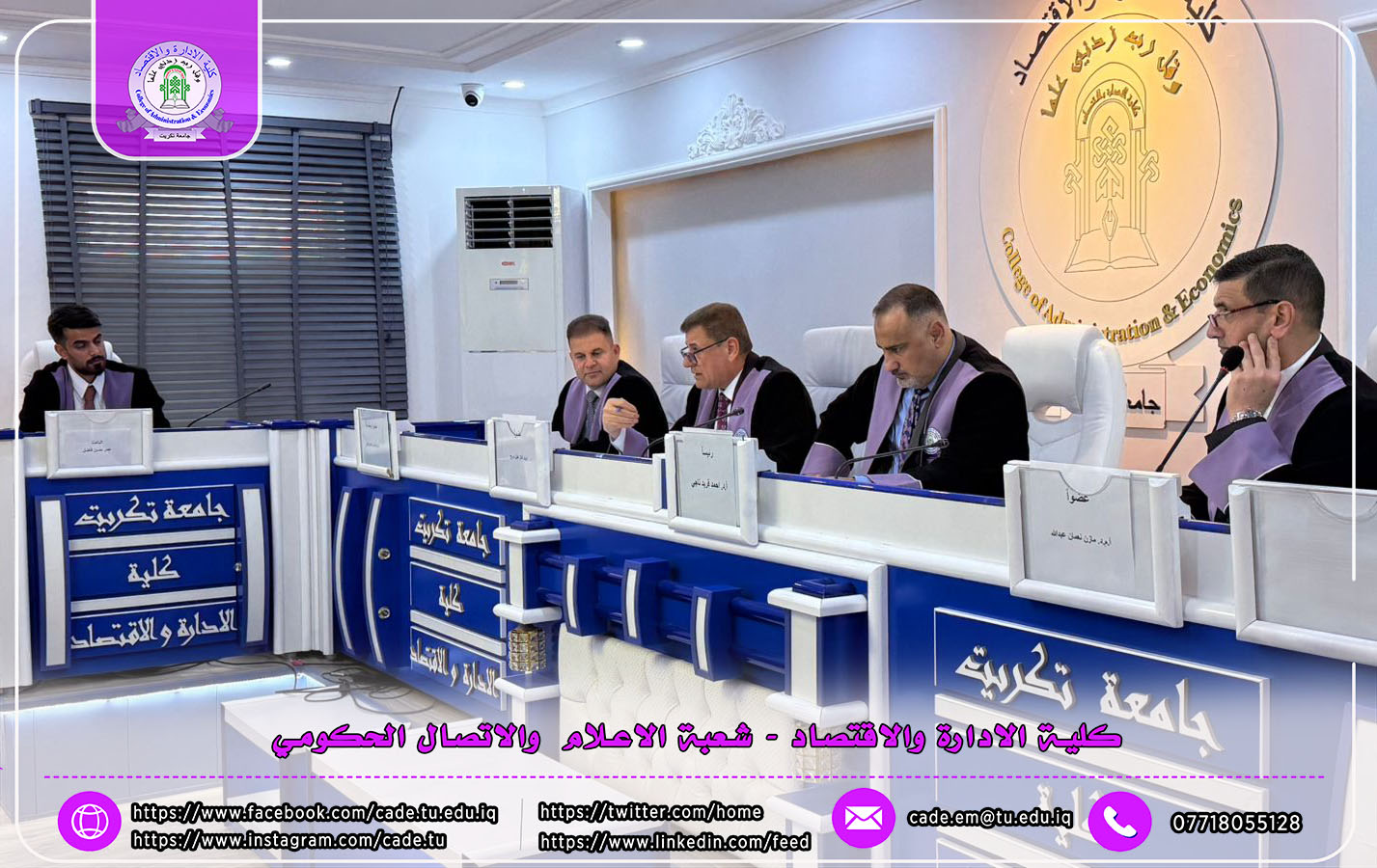 وتألفت لجنة المناقشة من ا.د. احمد فريد ناجي رئيساً وعضوية كل من ا.م.د. فائز هليل سريع، ا.م.د. مازن نعمان عبدالله، إلى جانب المشرف على الرسالة.