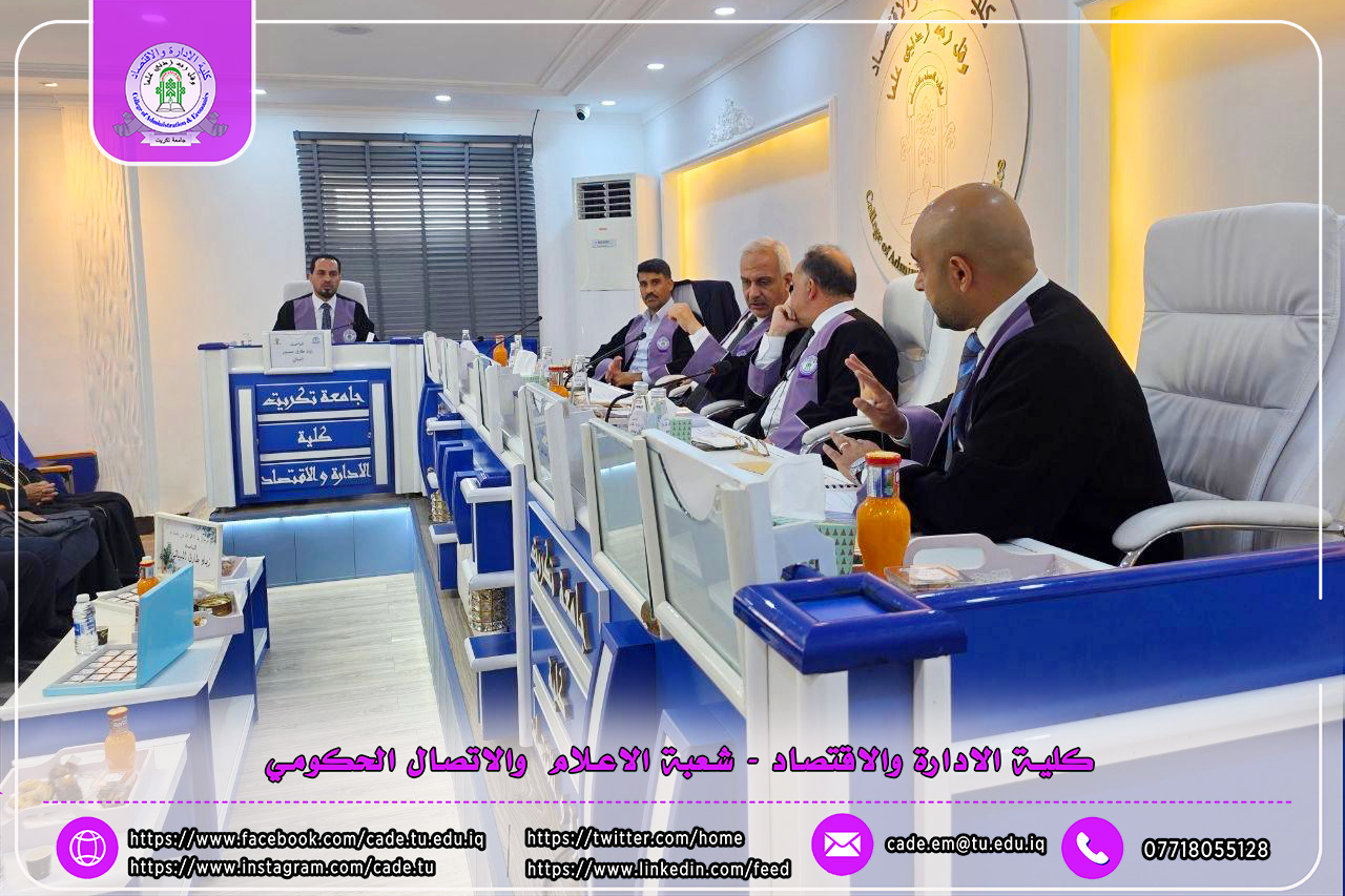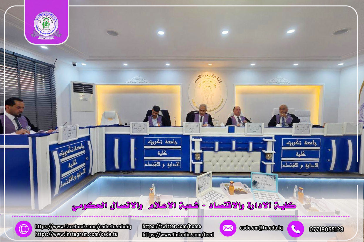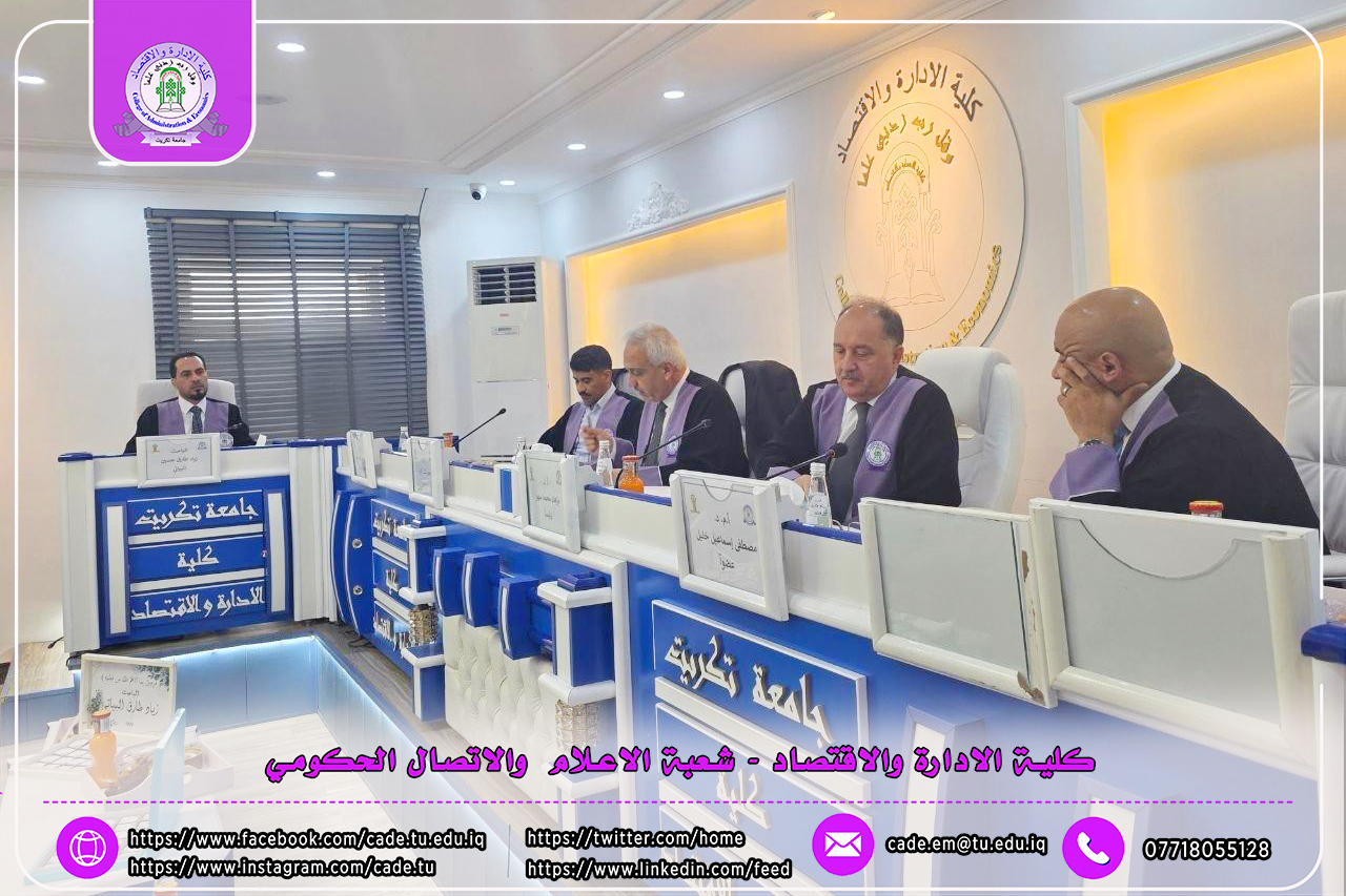 نوقشت في كلية الإدارة والاقتصاد / قسم الاقتصاد / رسالة الماجستير في العلوم الاقتصادية/ للطالــب زياد طارق حسين الموسومة (اثر مؤشرات الدعم اللوجستي في التجارة الخارجية للدول مختارة) بأشراف ا.د. إبراهيم عبد الله جاسم