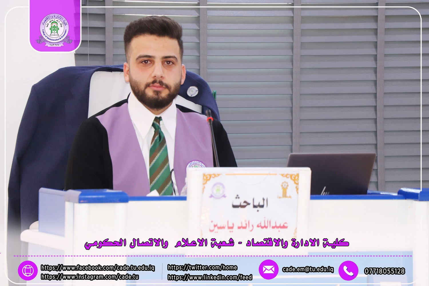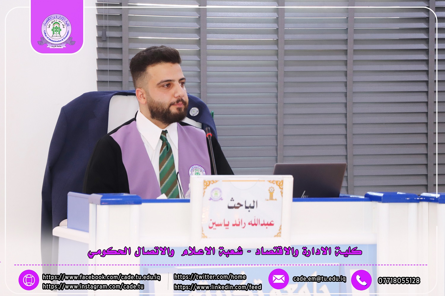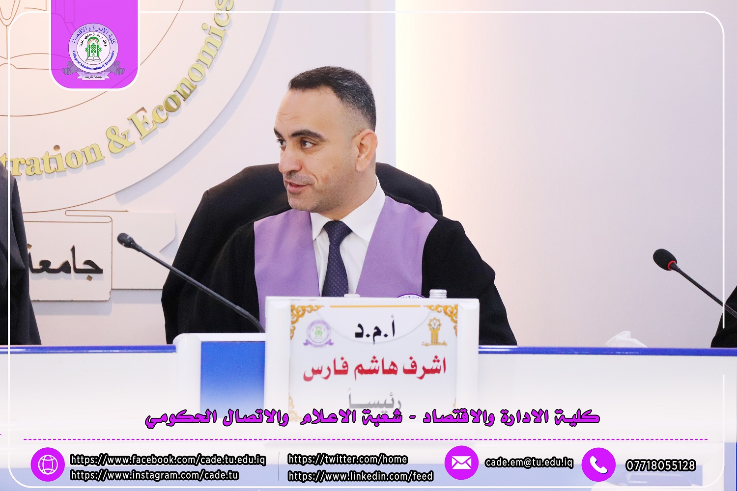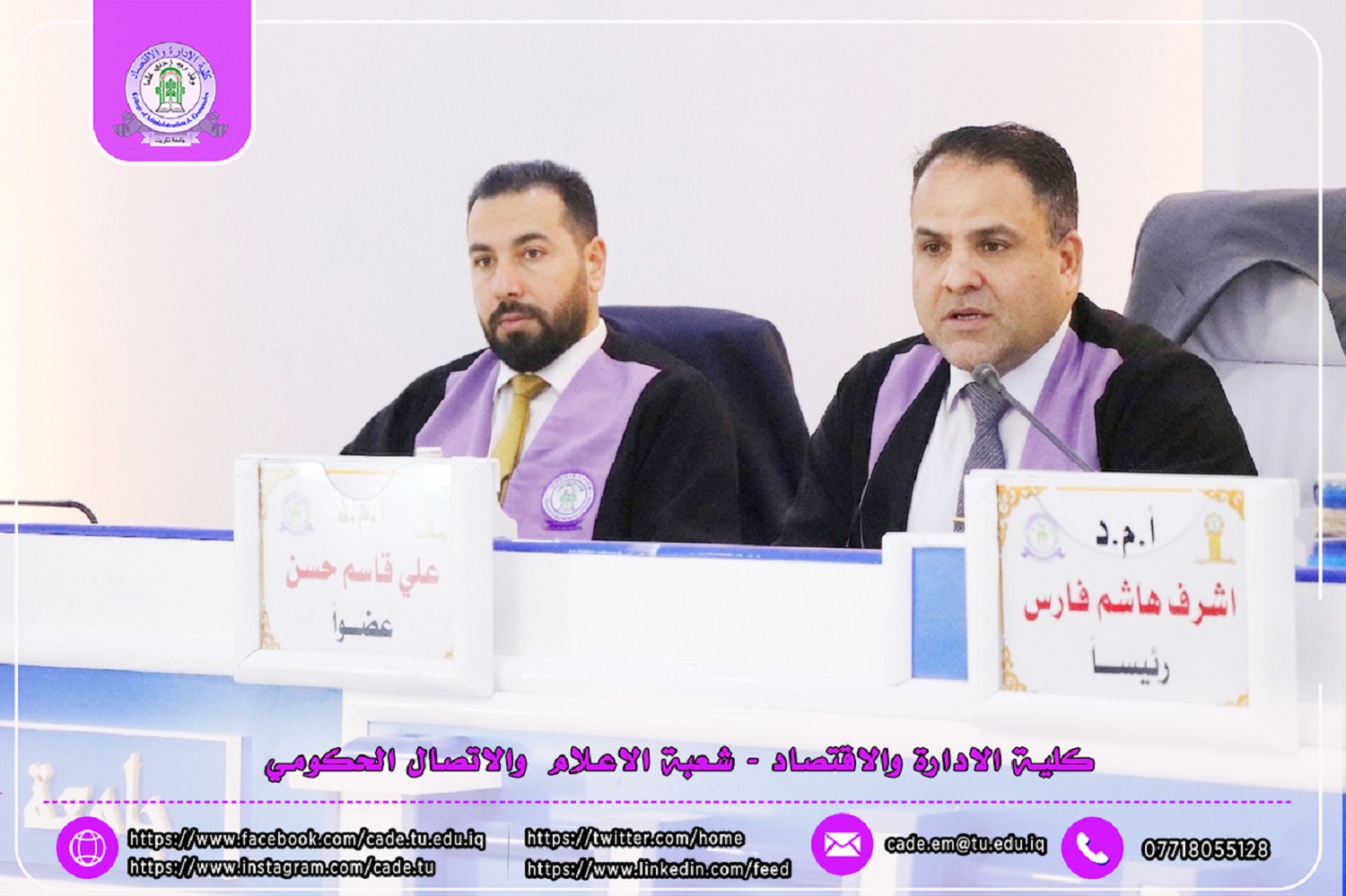 هذا وقد شهدت المناقشة حضور الاستاذ المساعد الدكتور فؤاد فرحان حسين عميد كلية الادارة والاقتصاد والاستاذ المساعد الدكتور احمد نوار نصيف معاون العميد للشؤون الاداريةوالى جانب عدد من طلبة الدراسات العليا.