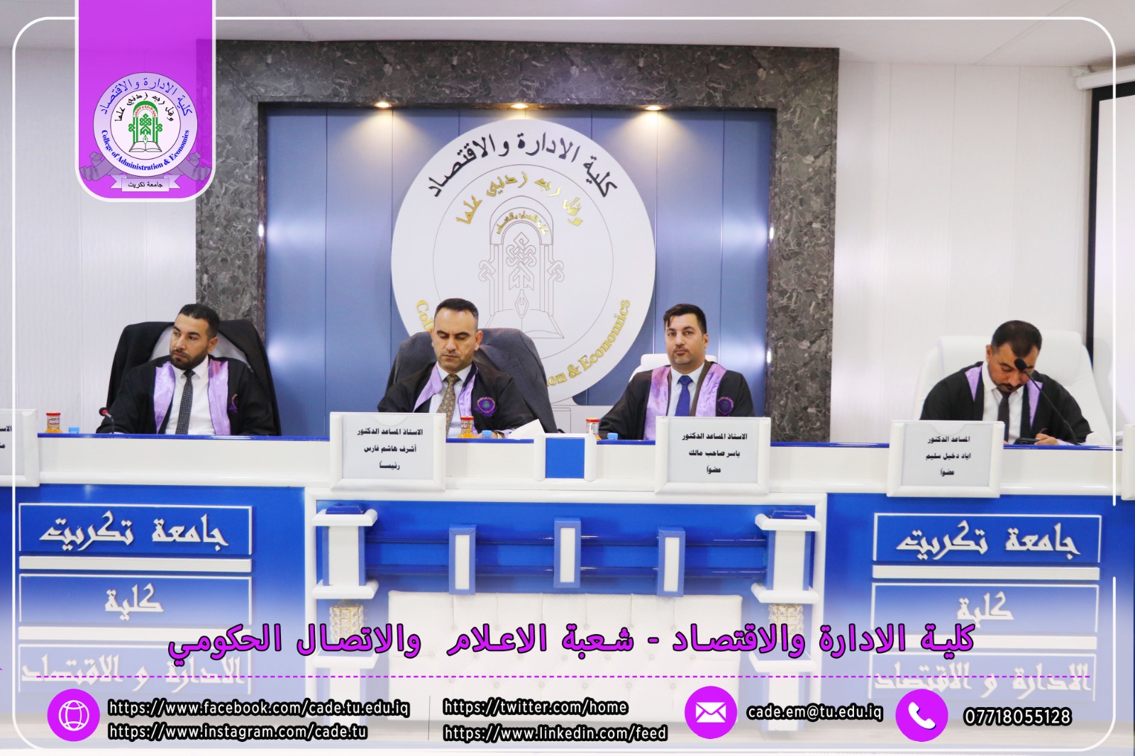 هذا وقد حضر المناقشة السيد العميد ا.د. عبد الرزاق حمد حسين، بالإضافة إلى عدد من السادة التدريسيين وطلبة الدراسات العليا.