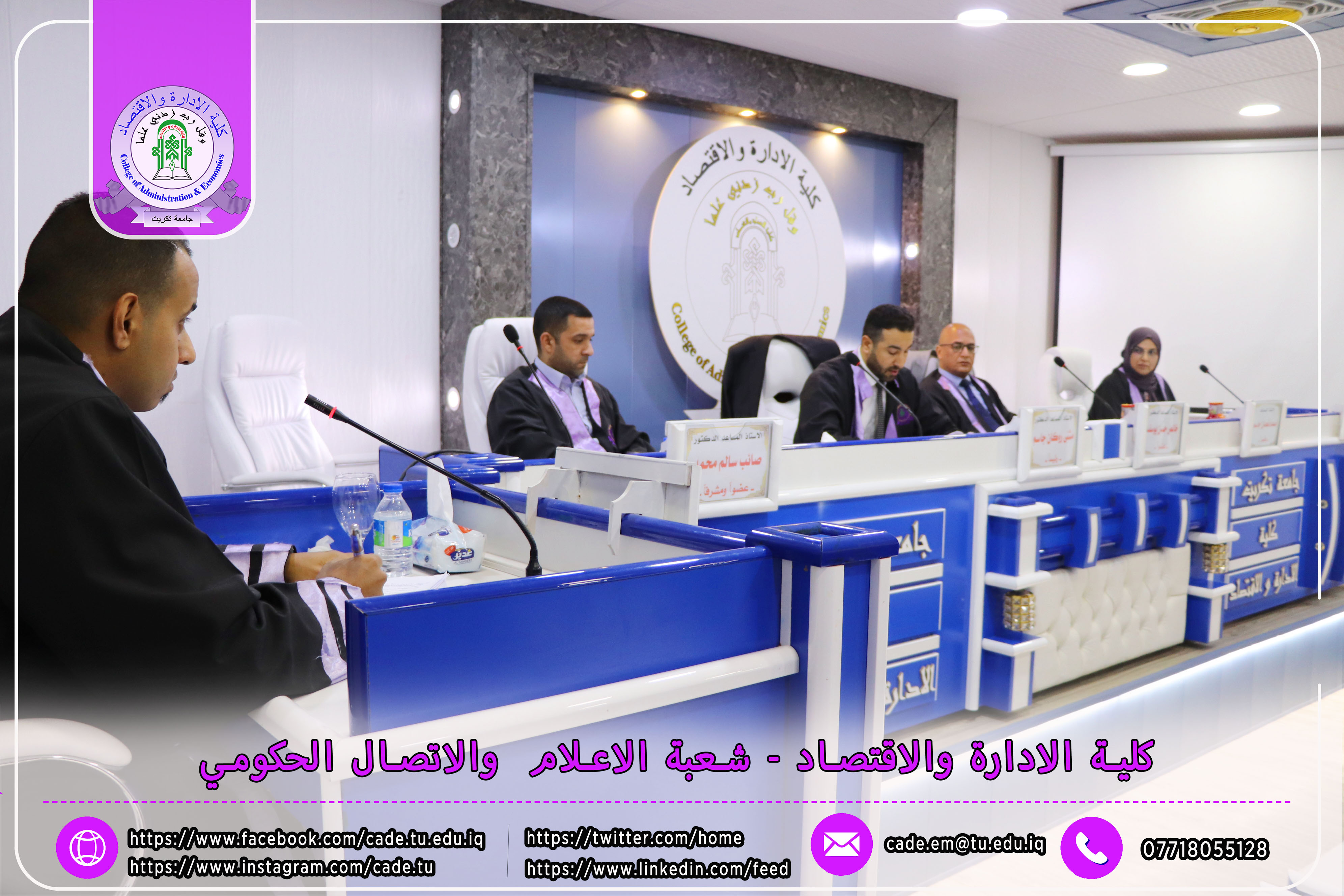 نوقشت في كلية الإدارة والاقتصاد / قسم المحاسبة / رسالة الماجستير في العلوم المحاسبية للطالــب أيمن حماده جاسم الموسومة (تأثير تعقيد القوائم المالية في عدم تماثل المعلومات وانعكاسه على قيمة الشركة / دراسة تطبيقية على عينة من المصارف المدرجة في سوق العراق للأوراق المالية ) بأشراف ا. م. د. صائب سالم محمد.