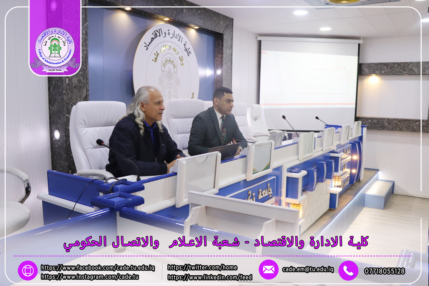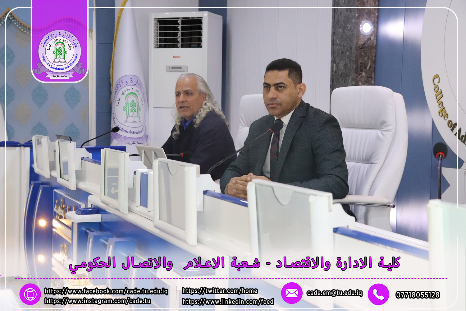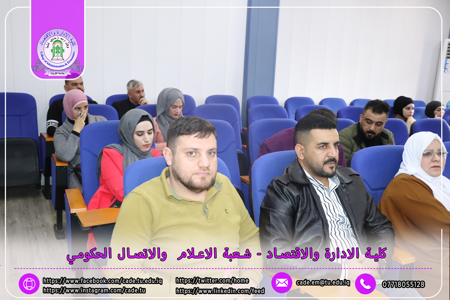 برعاية الأستاذ الدكتور وعد محمود رؤوف، رئيس جامعة تكريت، وبإشراف الأستاذ الدكتور عبد الرزاق حمد حسين، عميد كلية الإدارة والاقتصاد، نظم قسم الإدارة العامة ندوة علمية حضورية بعنوان "استخدام الأدوات الإحصائية في ترصين البحوث العلمية واستخدام برنامج (لاتكس)"، وذلك يوم الاثنين الموافق 25 /11/ 2024، في قاعة الدكتور محمد بدع.