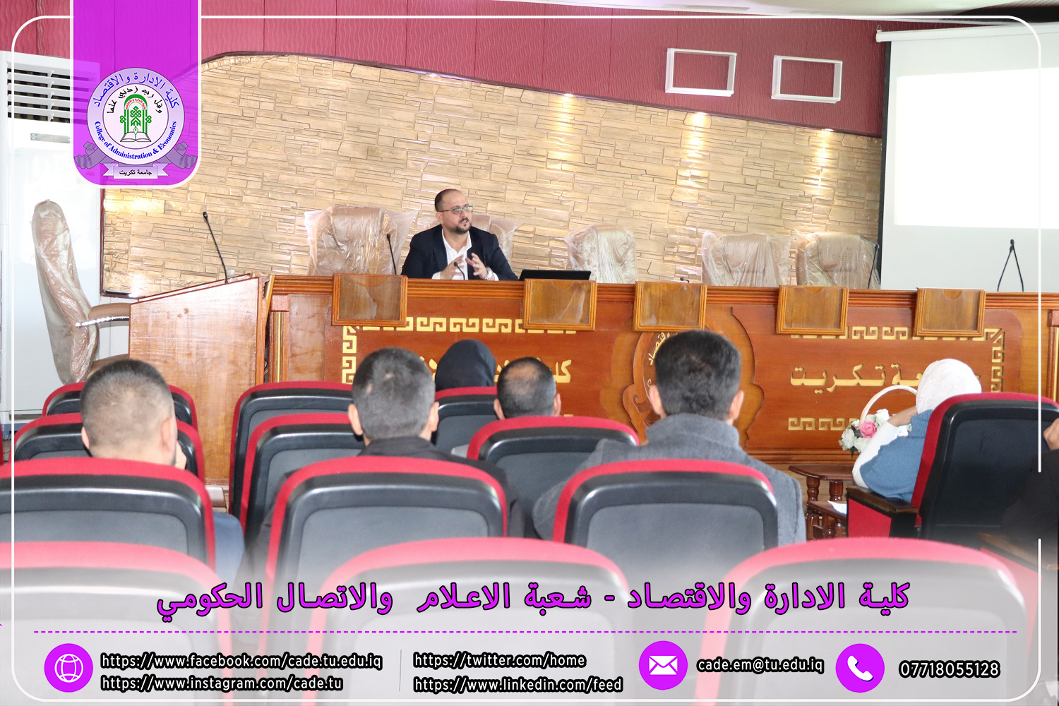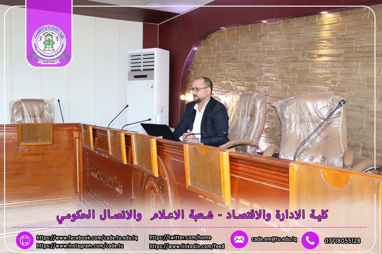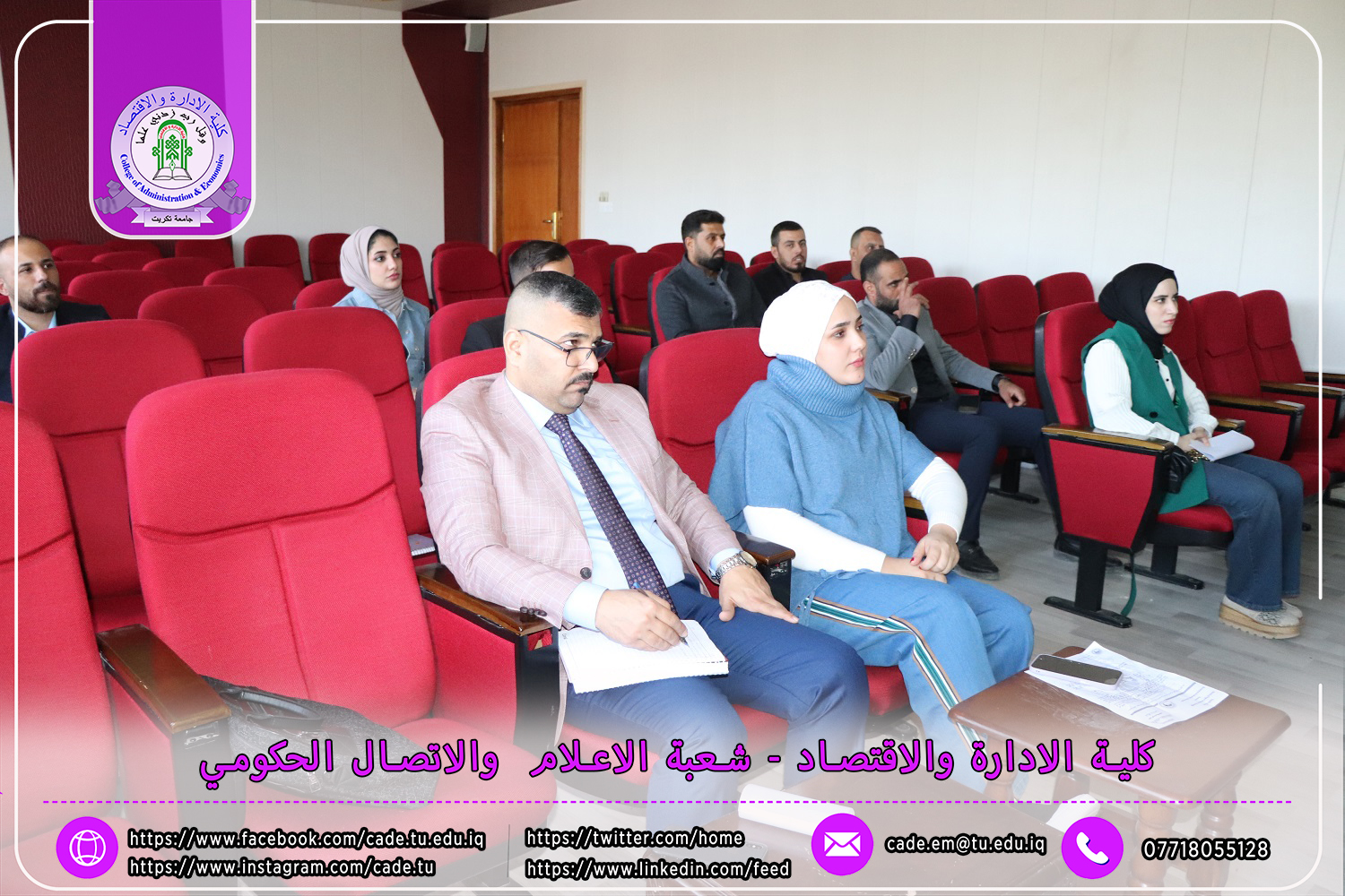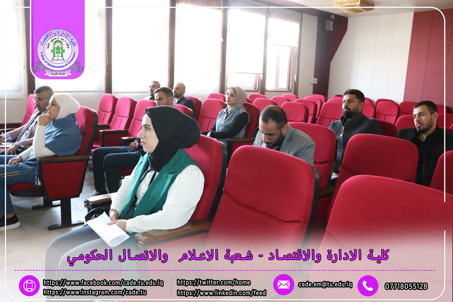 برعاية الأستاذ الدكتور وعد محمود رؤوف، رئيس جامعة تكريت، وبإشراف الأستاذ الدكتور عبد الرزاق حمد حسين، عميد كلية الإدارة والاقتصاد، نظم قسم إدارة الأعمال ندوة علمية حضورية بعنوان "المتطلبات الشكلية لإعداد الرسائل والأطاريح الجامعية"، وذلك يوم الأربعاء الموافق 27 /11/ 2024، على قاعة الدكتور محمد بدع.