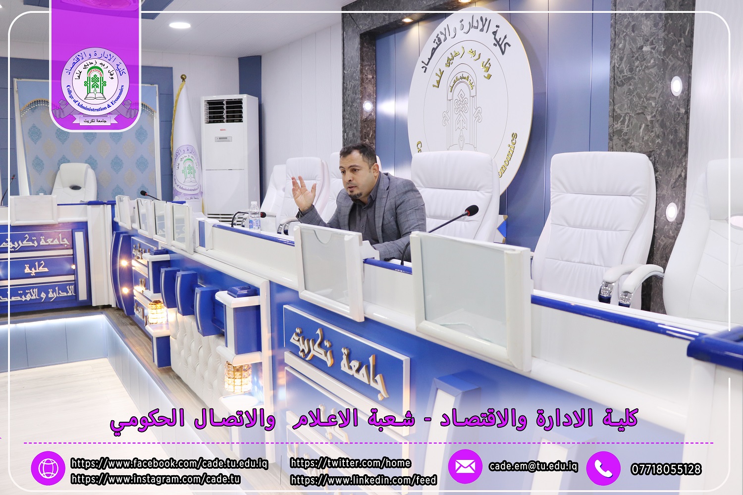 برعاية الأستاذ الدكتور وعد محمود رؤوف، رئيس جامعة تكريت، وإشراف الأستاذ الدكتور عبد الرزاق حمد حسين، عميد كلية الإدارة والاقتصاد، نظم قسم العلوم المالية والمصرفية يوم الثلاثاء الموافق 3 /12/ 2024، ندوة علمية حضورية بعنوان "كيفية كتابة البحث العلمي"، وذلك على قاعة الدكتور محمد بدع.