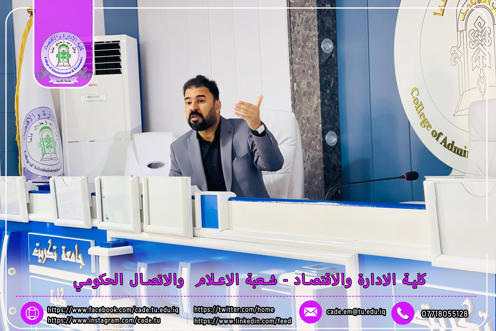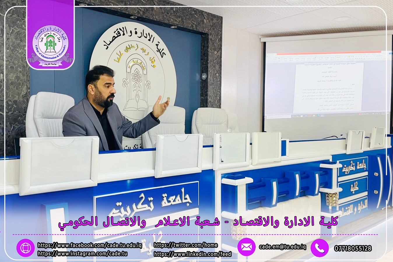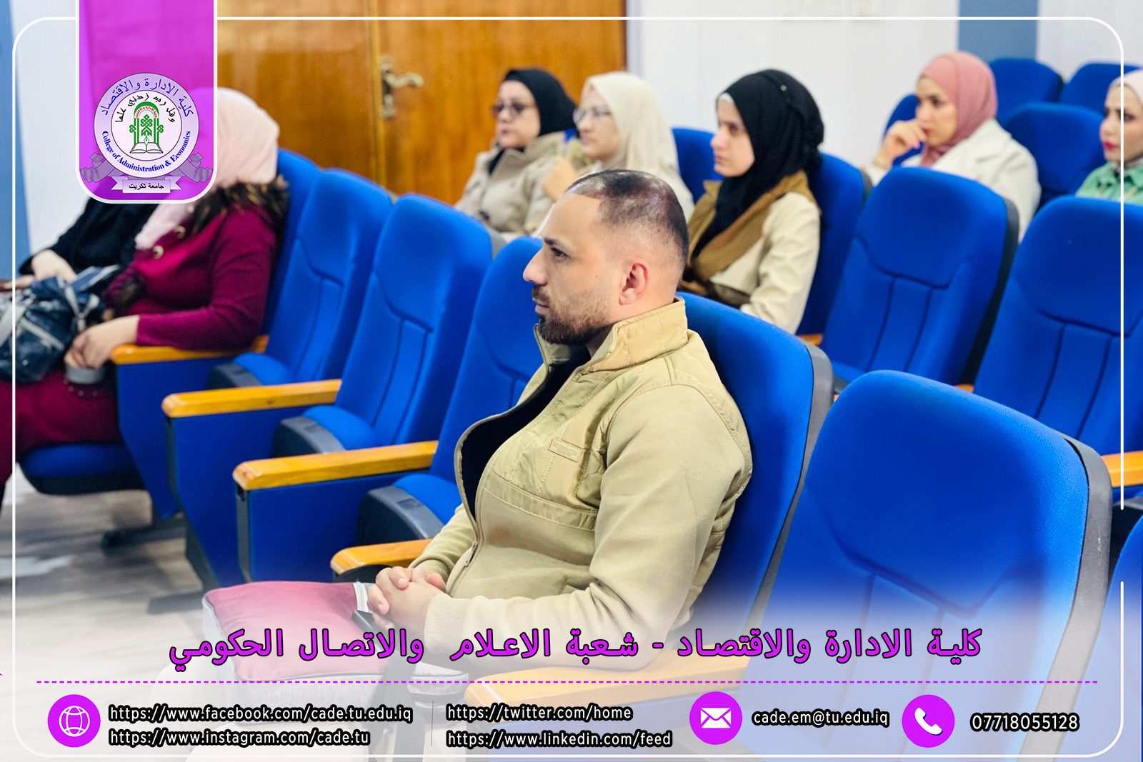 برعاية الأستاذ الدكتور وعد محمود رؤوف، رئيس جامعة تكريت، وإشراف الأستاذ الدكتور عبد الرزاق حمد حسين، عميد كلية الإدارة والاقتصاد، نظم قسم ادارة الاعمال يوم الأحد الموافق 8 /12/ 2024، ندوة علمية حضورية بعنوان "متطلبات تحقق الرصانة البحثية في رسائل الماجستير واطاريح الدكتوراه والبحوث العلمية".