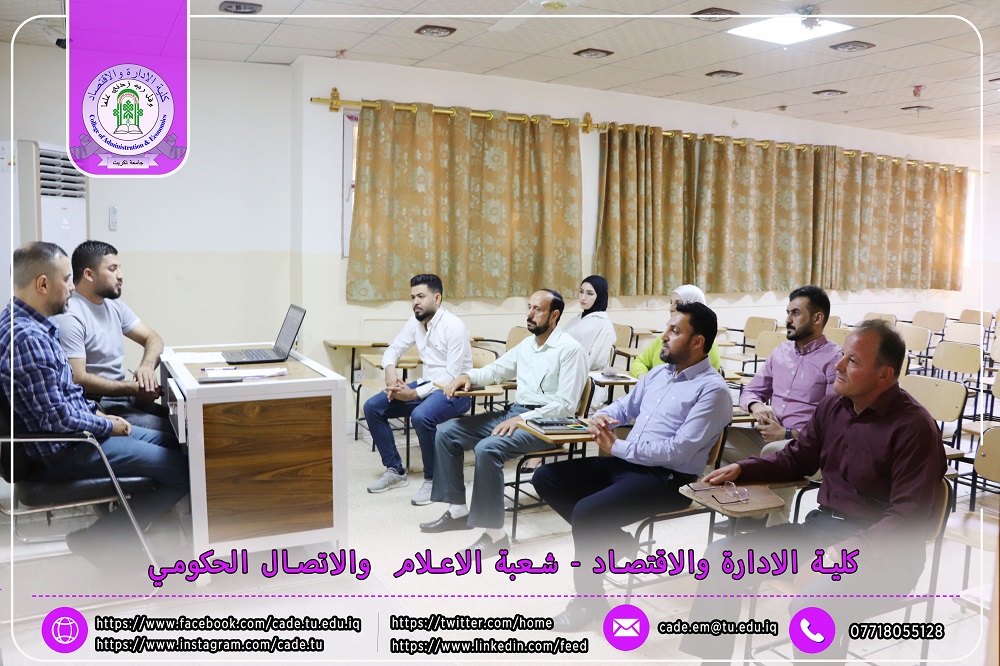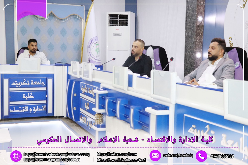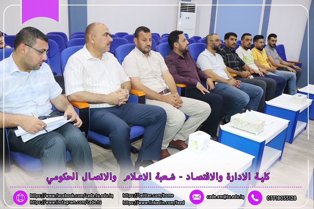 برعاية الأستاذ الدكتور وعد محمود رؤوف، رئيس جامعة تكريت، وبإشراف الأستاذ الدكتور عبد الرزاق حمد حسين، عميد كلية الإدارة والاقتصاد، نظمت الكلية بالتعاون مع مركز التعليم المستمر دورة علمية حضورية بعنوان ( التداول الإلكتروني: الإيجابيات والسلبيات ) أقيمت الدورة على مدار يومين، بدأت يوم الثلاثاء الموافق 2024/9/17 واختتمت يوم الأربعاء الموافق 2024/9/18، بمشاركة عدد من المحاضرين ، من بينهم م.د. نعمان منذر يونس، م.م. خلدون عبدالله خلف، و م.م.غزوان شاكر إسماعيل.