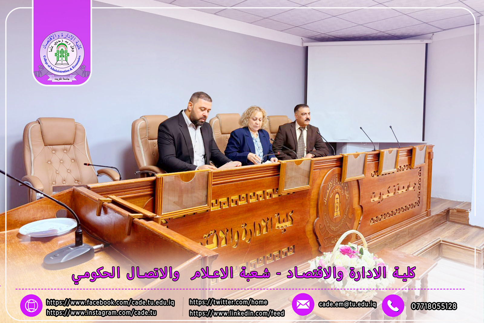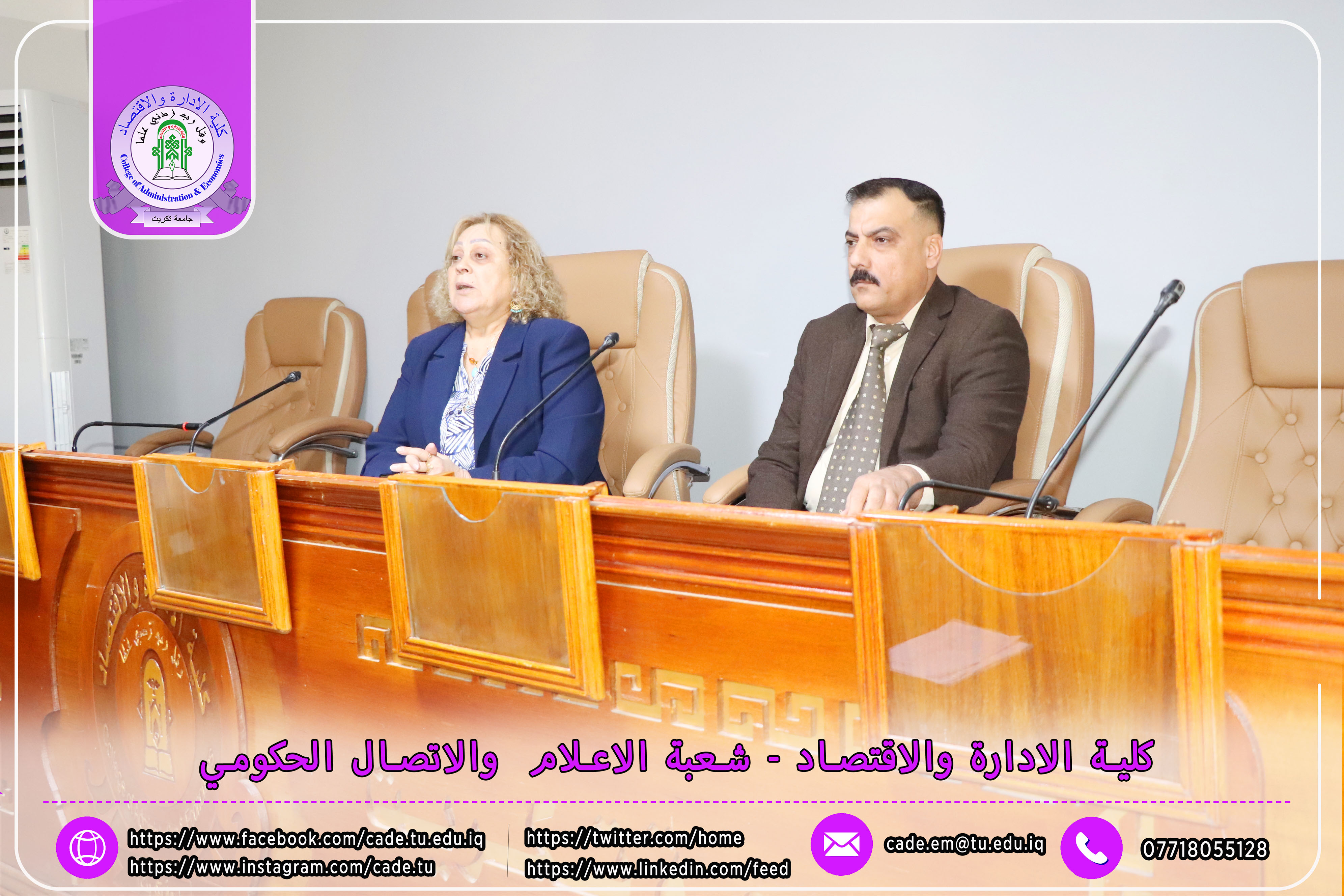برعاية الأستاذ الدكتور وعد محمود رؤوف رئيس جامعة تكريت، وبإشراف الأستاذ المساعد الدكتور فؤاد فرحان حسين عميد كلية الإدارة والاقتصاد، نظّم قسم إدارة التسويق صباح يوم الثلاثاء الموافق 25/11/2025 ندوة علمية حملت عنوان "الكايزن في المؤسسات التعليمية"، وذلك في تمام الساعة العاشرة صباحًا على قاعة قسم إدارة الأعمال.