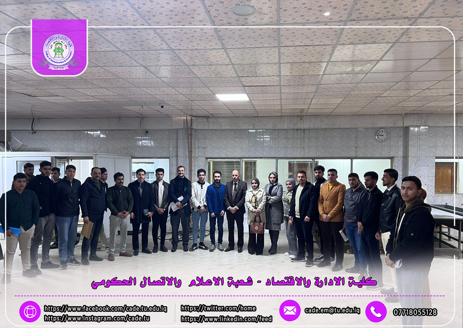 وتأتي هذه الزيارة ضمن خطة كلية الإدارة والاقتصاد في دعم النشاطات العلمية والعملية، وحرصها على تطوير العملية التعليمية بما ينسجم مع متطلبات التعليم الجامعي الحديث.