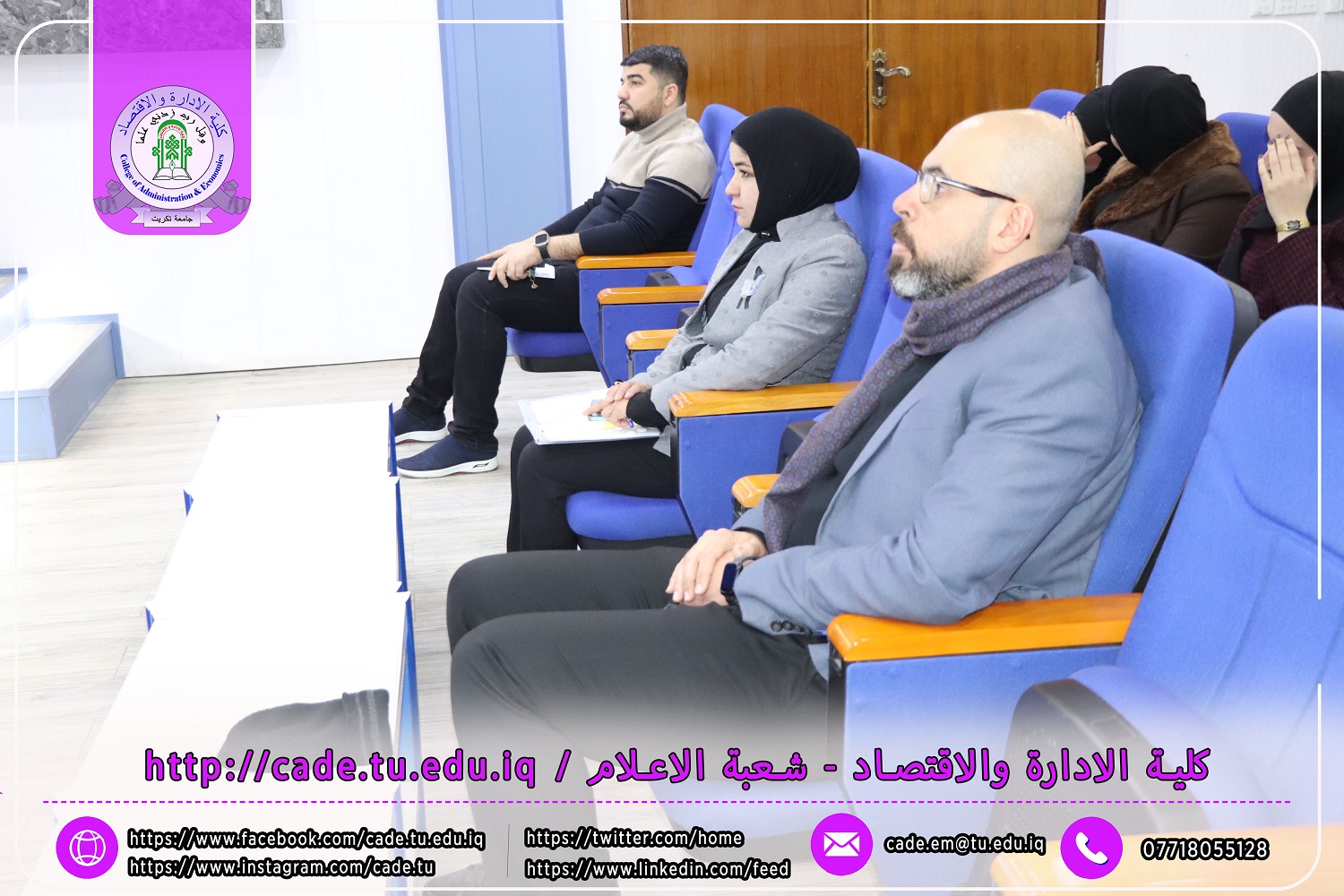 برعاية الأستاذ الدكتور وعد محمود رؤوف، رئيس جامعة تكريت، وإشراف الأستاذ الدكتور عبد الرزاق حمد حسين، عميد كلية الإدارة والاقتصاد، نظم قسم إدارة الأعمال ندوة علمية حضورية بعنوان "القيود الإدارية والتنظيمية في المنظمات الحكومية (مقترحات وحلول)"، وذلك يوم الاثنين الموافق 26 /2/ 2025، على قاعة د. محمد بدع.