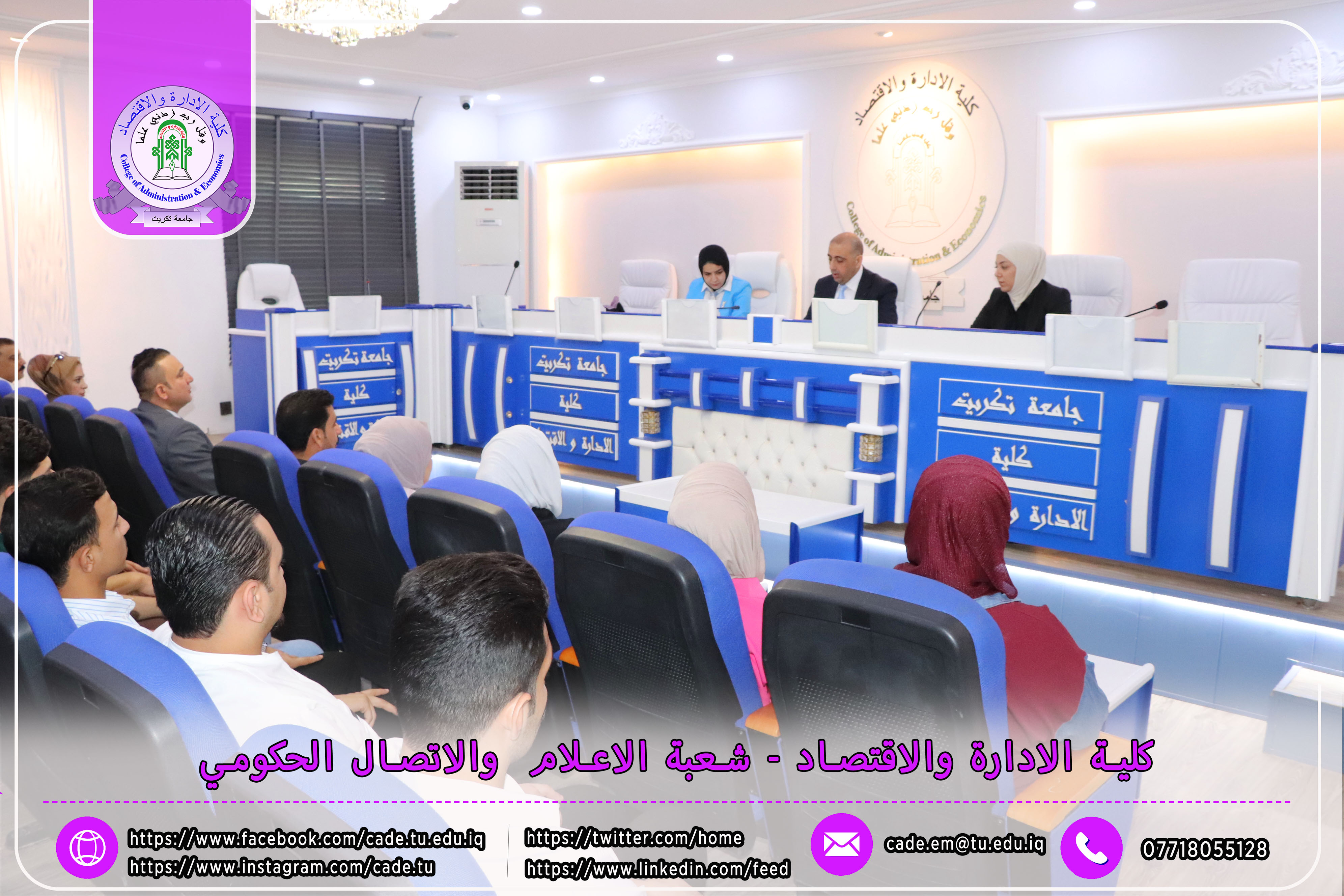 برعاية الأستاذ الدكتور وعد محمود رؤوف، رئيس جامعة تكريت، وبإشراف الأستاذ المساعد الدكتور فؤاد فرحان حسين، عميد كلية الإدارة والاقتصاد، نظّمت الكلية بالتعاون مع مركز التعليم المستمر ندوةً علميةً بعنوان "دور الذكاء الاصطناعي في تحديد سلوكيات الشراء لدى المستهلك"، وذلك يوم الثلاثاء الموافق 2025/10/21، في تمام الساعة العاشرة صباحًا على قاعة الدكتور محمد بدع.