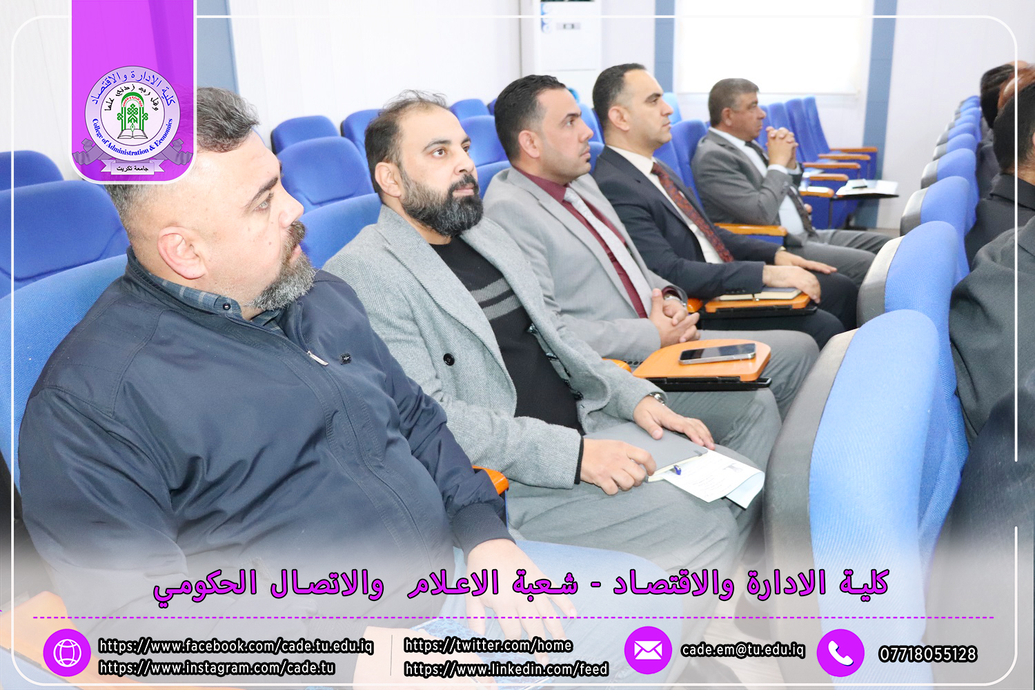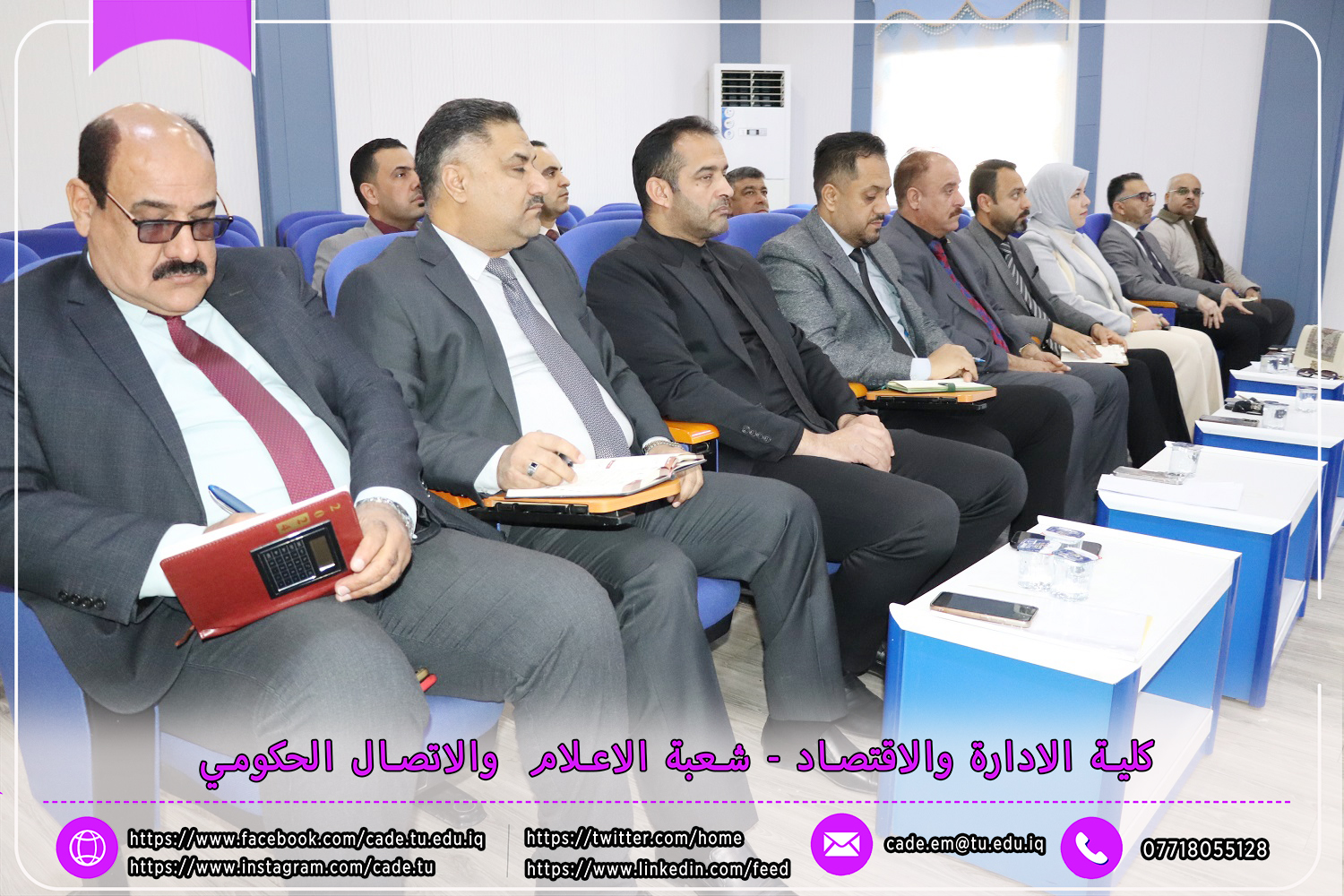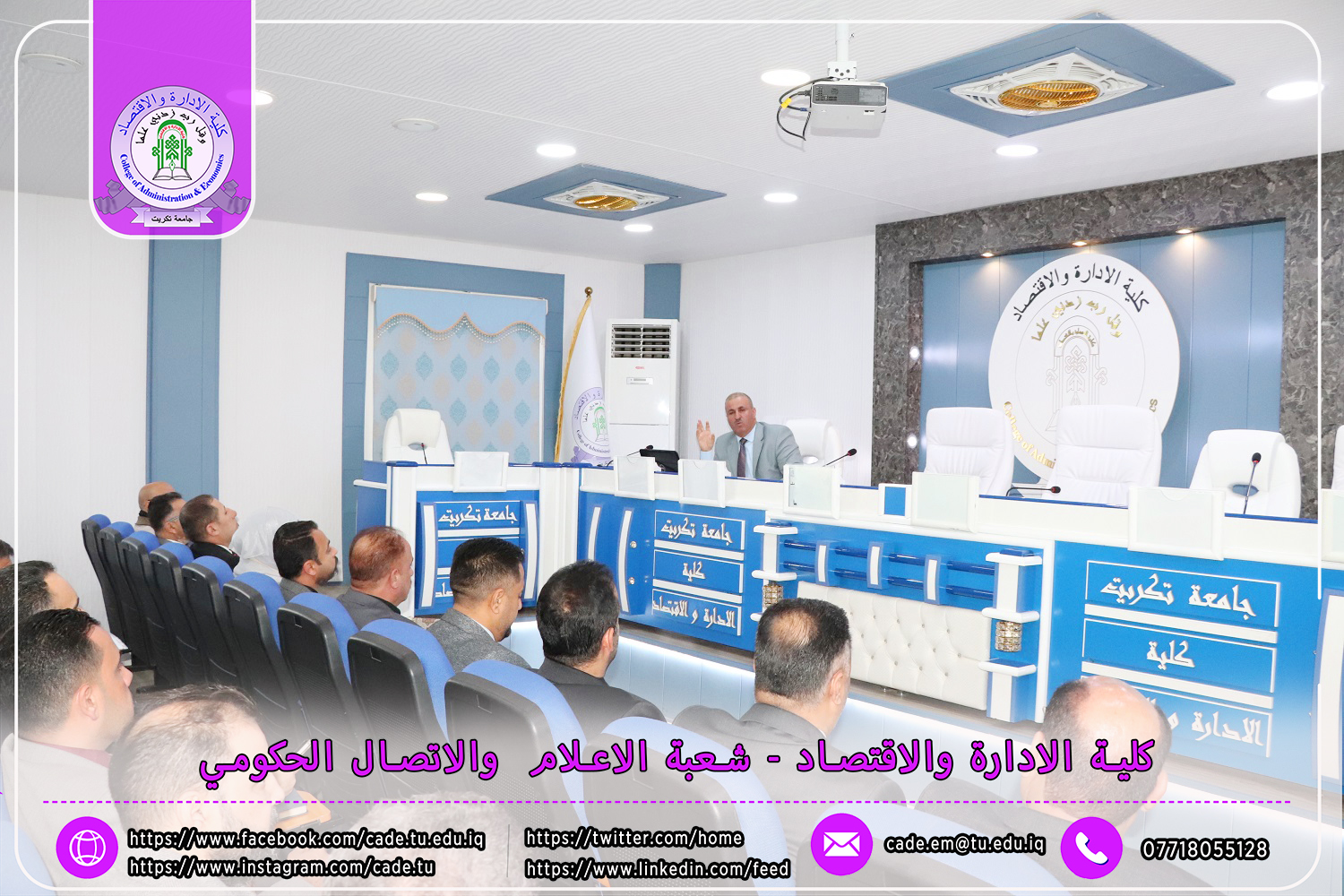 استضافت عمادة كلية الإدارة والاقتصاد، الدورة العلمية بعنوان "التخطيط والتنظيم والرقابة"، التي نظمها مركز التعليم المستمر في جامعة تكريت، وذلك يوم الأحد الموافق 2025/1/19 على قاعة الدكتور محمد بدع.