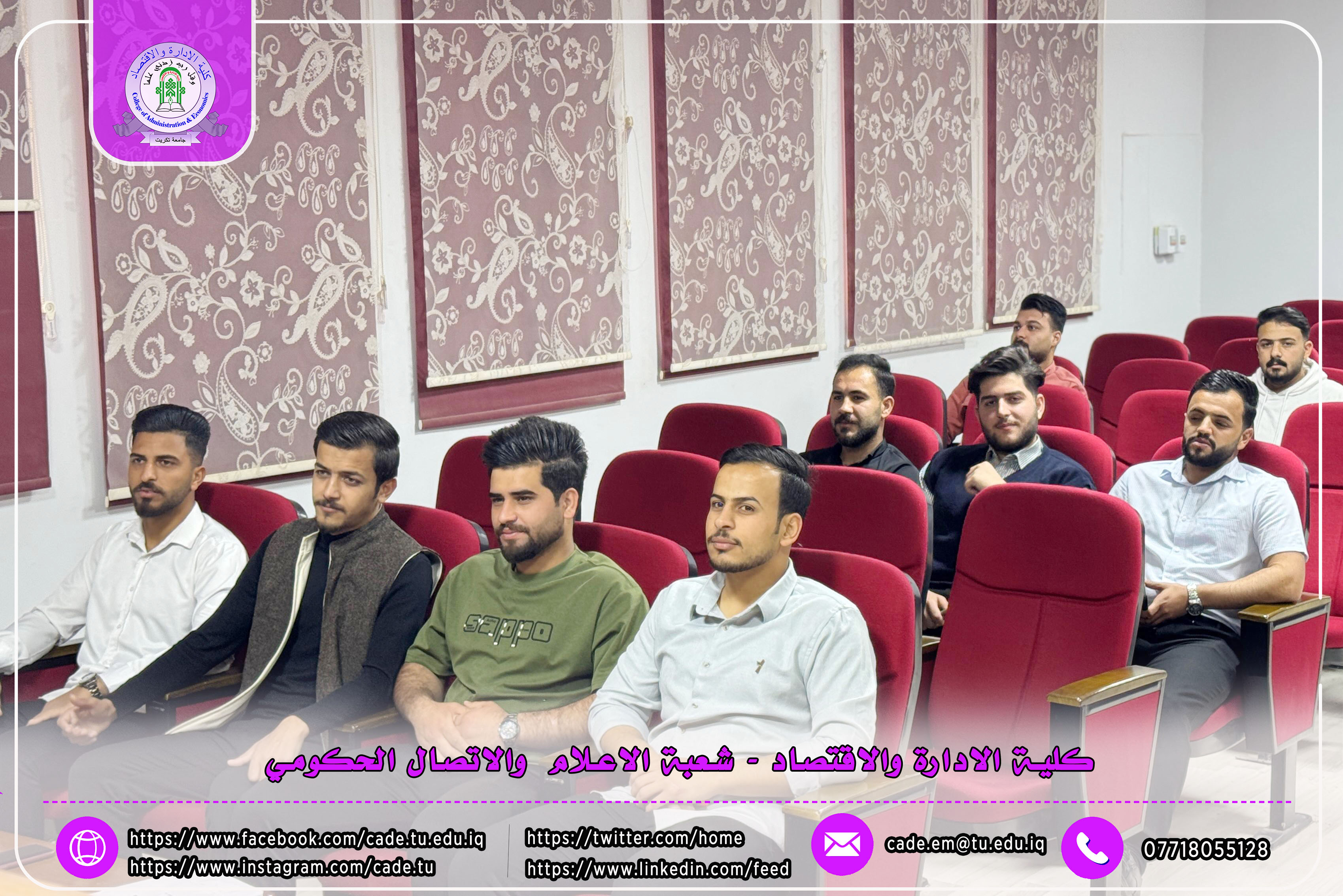 برعاية الأستاذ الدكتور وعد محمود رؤوف رئيس الجامعة، وبإشراف الأستاذ المساعد الدكتور فؤاد فرحان حسين عميد الكلية، والأستاذ المساعد الدكتور سياف عبد حسين مدير مركز التعليم المستمر. أقامت كلية الإدارة والاقتصاد / وحدة التعليم المستمر، وبالتعاون مع مركز التعليم المستمر، فعاليات الدورة يومي الأربعاء والخميس الموافق 26-25 /2026/2دورة علمية بعنوان "دور استقامة القيادة في الحد من استنزاف الموارد البشرية"،