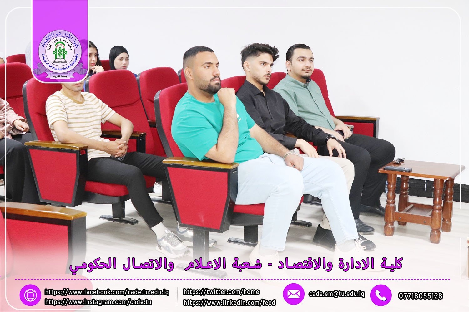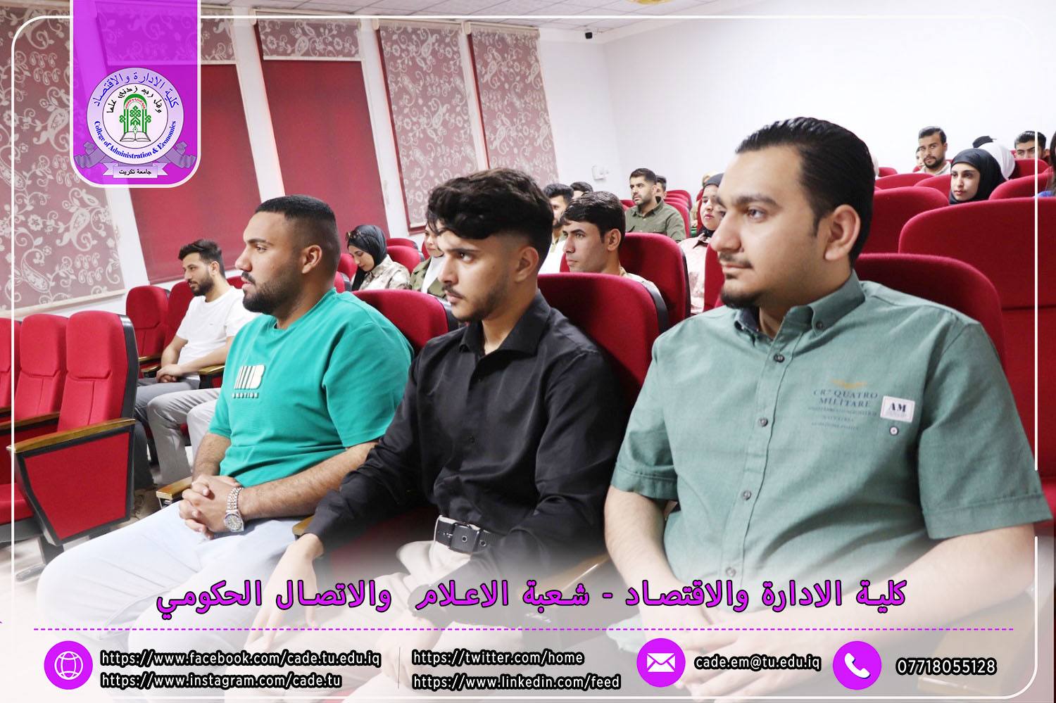 برعاية الأستاذ الدكتور وعد محمود رؤوف، رئيس جامعة تكريت، وبإشراف الأستاذ المساعد الدكتور فؤاد فرحان حسين، عميد كلية الإدارة والاقتصاد، نظمت وحدة التأهيل والتوظيف والمتابعة ندوة علمية حضورية بعنوان: "ريادة الأعمال – الفرص والتحديات"، وذلك يوم الاثنين الموافق 14 /4/ 2025، على قاعة قسم ادارة الاعمال في كلية الإدارة والاقتصاد.