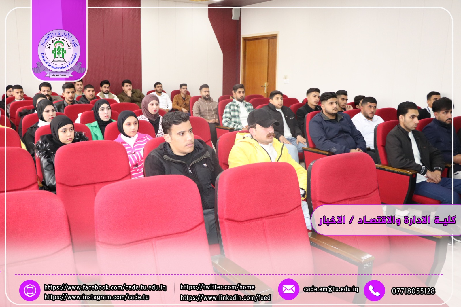 برعاية الأستاذ الدكتور وعد محمود رؤوف، رئيس جامعة تكريت، وبإشراف الأستاذ الدكتور عبد الرزاق حمد حسين، عميد كلية الإدارة والاقتصاد، نظمت وحدة الإرشاد النفسي والتوجيه التربوي بمناسبة اليوم الثالث من الأسبوع الإرشادي ندوة علمية حضورية بعنوان " التصدي للانتحار من خلال فهم أسبابه ومعالجتها"، وذلك يوم الثلاثاء الموافق 26/11/2024، في قاعة مناقشات قسم إدارة الأعمال.