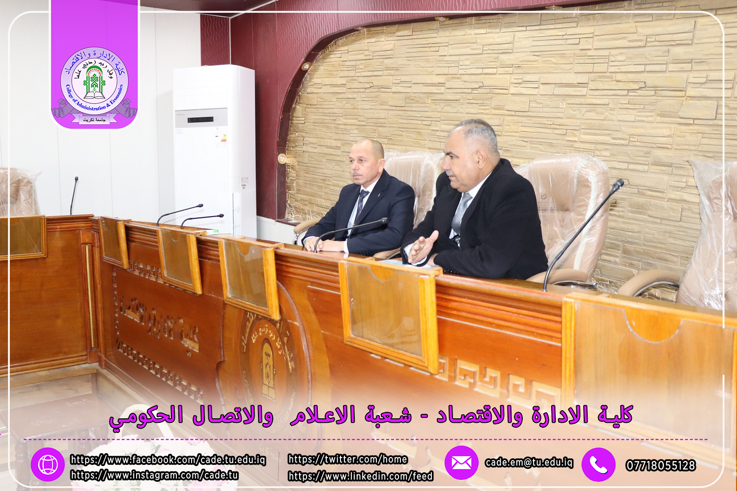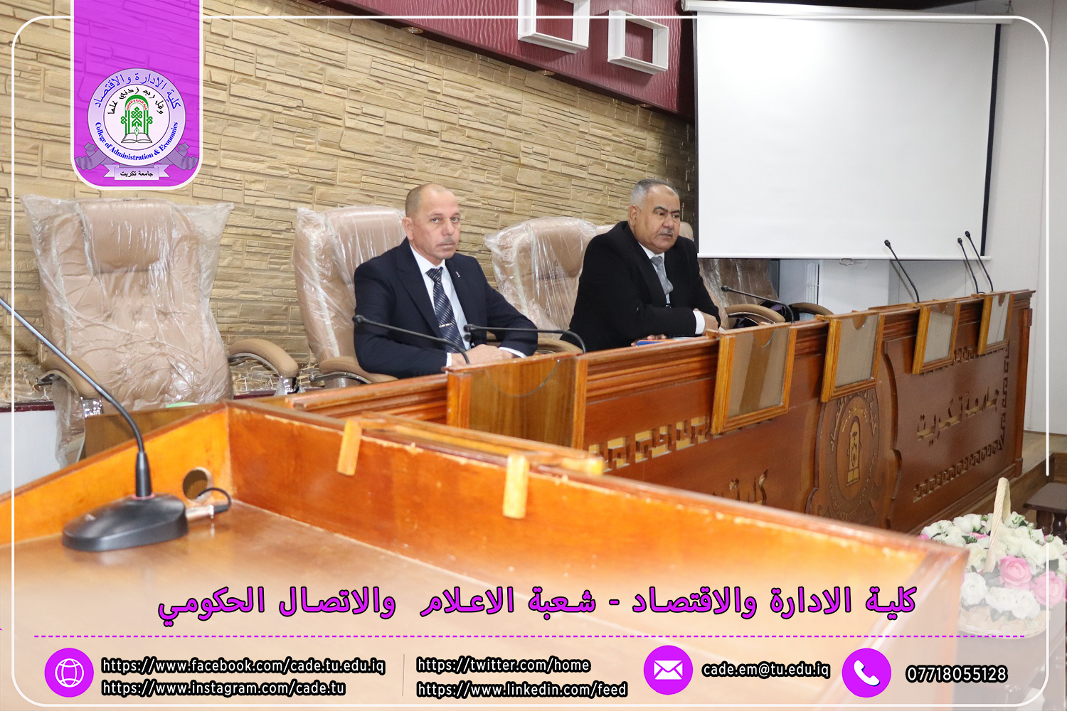 برعاية الأستاذ الدكتور وعد محمود رؤوف، رئيس جامعة تكريت، وإشراف الأستاذ الدكتور عبد الرزاق حمد حسين، عميد كلية الإدارة والاقتصاد، نظمت وحدة الإرشاد النفسي والتوجيه التربوي في الكلية بمناسبة الأسبوع العراقي لمكافحة المخدرات ندوة علمية بعنوان "المخدرات: أسبابها وطرق الوقاية منها"، وذلك يوم الثلاثاء الموافق 3 /12/ 2024، على قاعة قسم إدارة الأعمال.