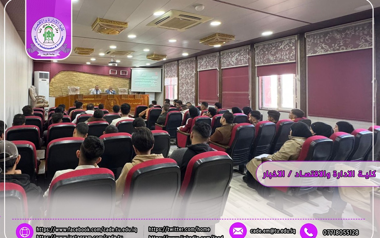 برعاية الأستاذ الدكتور وعد محمود رؤوف، رئيس جامعة تكريت، وبإشراف الأستاذ الدكتور عبد الرزاق حمد حسين، عميد كلية الإدارة والاقتصاد، نظّمت وحدة الإرشاد النفسي والتوجيه التربوي ندوة توعوية بعنوان "المخدرات كارثة يجب اقتلاعها من المجتمع"، وذلك يوم الأربعاء الموافق 29/1/2025 في قاعة مناقشات قسم إدارة الاعمال.