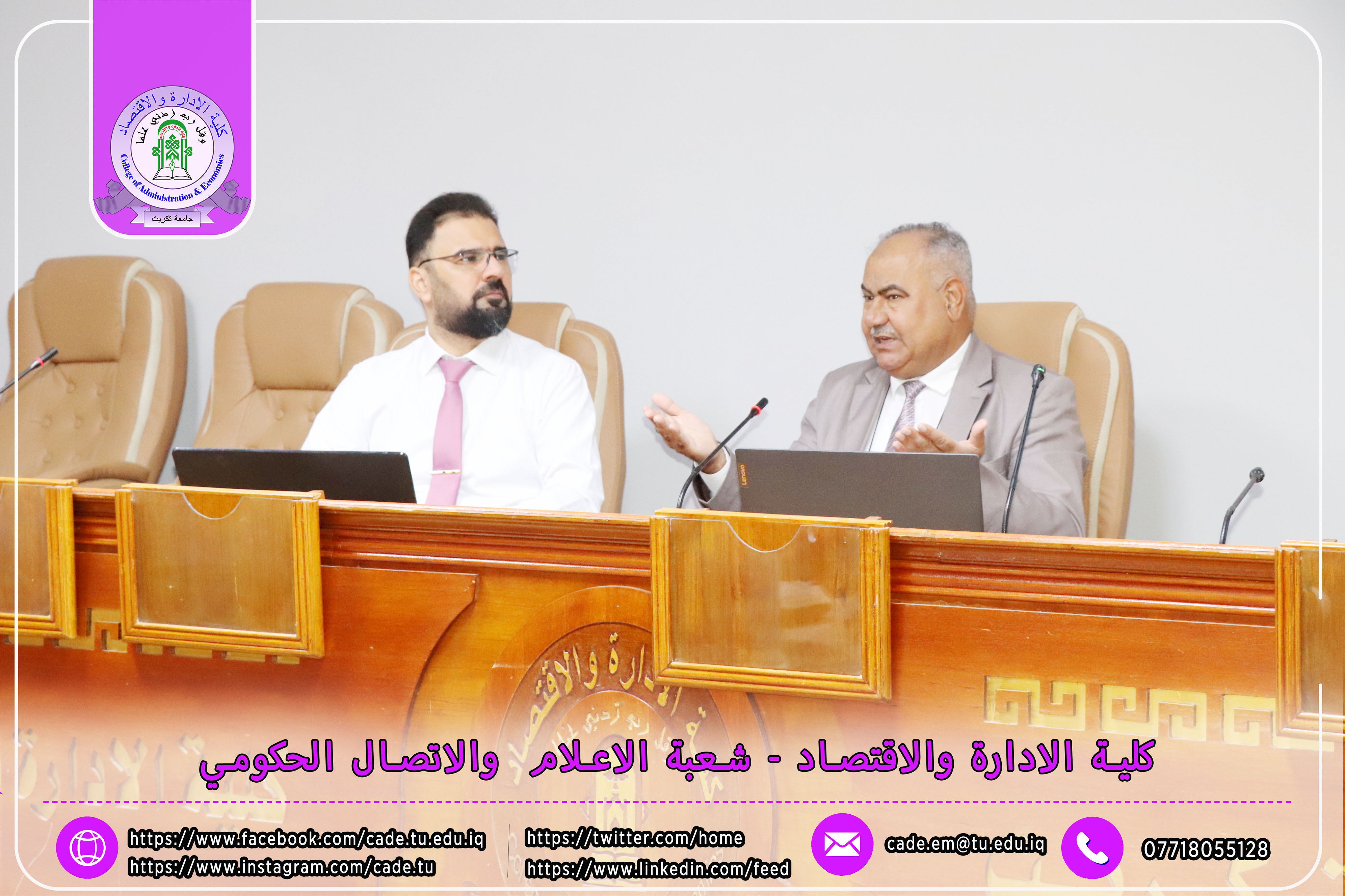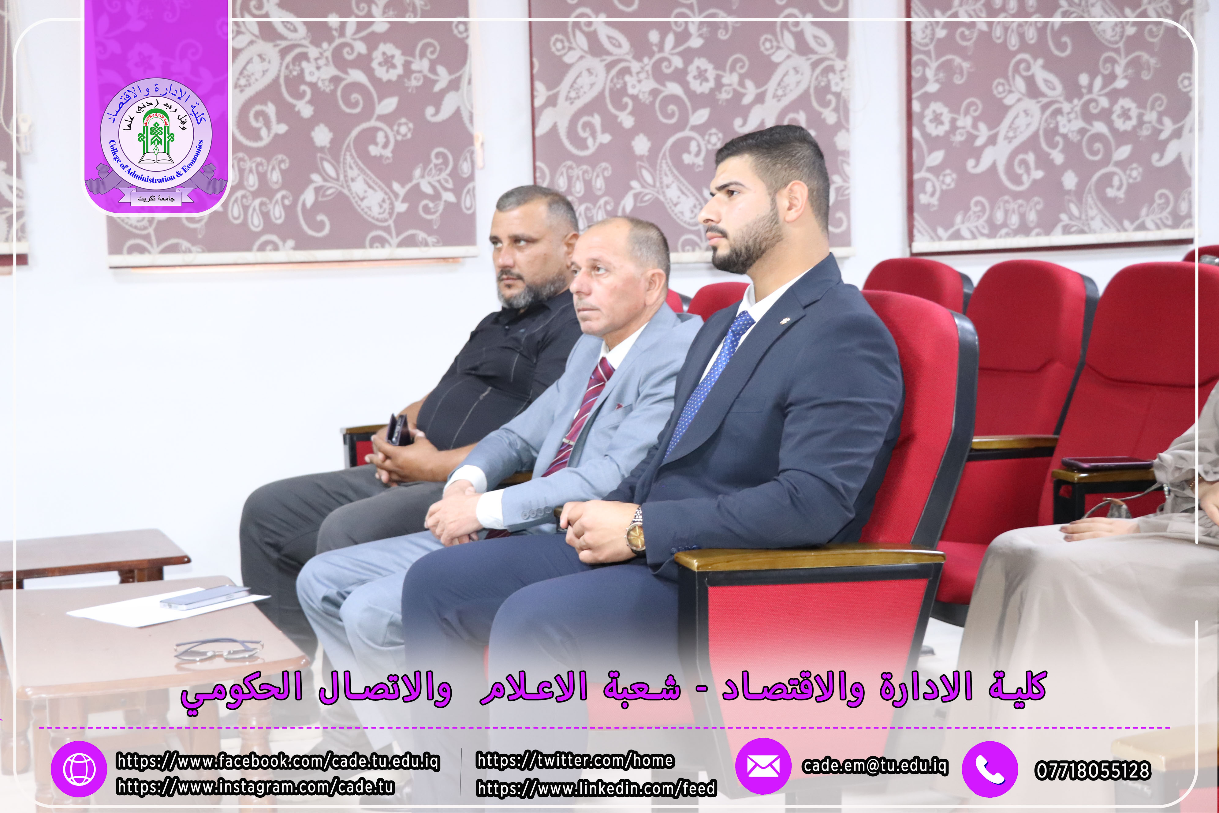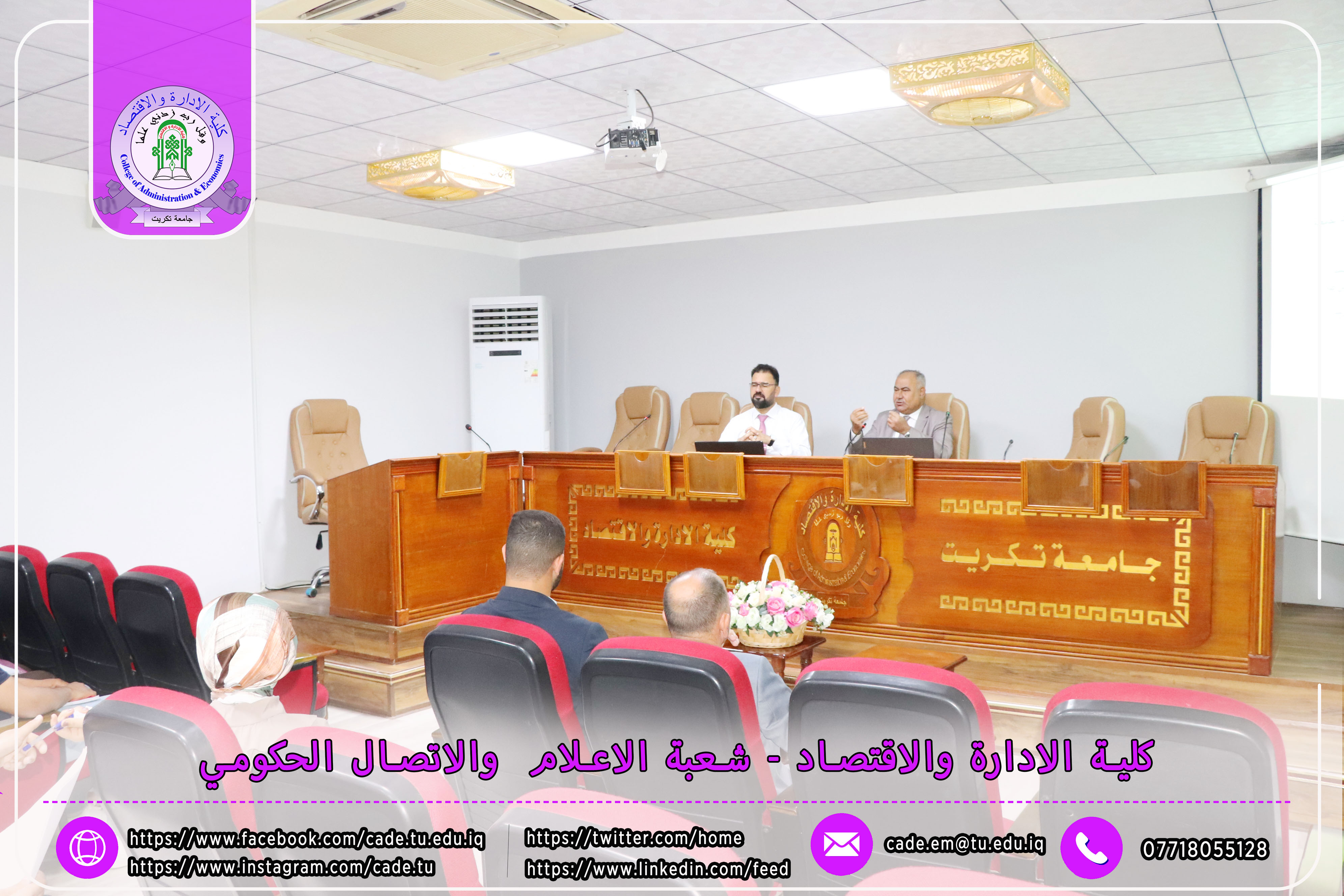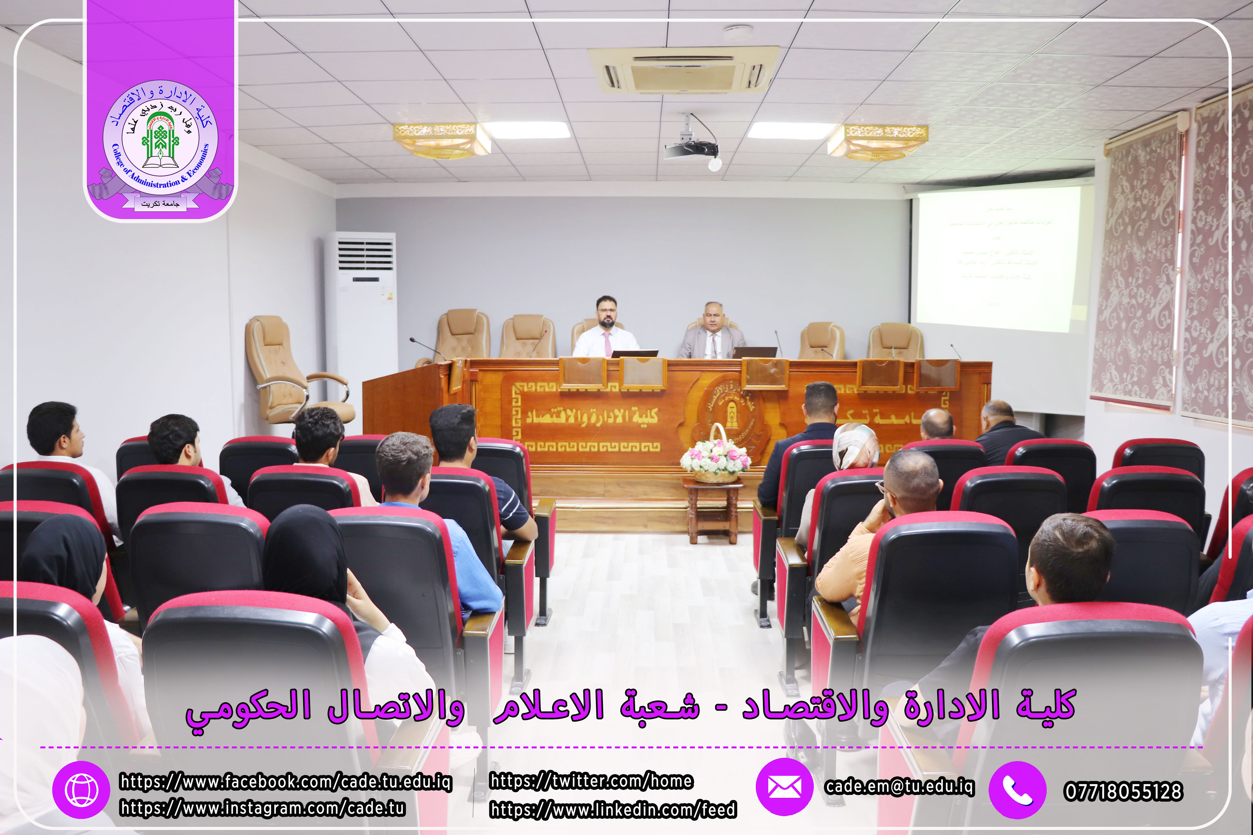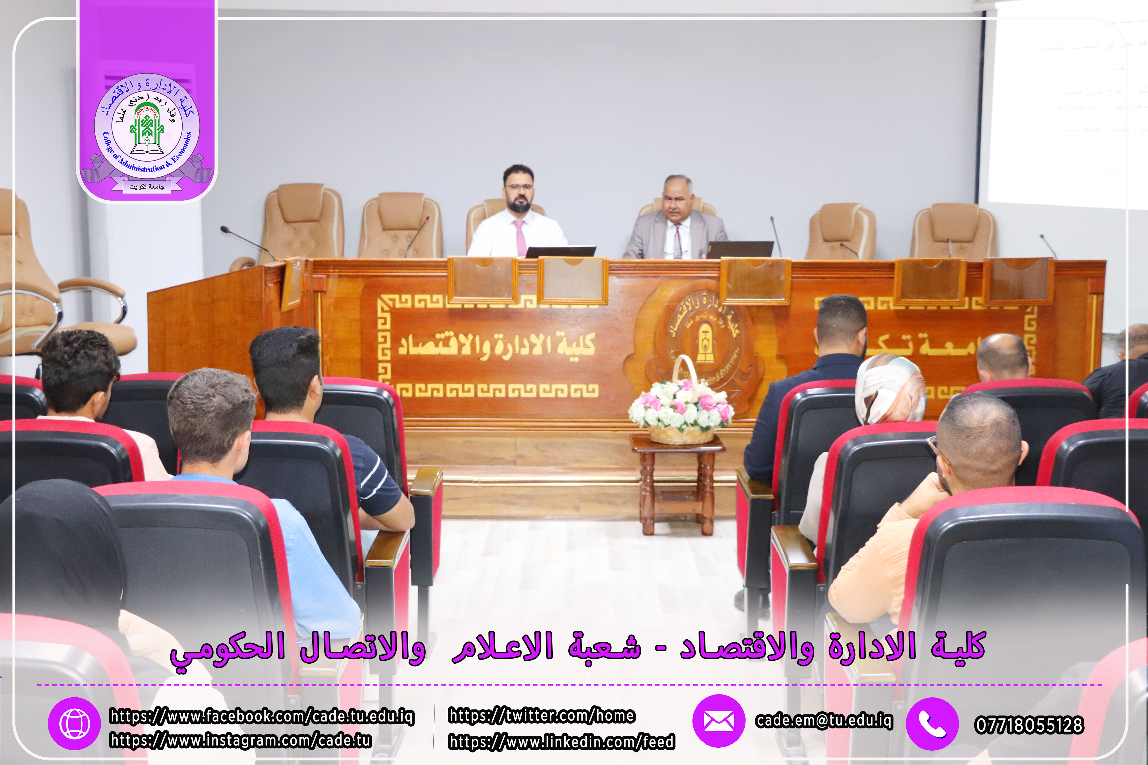 برعاية الأستاذ الدكتور وعد محمود رؤوف، رئيس جامعة تكريت، وبإشراف الأستاذ المساعد الدكتور فؤاد فرحان حسين، عميد كلية الإدارة والاقتصاد، نظّمت وحدة الإرشاد النفسي والتوجيه التربوي في الكلية ندوةً علميةً بعنوان "إجراءات مكافحة ظاهرة الغش في الامتحانات الجامعية"، وذلك يوم الثلاثاء الموافق 2025/10/21 في تمام الساعة العاشرة صباحًا على قاعة قسم إدارة الأعمال.