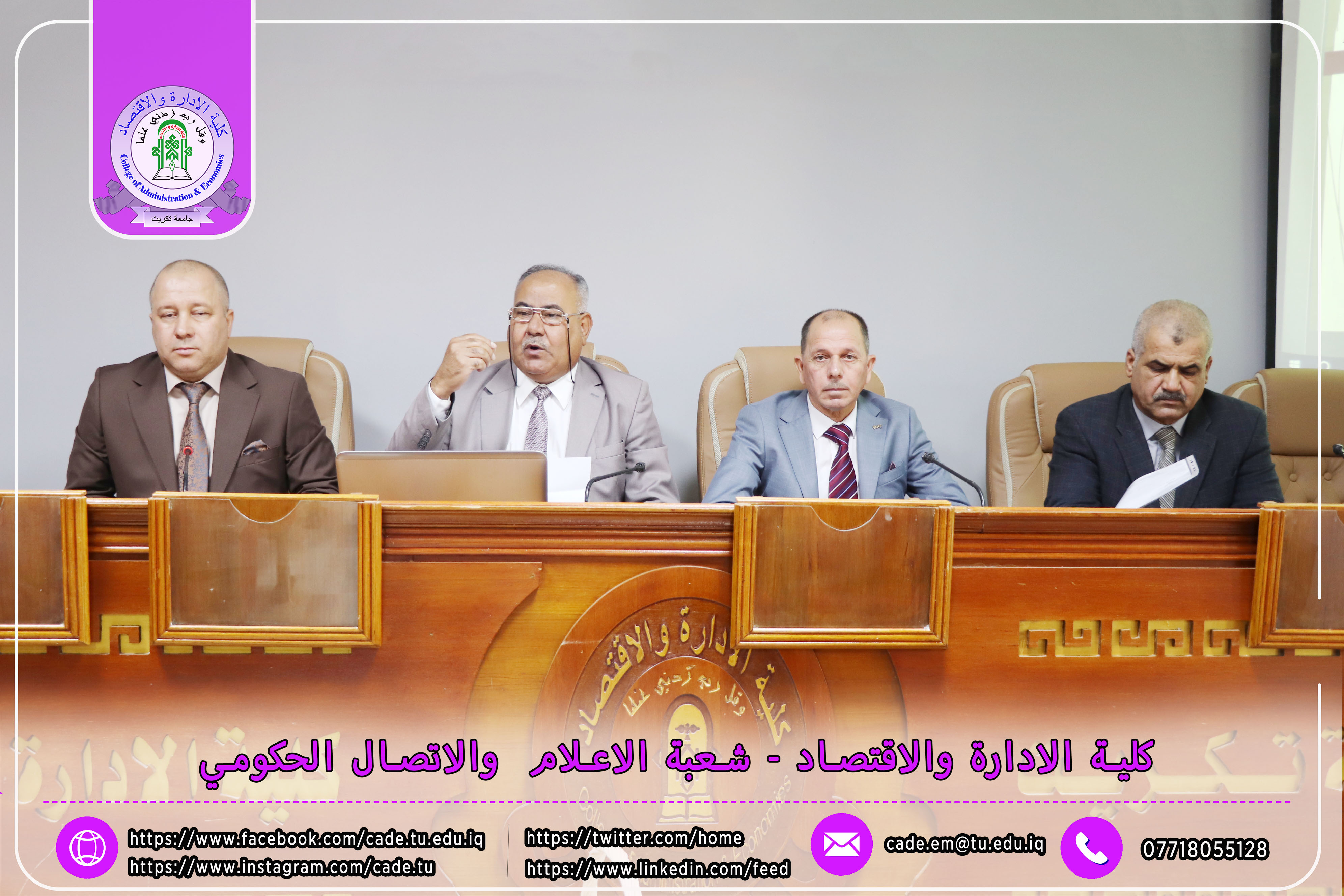 برعاية الأستاذ الدكتور وعد محمود رؤوف، رئيس جامعة تكريت، وبإشراف الأستاذ المساعد الدكتور فؤاد فرحان حسين، عميد كلية الإدارة والاقتصاد، نظّمت وحدة الإرشاد النفسي والتوجيه التربوي في الكلية وبالتعاون مع دائرة الهجرة والمهجرين في محافظة صلاح الدين، ندوة علمية بعنوان: رفع المخاطر وتداعيات الهجرة غير الشرعية وتعزيز روح الانتماء للوطن"، وذلك يوم الثلاثاء الموافق 28/10/2025، في تمام الساعة العاشرة صباحاً على قاعة قسم إدارة الأعمال.