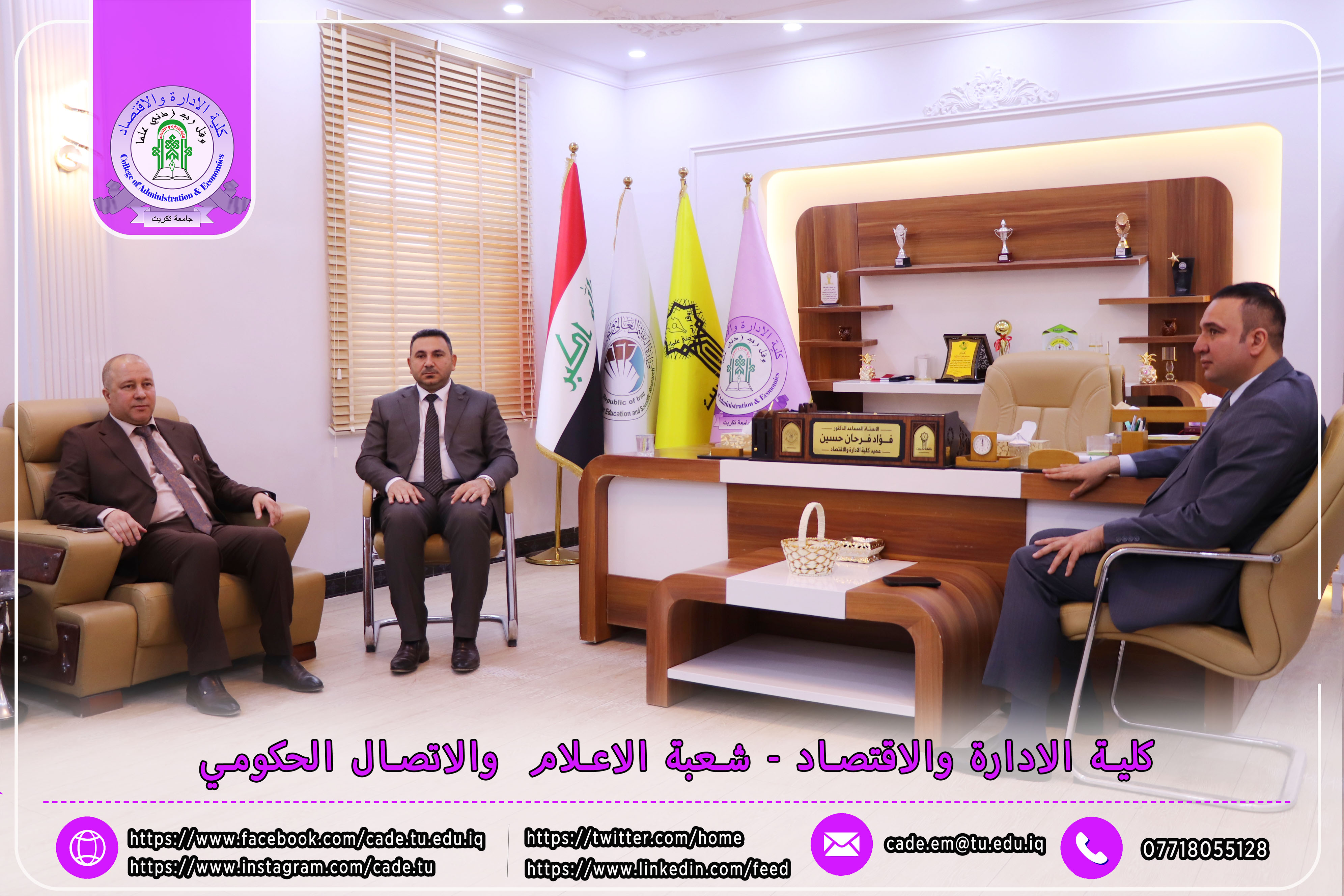 وفي ختام الندوة، استقبل الأستاذ المساعد الدكتور فؤاد فرحان حسين عميد الكلية، وبرفقته الأستاذ المساعد الدكتور خطاب عمران صالح معاون العميد للشؤون العلمية، في مكتبه كلاً من السيد خالد محجوب جاسم والسيد سعد مدلول، حيث جرى تبادل الرؤى حول آليات التعاون المستقبلي بين الكلية ودائرة الهجرة والمهجرين بما يخدم الجوانب الإنسانية والمجتمعية.