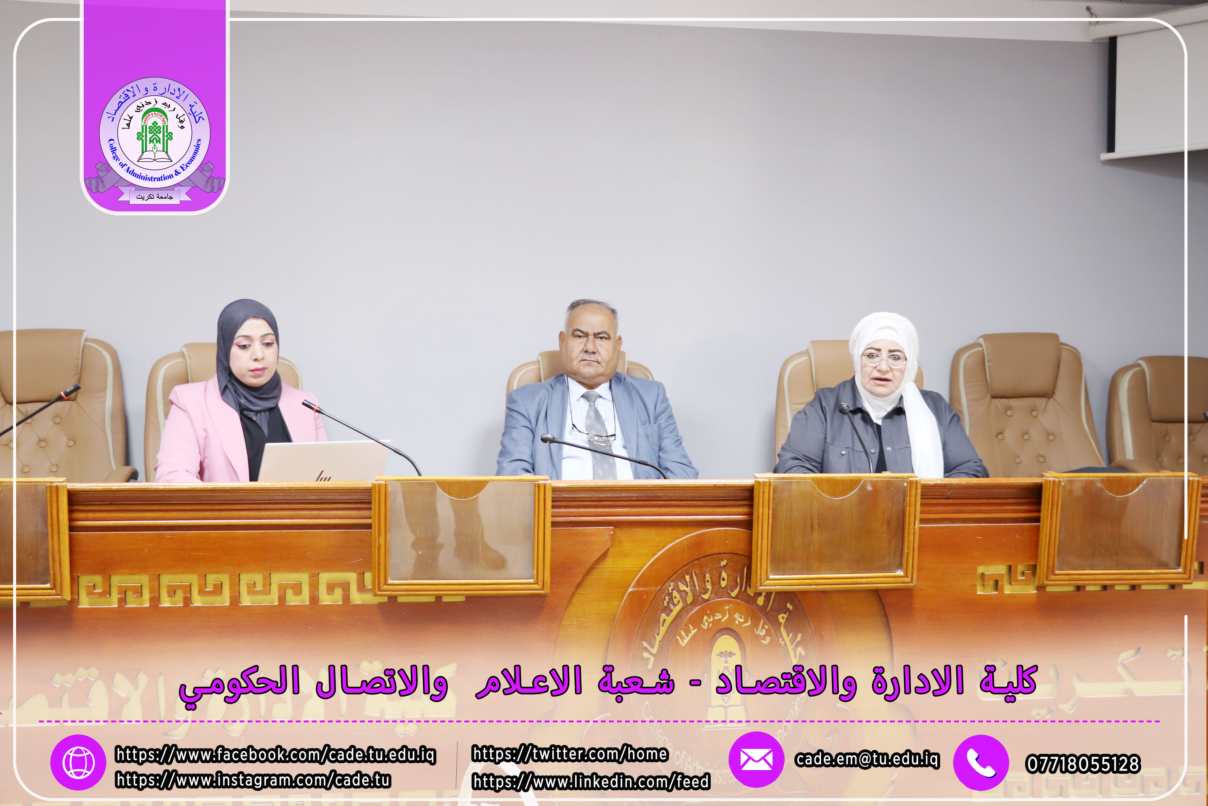 برعاية الأستاذ الدكتور وعد محمود رؤوف رئيس جامعة تكريت، وبإشراف الأستاذ المساعد الدكتور فؤاد فرحان حسين عميد كلية الإدارة والاقتصاد، وضمن فعاليات الأسبوع العراقي لمكافحة المخدرات، نظّمت وحدة الإرشاد النفسي والتوجيه التربوي في الكلية ندوة علمية بعنوان "كارثة المخدرات والحلول المقترحة"، وذلك في اليوم الثاني من فعاليات الأسبوع، يوم الاثنين الموافق 17/11/2025، في تمام الساعة العاشرة صباحًا على قاعة قسم إدارة الأعمال.