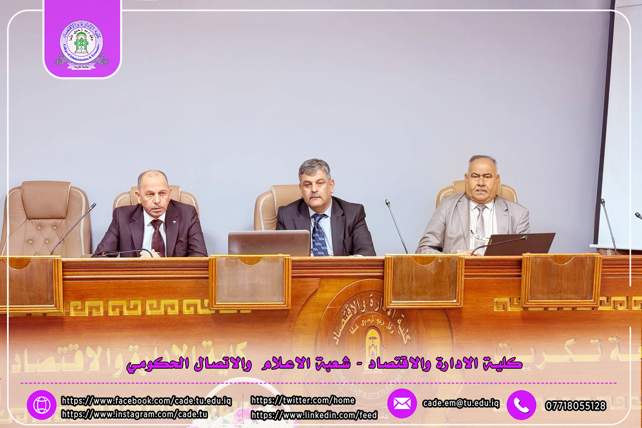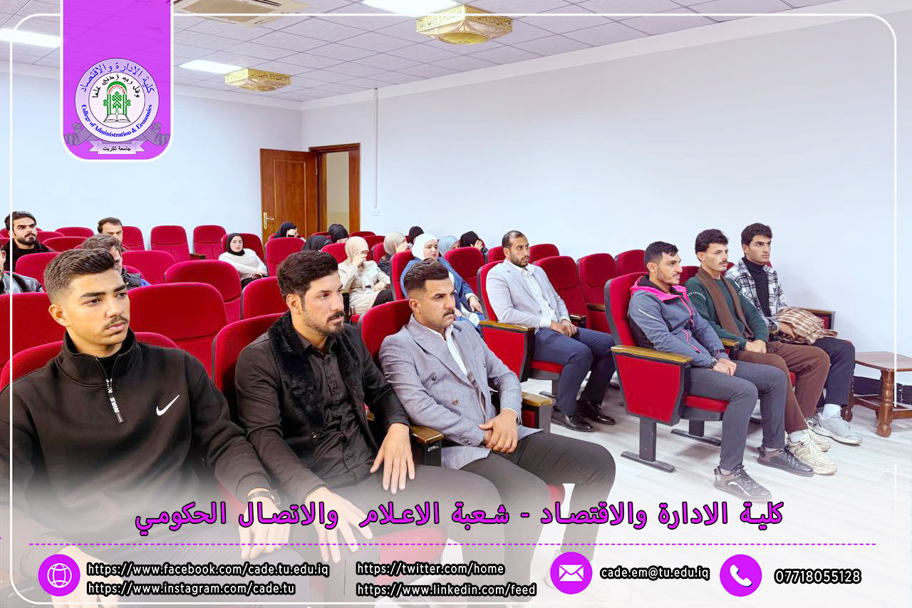 برعاية الأستاذ الدكتور وعد محمود رؤوف رئيس جامعة تكريت، وبإشراف الأستاذ المساعد الدكتور فؤاد فرحان حسين عميد كلية الإدارة والاقتصاد، وضمن جهود عمادة الكلية في تعزيز الوعي الفكري وترسيخ الاستخدام الآمن والمسؤول لمواقع التواصل الاجتماعي، نظّمت وحدة الإرشاد النفسي والتوجيه التربوي ندوة علمية بعنوان: