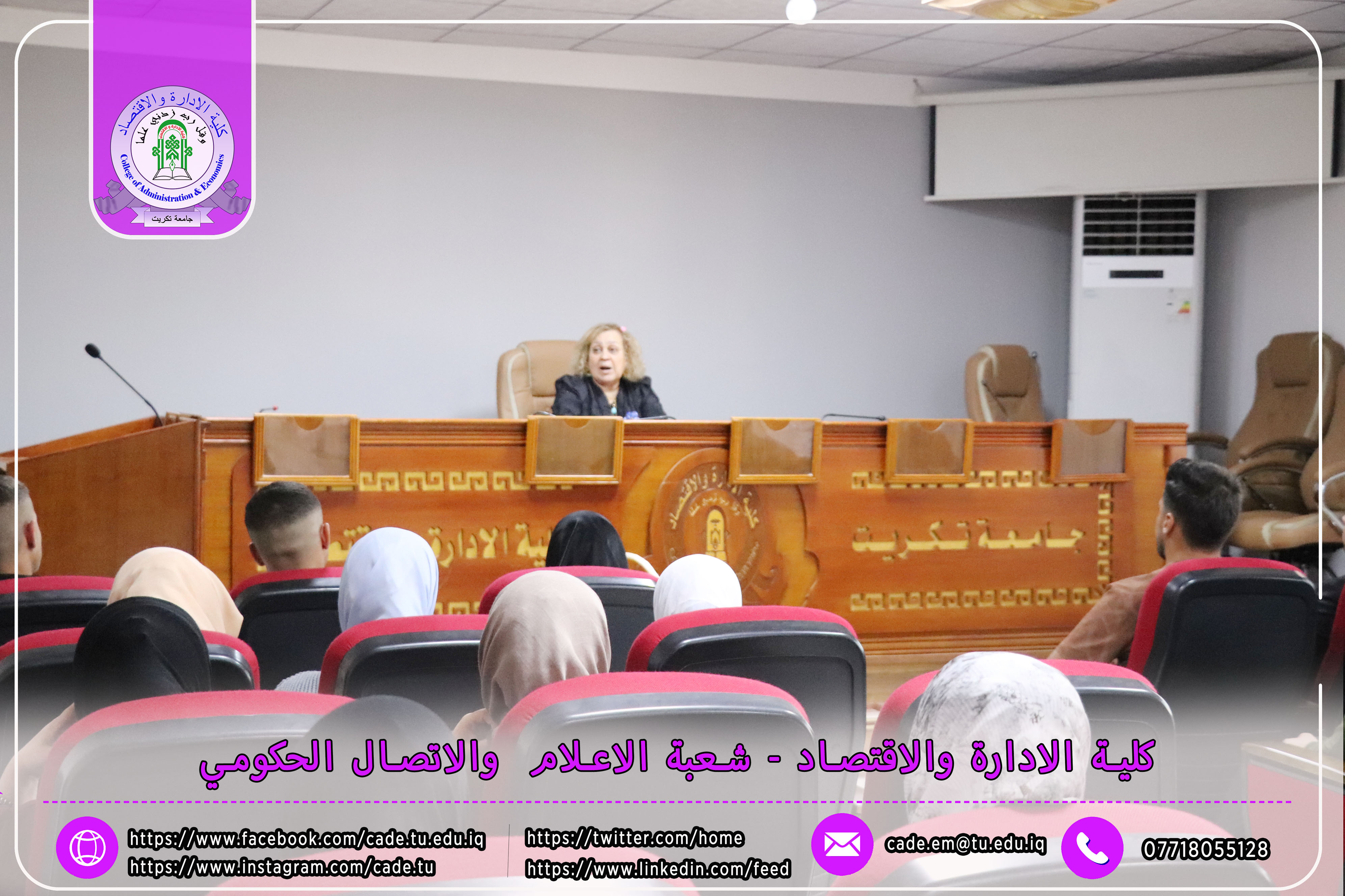 برعاية الأستاذ الدكتور وعد محمود رؤوف رئيس جامعة تكريت، وبإشراف الأستاذ المساعد الدكتور فؤاد فرحان حسين عميد كلية الإدارة والاقتصاد، اقامت وحدة شؤون المرأة في الكلية ندوة علمية حضورية بعنوان "المرأة والقيادة في المنظمات"، وذلك يوم الثلاثاء الموافق 18/2/2025 على قاعة قسم إدارة الأعمال.